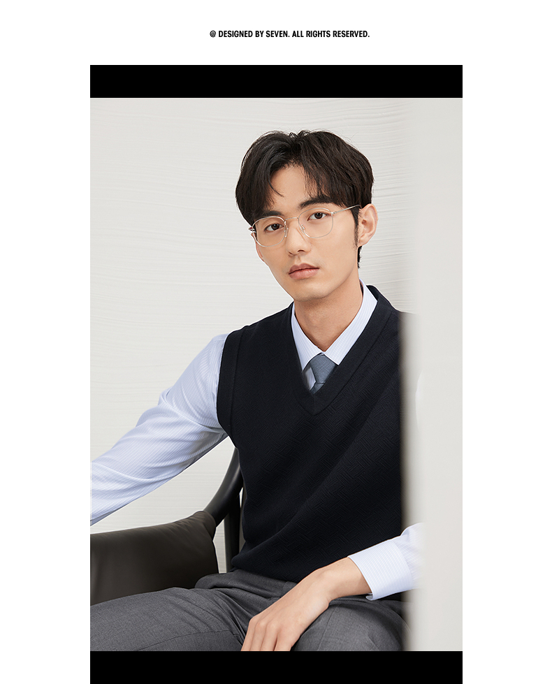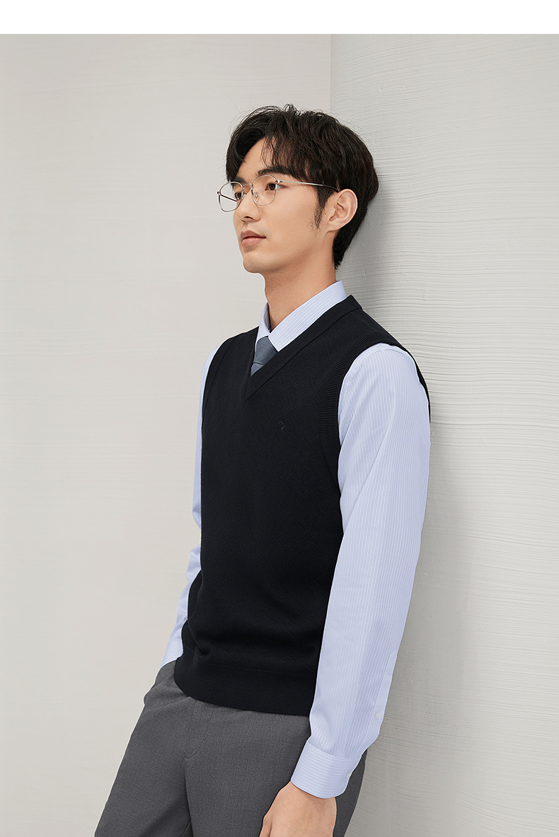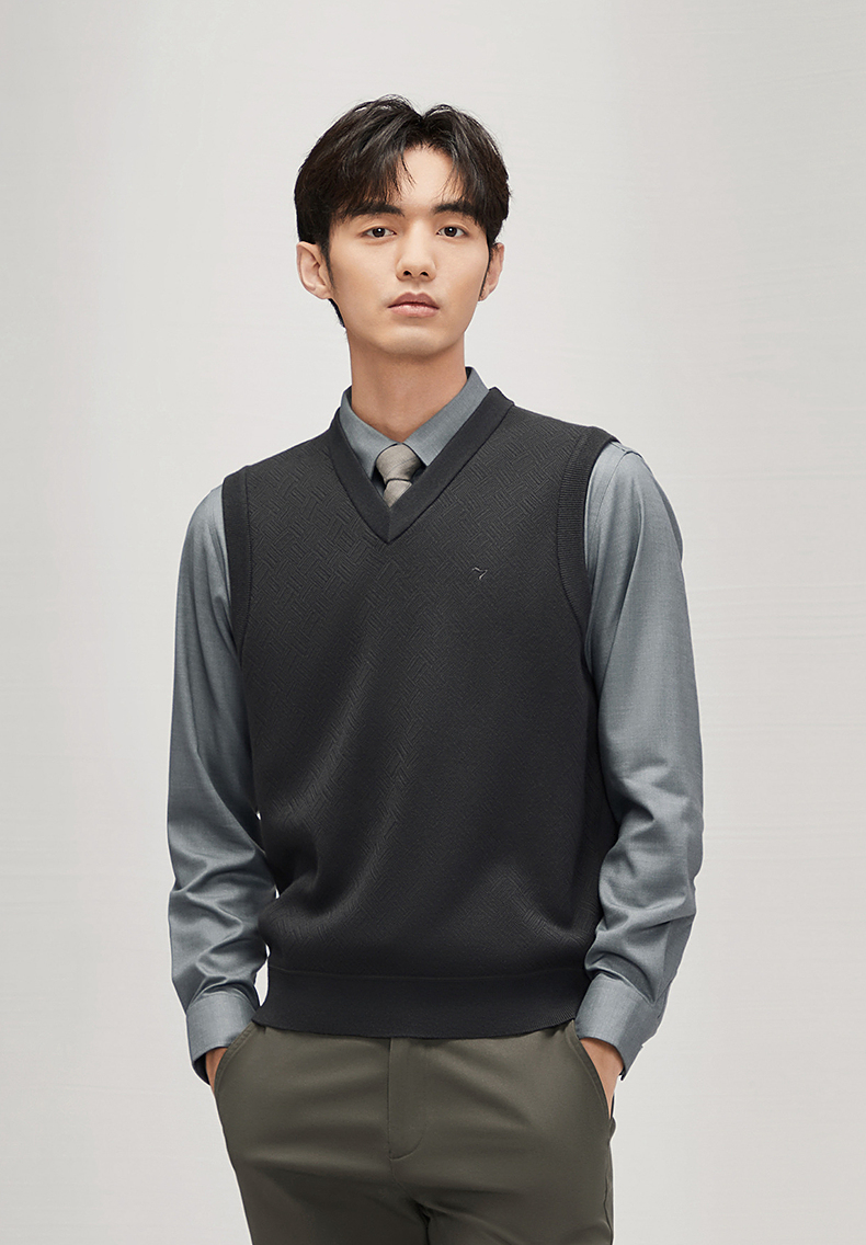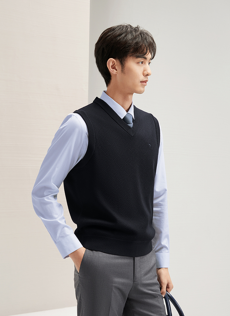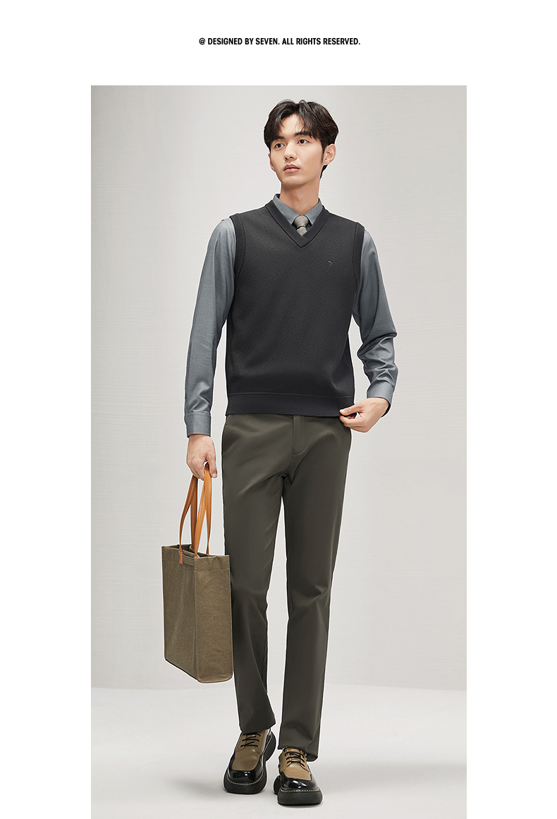 柒牌男装背心毛衣男士2024秋冬新品时尚休闲V领加绒格纹打底毛衫 127Y70780