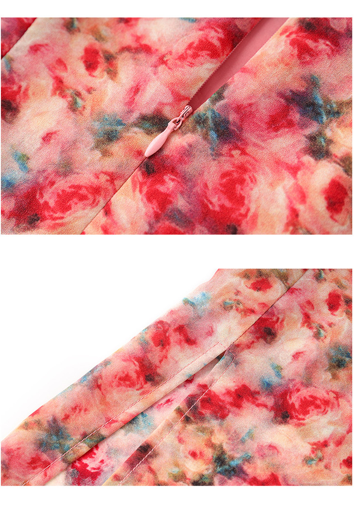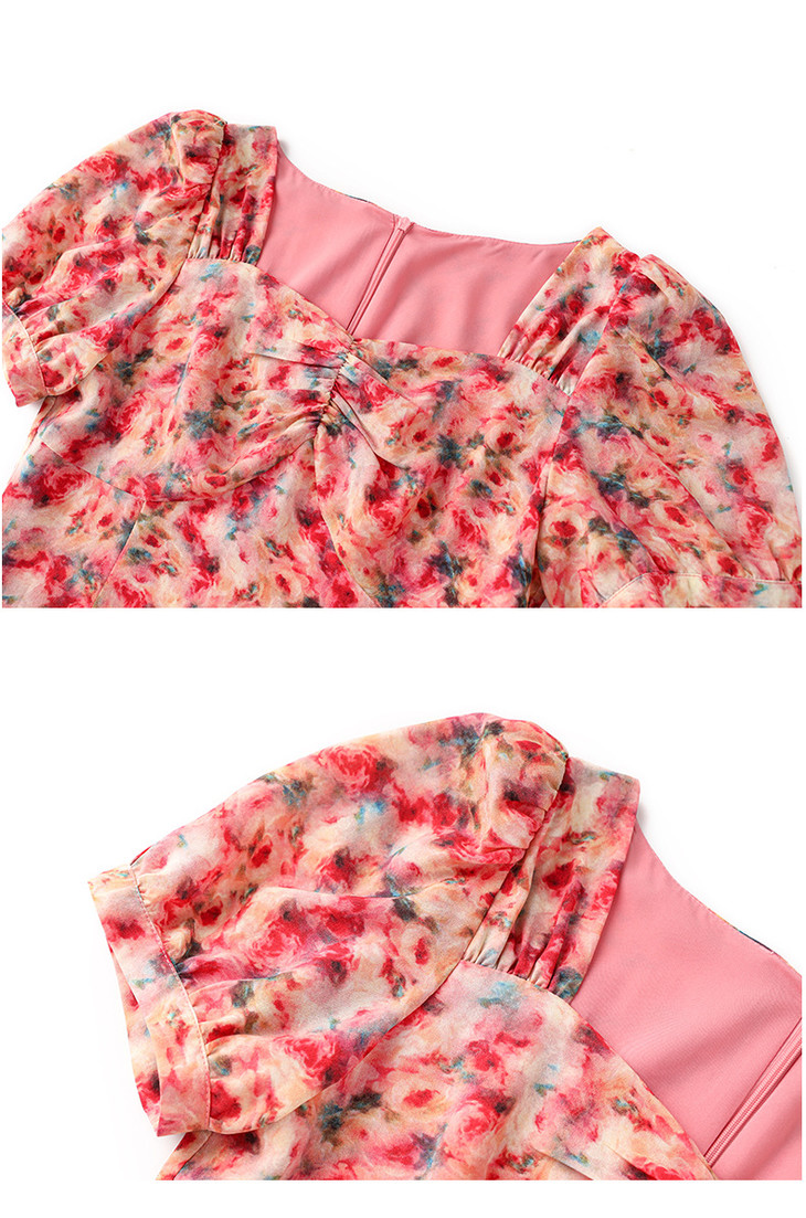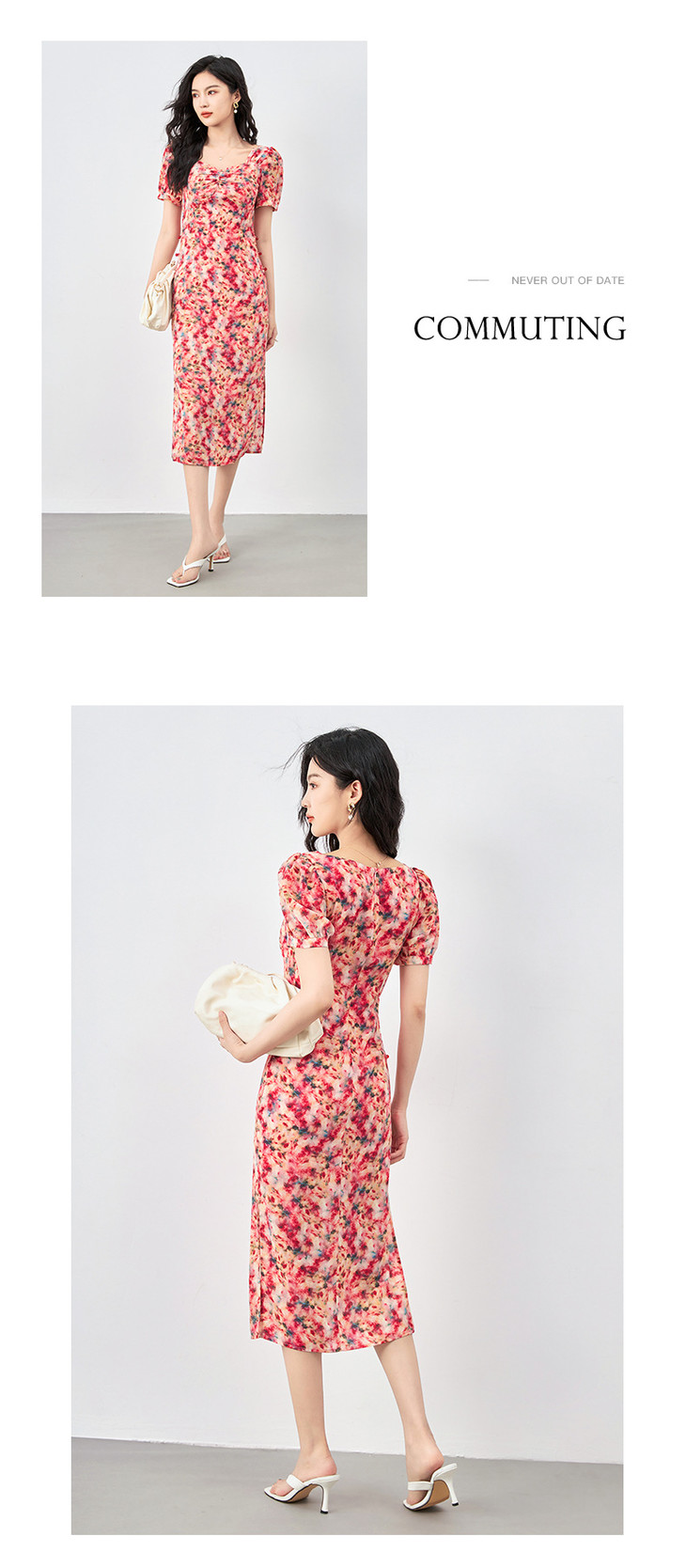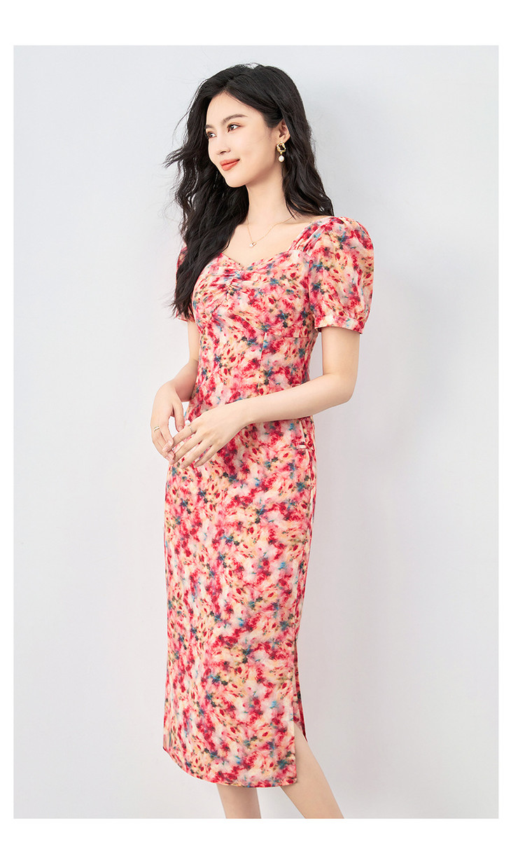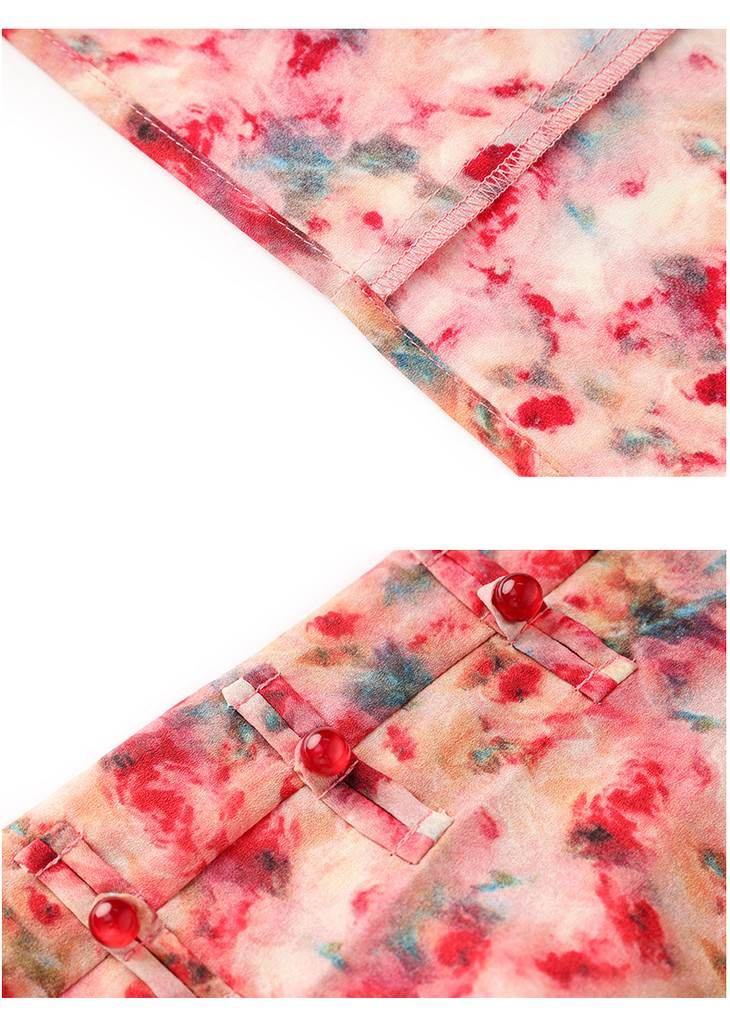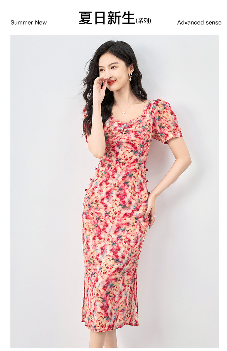 法式茶歇优雅气质印花连衣裙,侧边中式盘扣名媛碎花WLZD2419504
