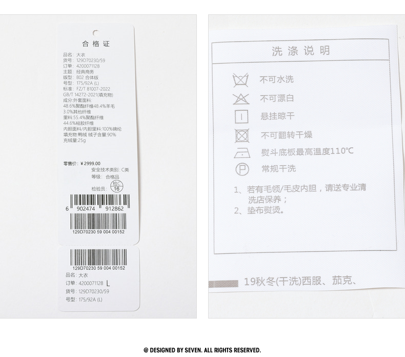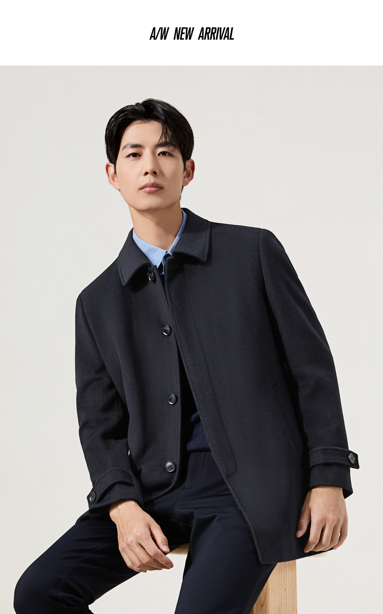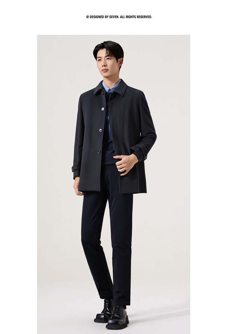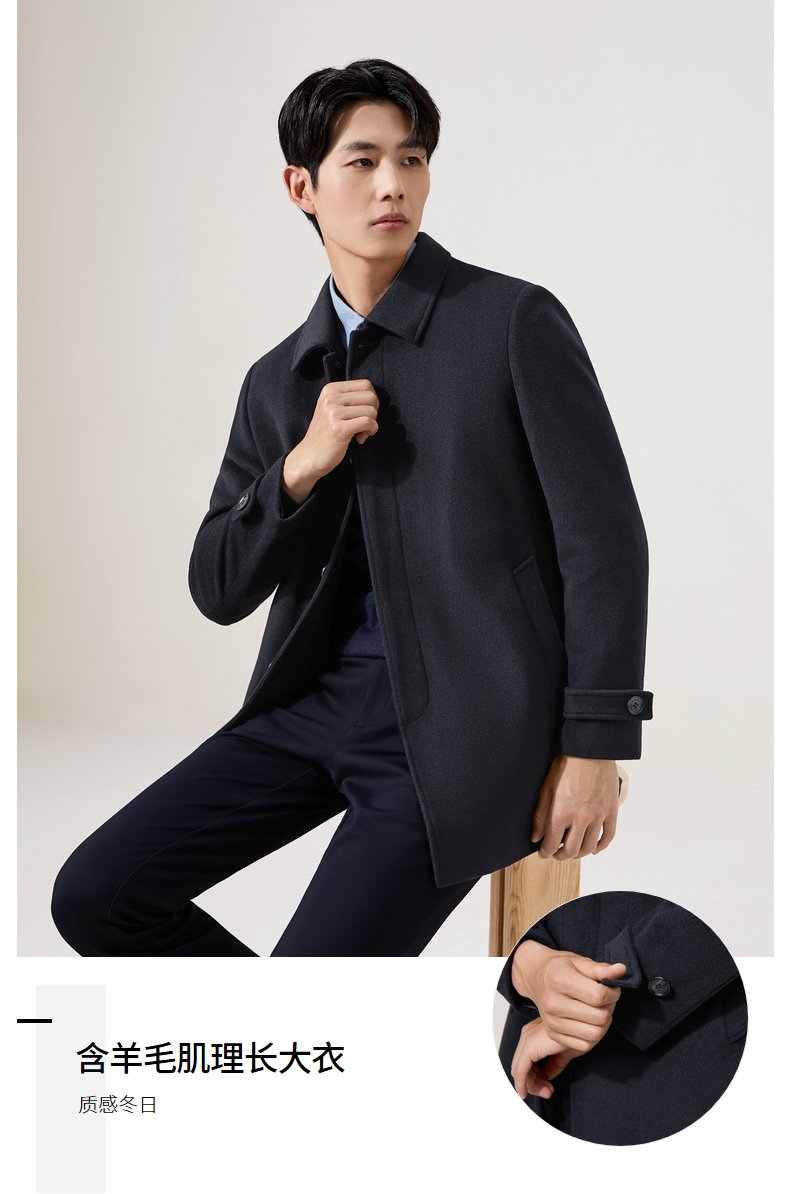 【48.4%羊毛/可拆卸羽绒内胆】柒牌大衣男装2025冬季新款保暖外套129D70230