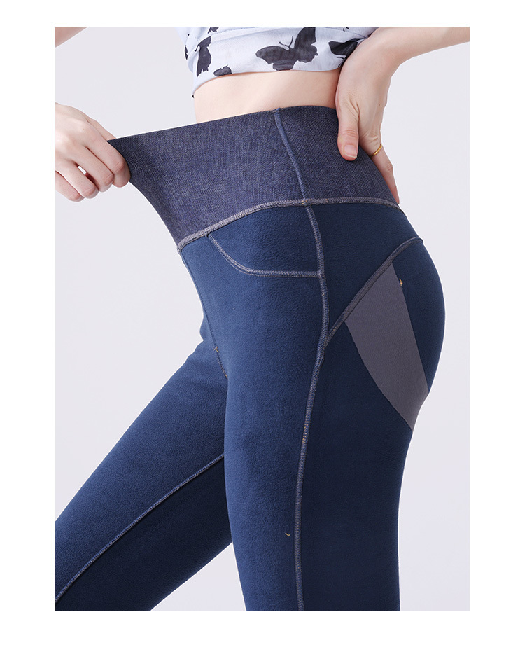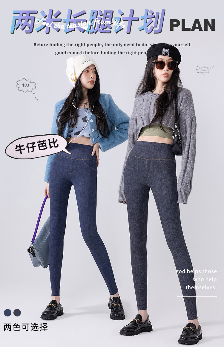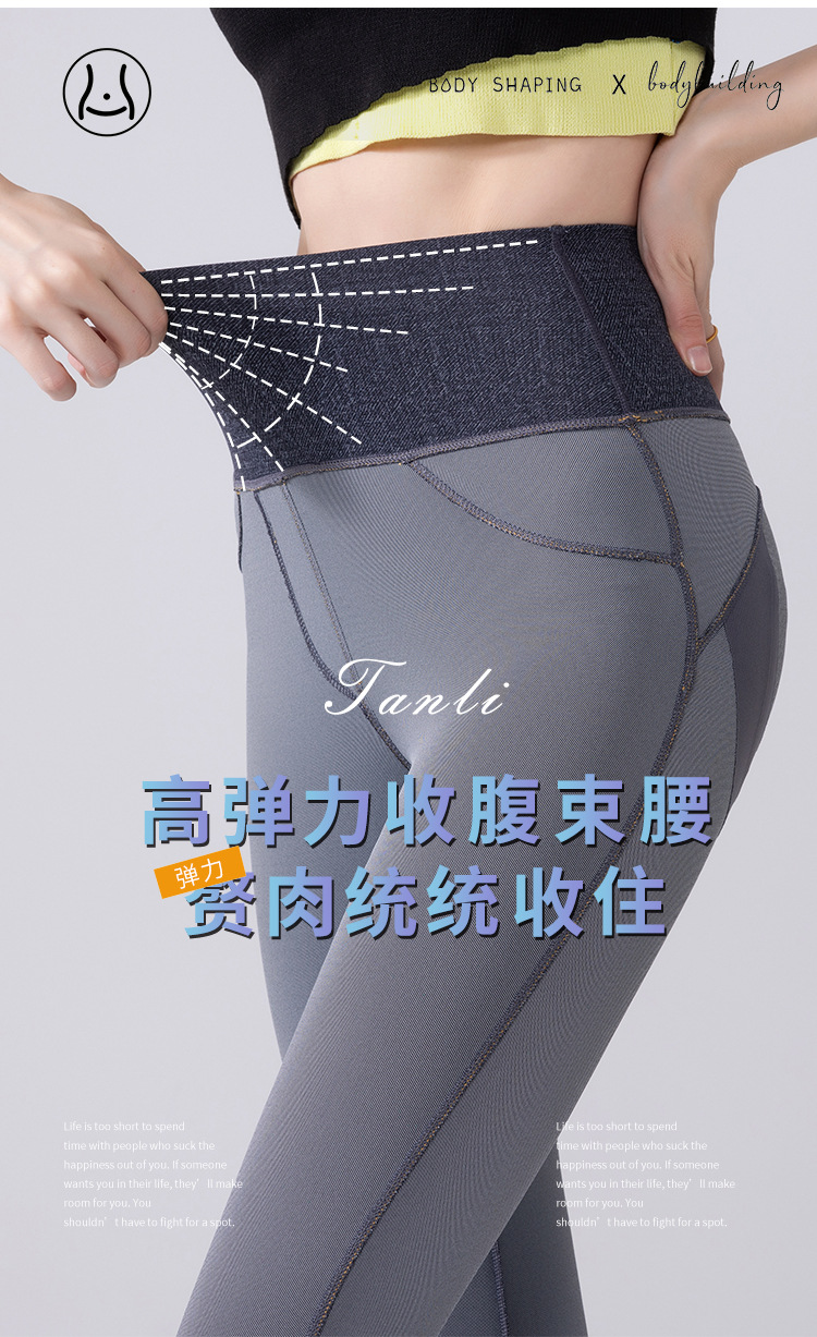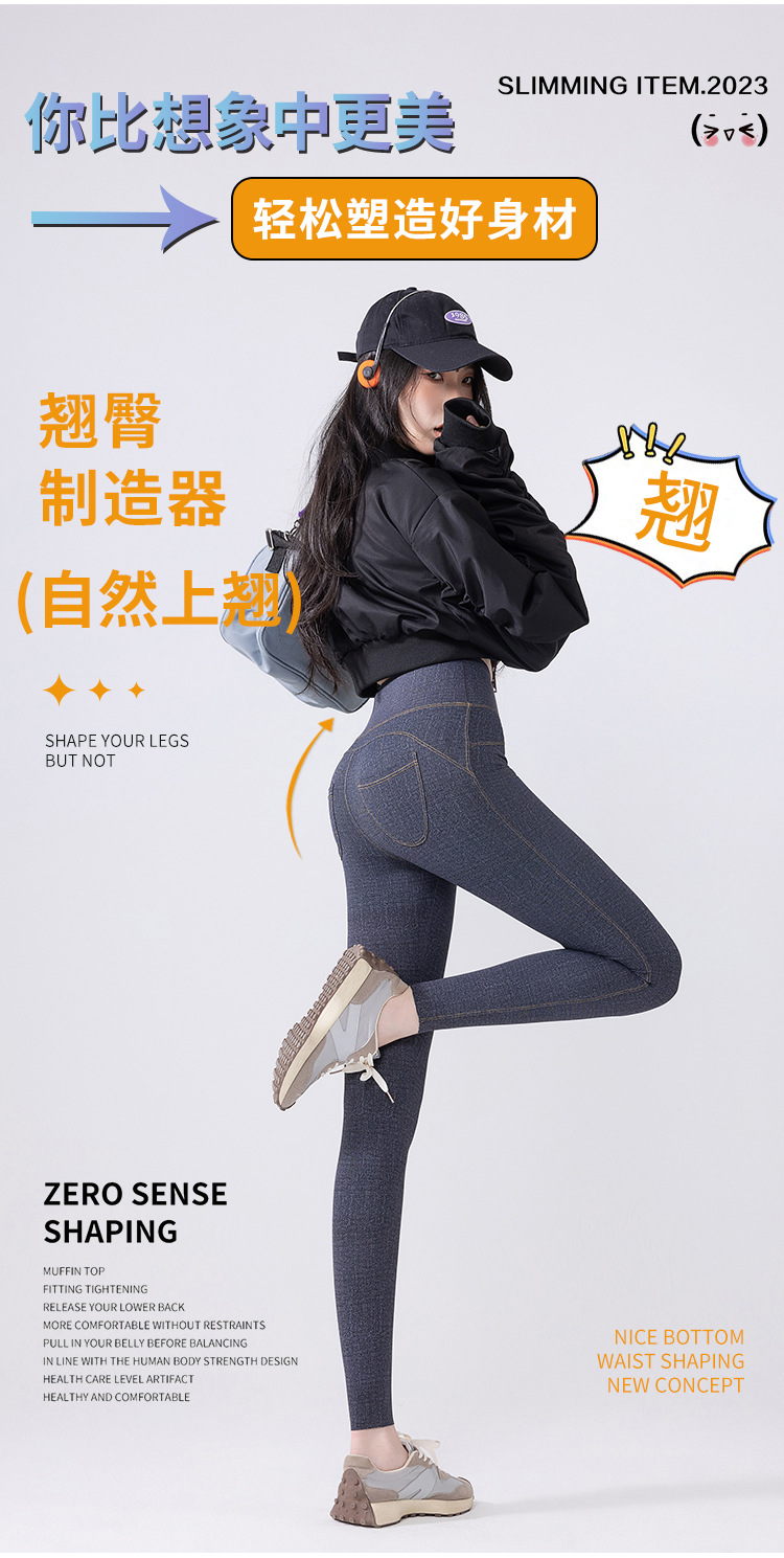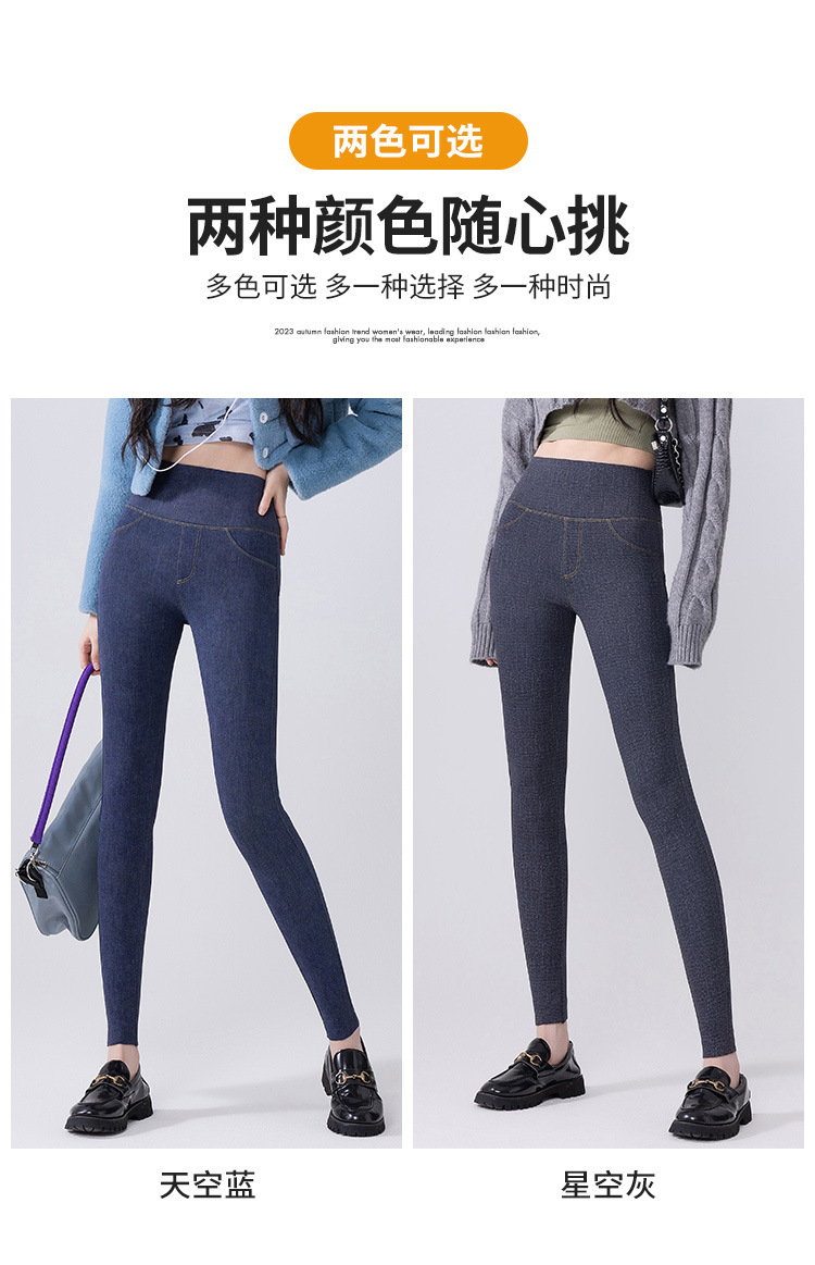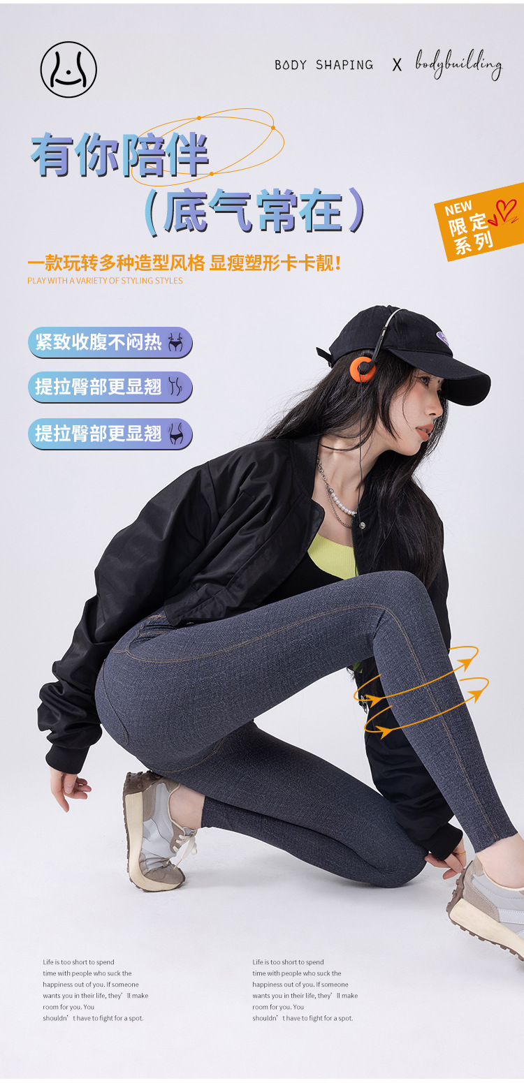 秋冬爆款【牛仔芭比裤】加绒仿牛仔打底裤 高腰收腹提臀芭比瑜伽裤 鲨鱼裤外穿