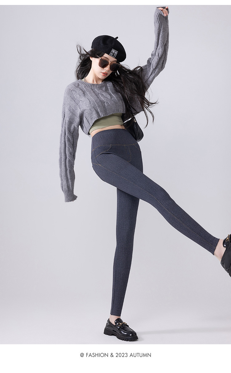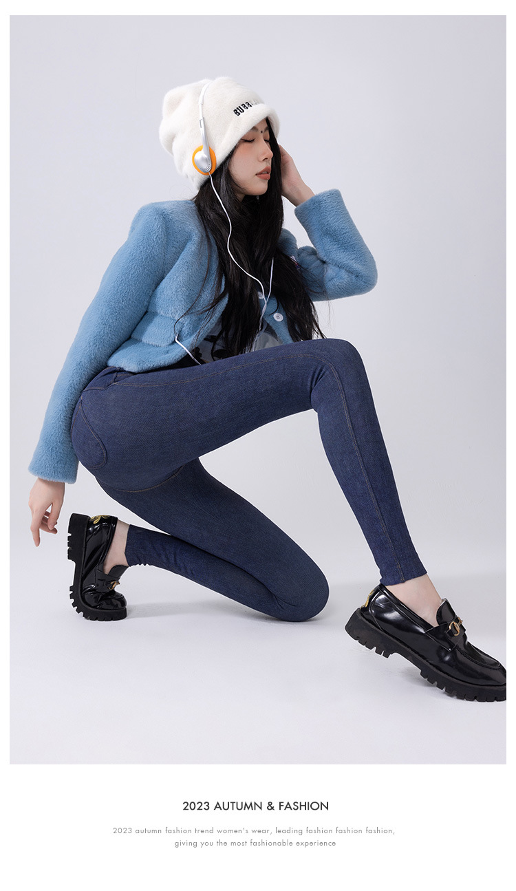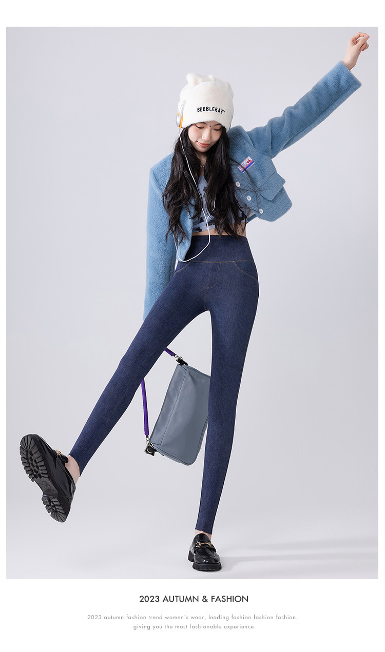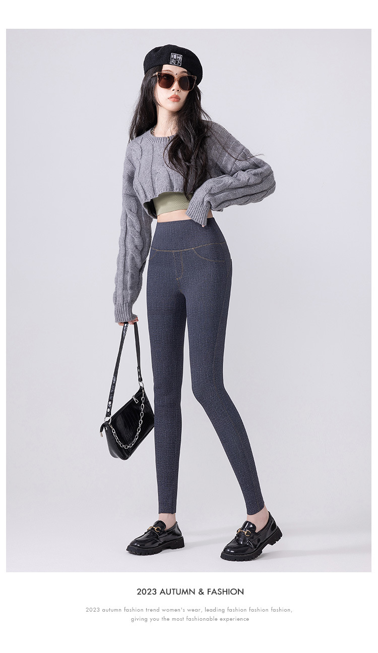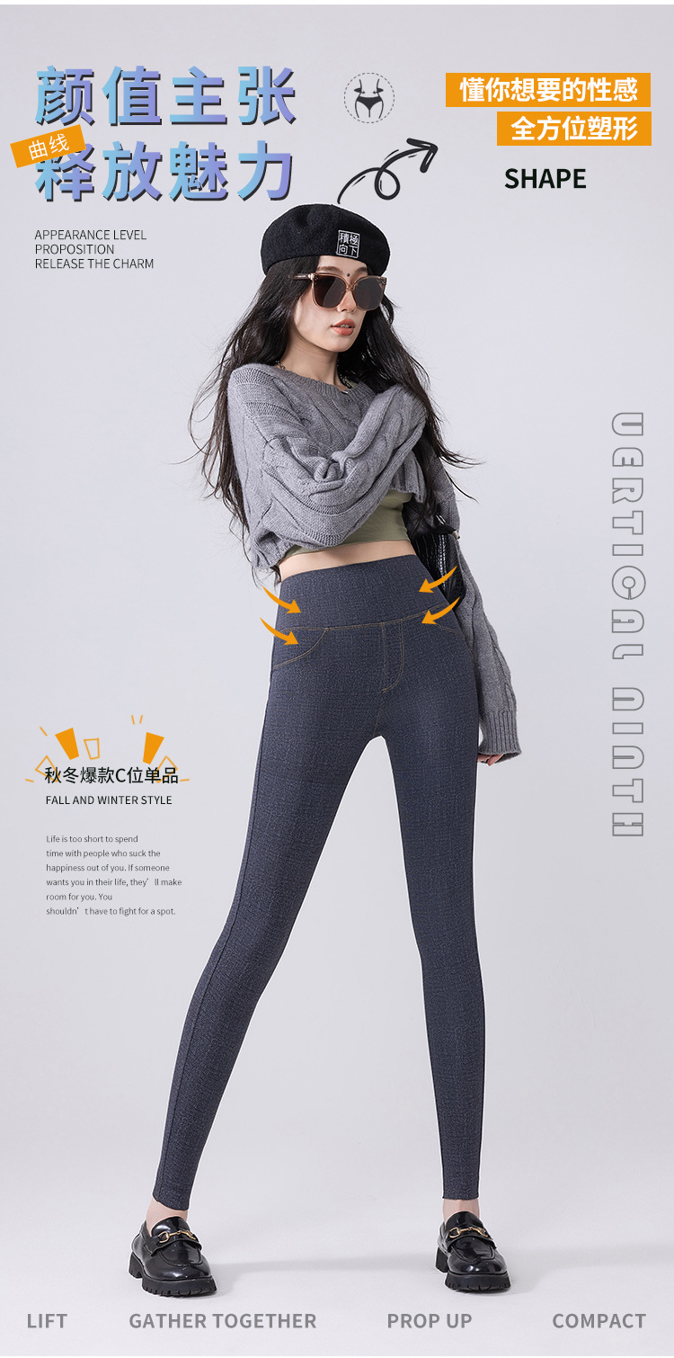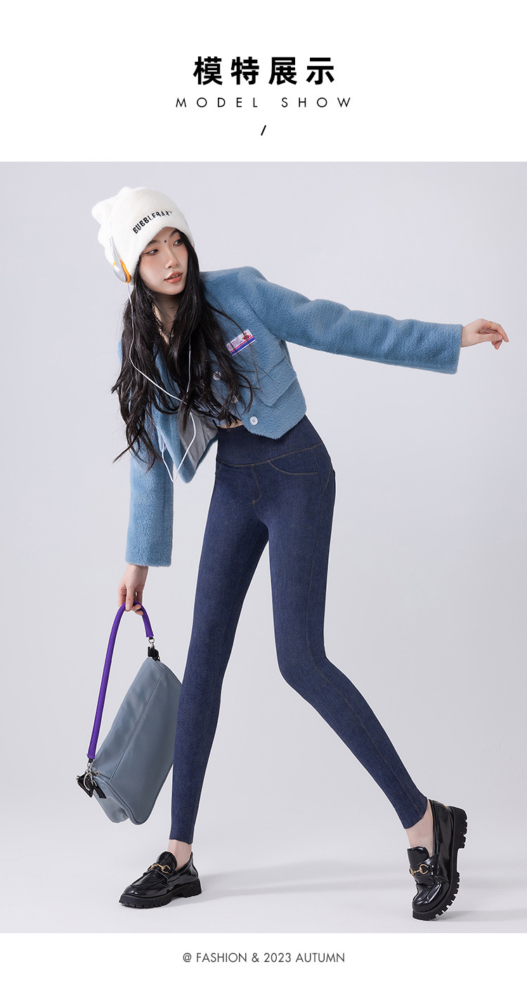 秋冬爆款【牛仔芭比裤】加绒仿牛仔打底裤 高腰收腹提臀芭比瑜伽裤 鲨鱼裤外穿