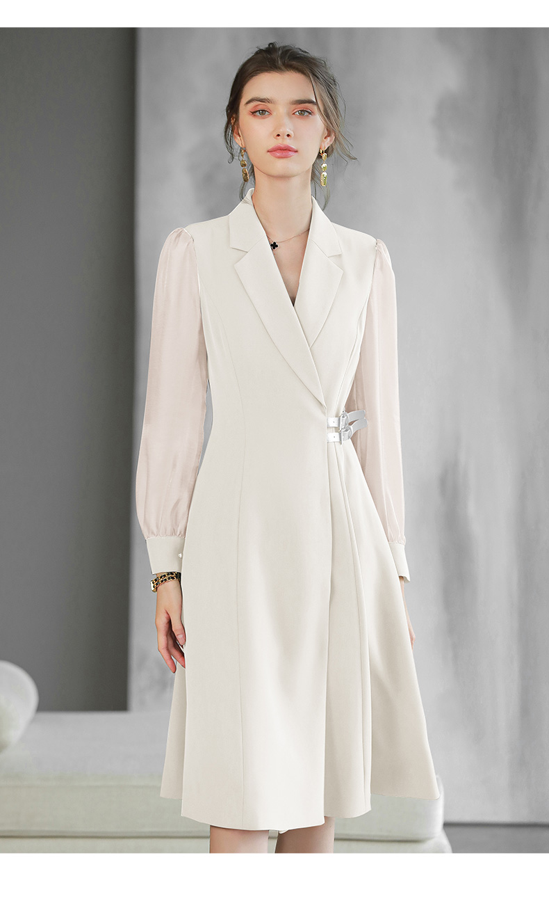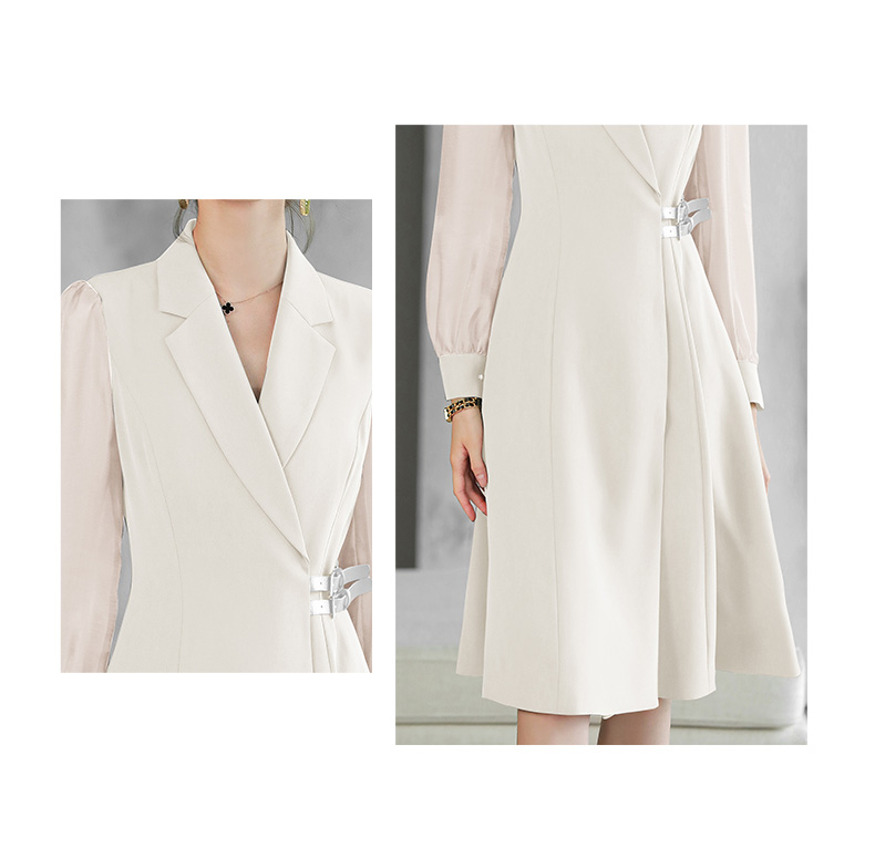 IWY/米白色西装连衣裙气质名媛新款小个子西服裙主持人正装Q729