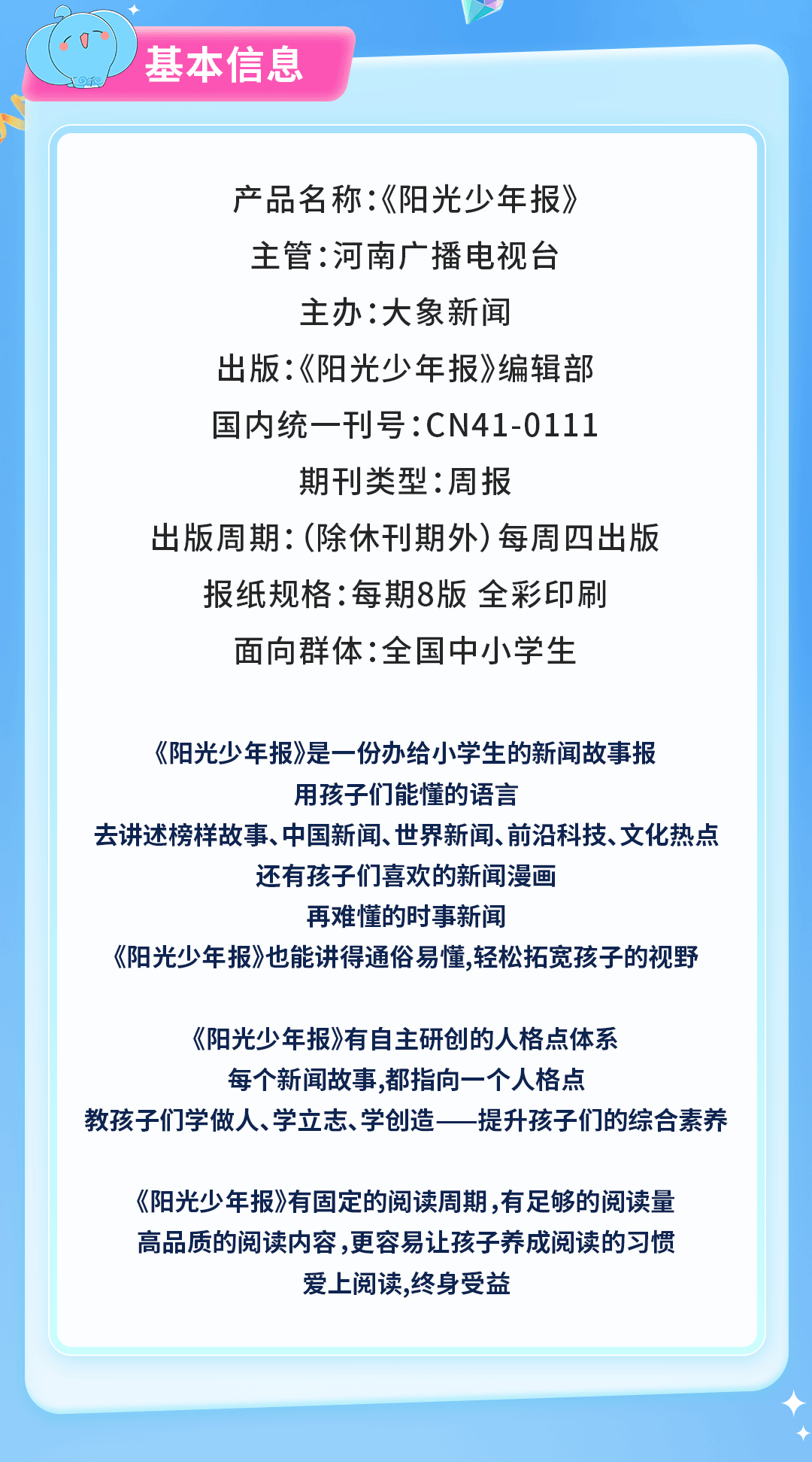 阳光少年报-小少年 3人团周周投 2026年1-12月起订 全年刊(3份起拍)