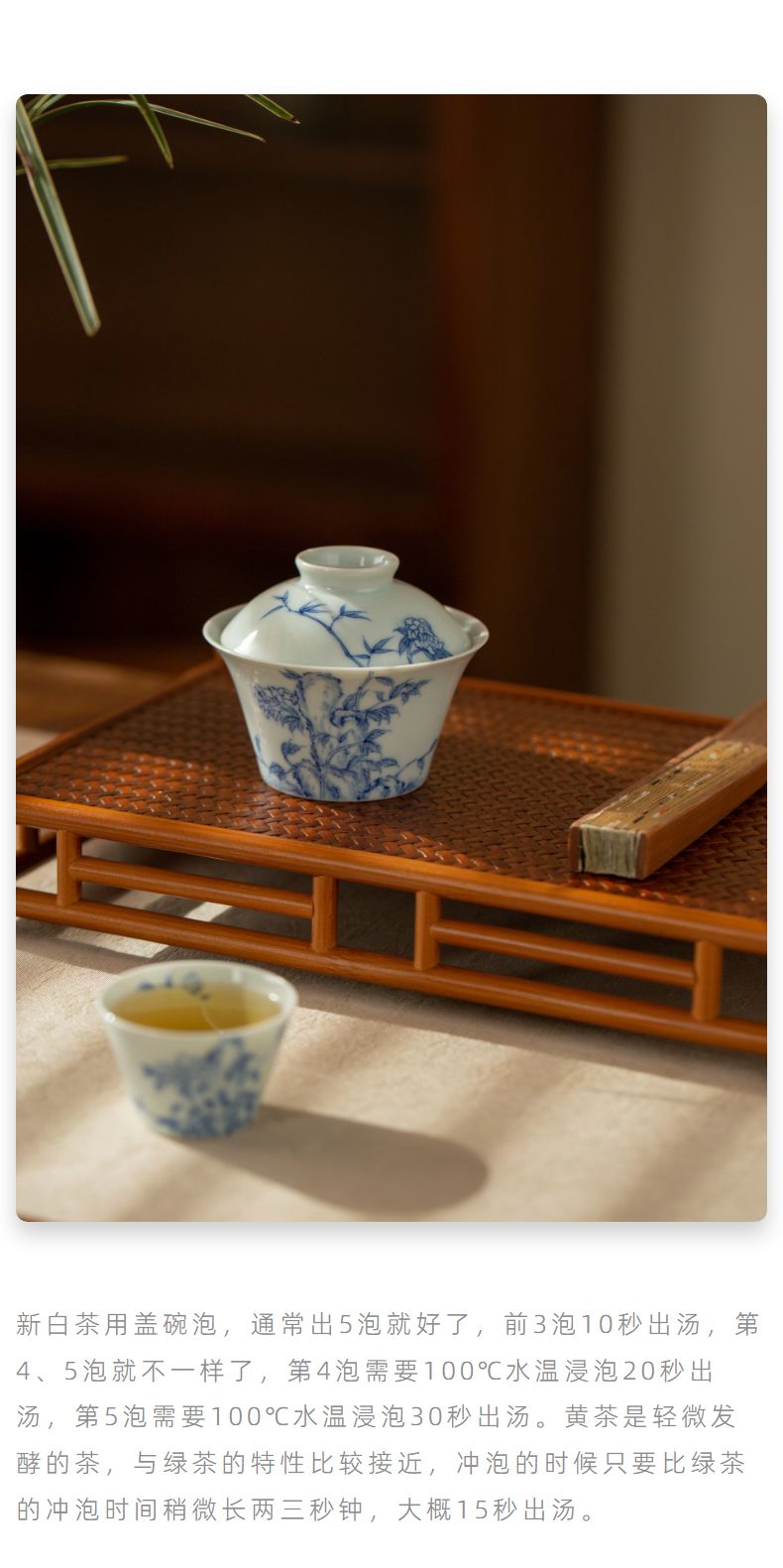 云诗玉洁丨青花富丽堂皇盖碗140ML(口径:9.0CM,底径:5.1CM,高度:7.3CM)