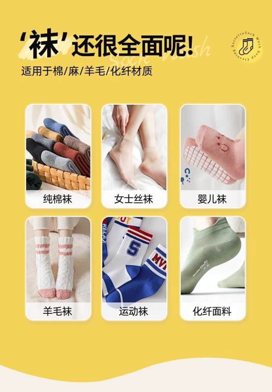 它不仅能深层清洁,还能保护袜子的纤维,洗再多次都像新的一样柔软舒适! 再也不用担心袜子泛黄变硬,穿在脚上自信满满! 使用方法超简单,一泵就搞定,泡沫丰富易冲洗,简直是懒人福音! 🛁 现在,洗袜子变成了一种享受,每次穿上都像是给自己的小脚丫做了一个SPA!