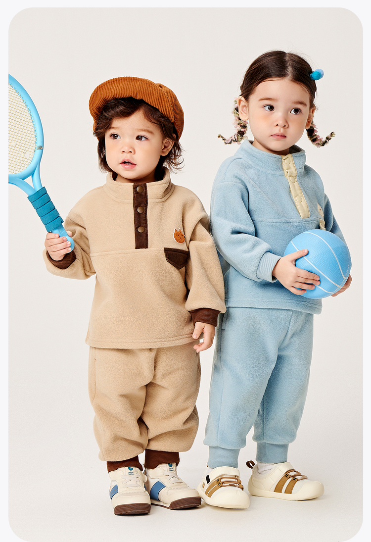 【净电绒】迷你巴拉长袖套装男女童毛绒保暖抗静电时尚两件套