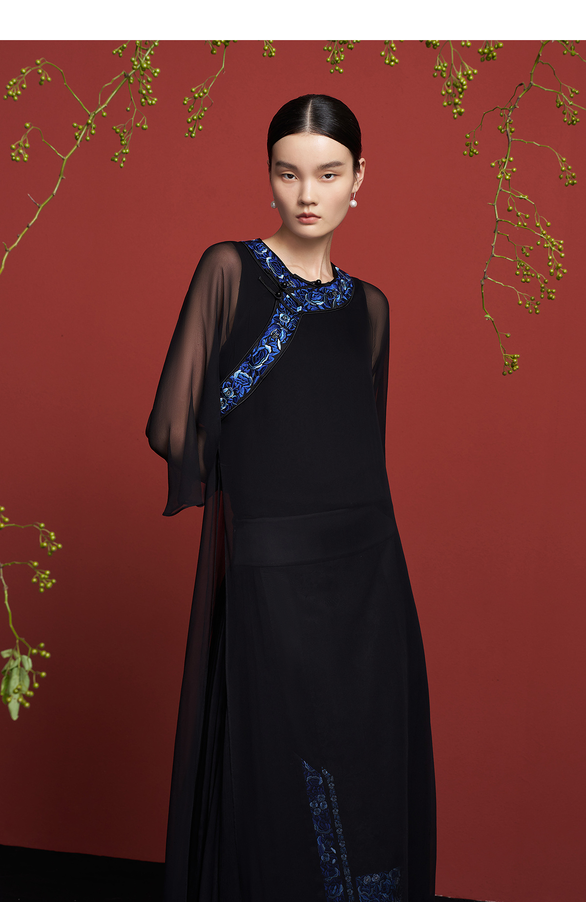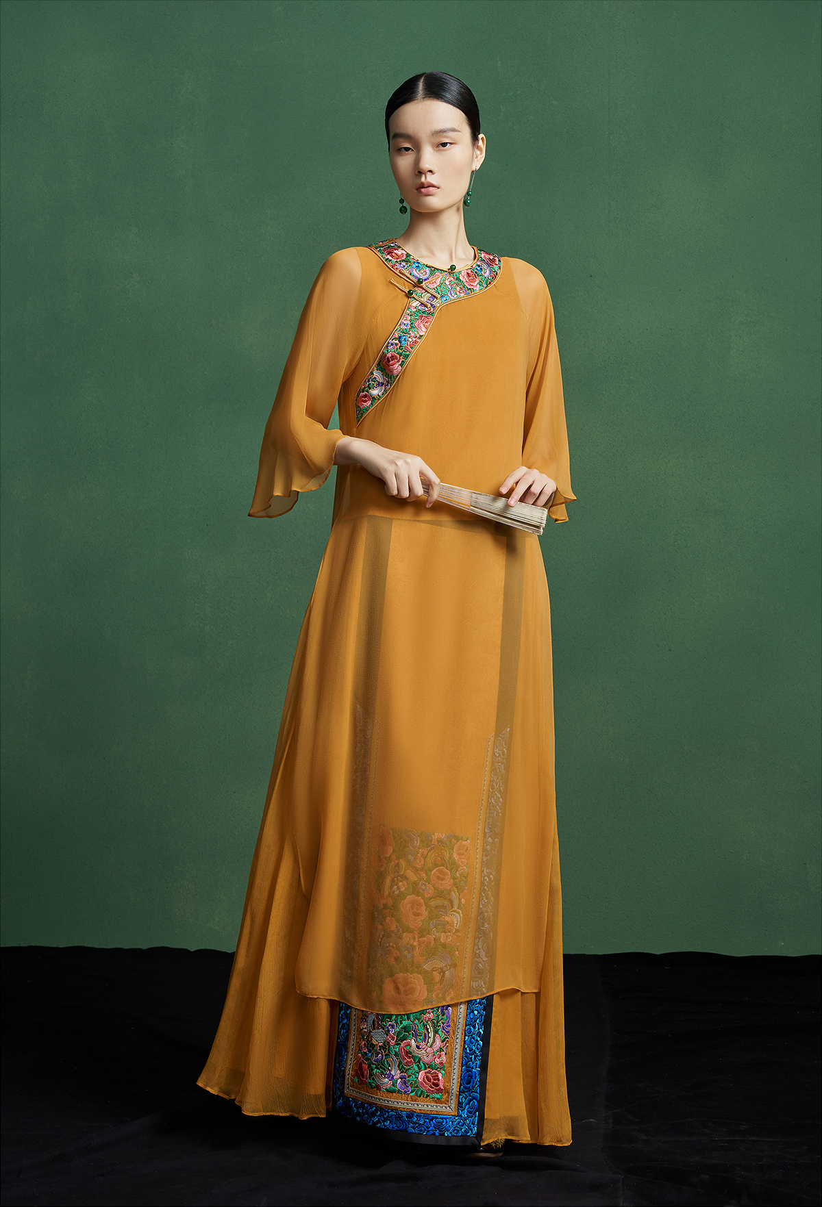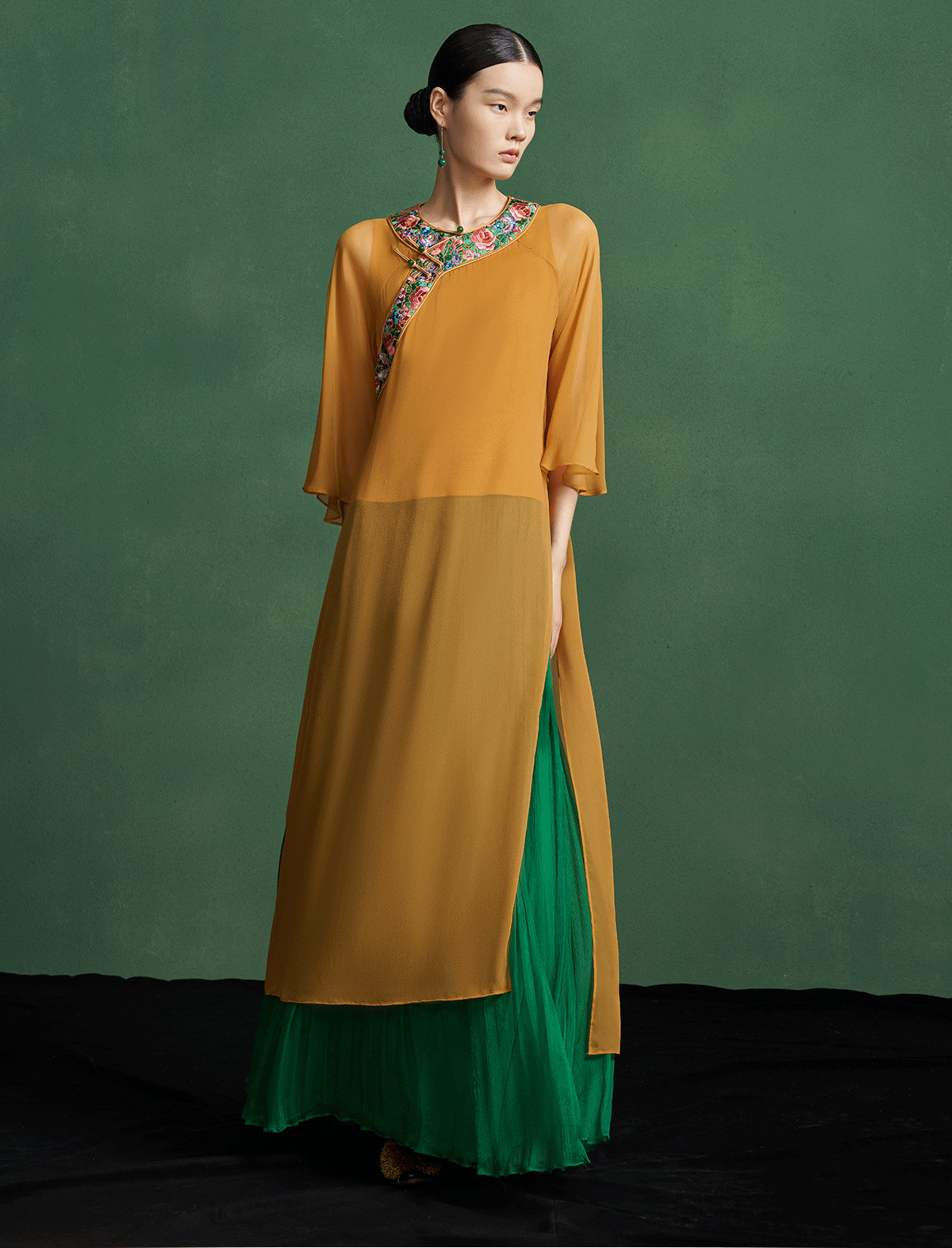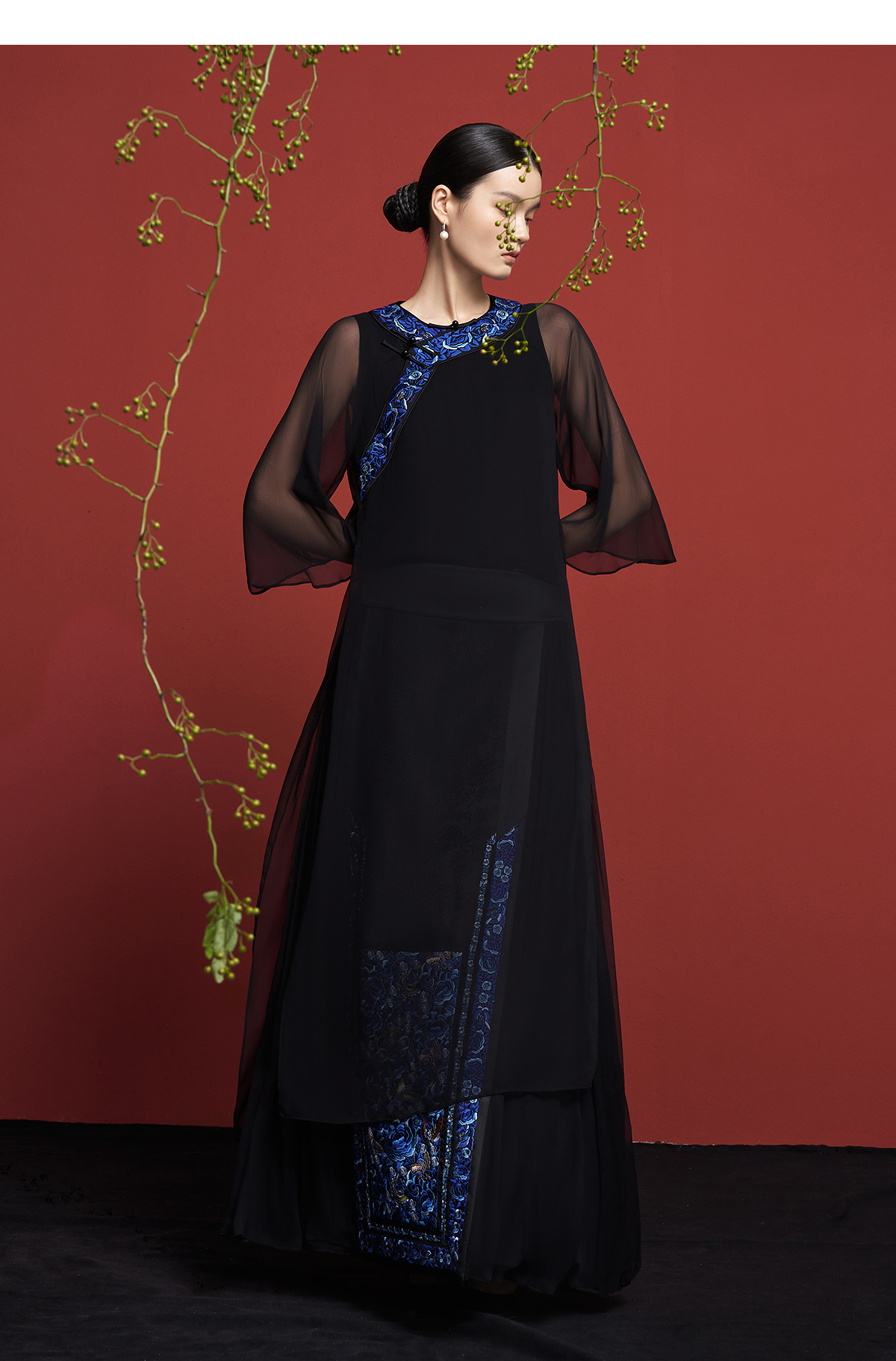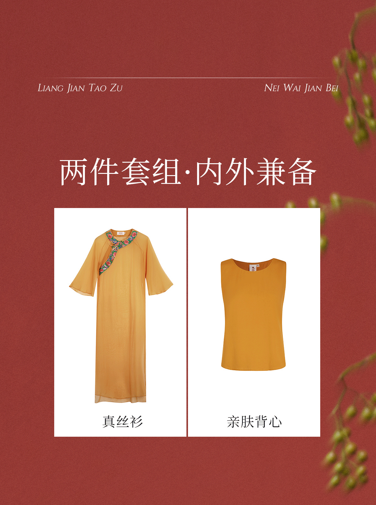【林栖设计小店】【现货】新中式氅衣绣花真丝衫配背心2025春季新品优雅盘扣两件套装女1951129