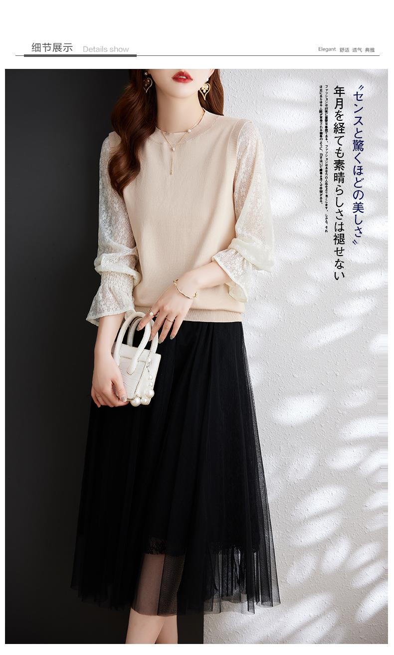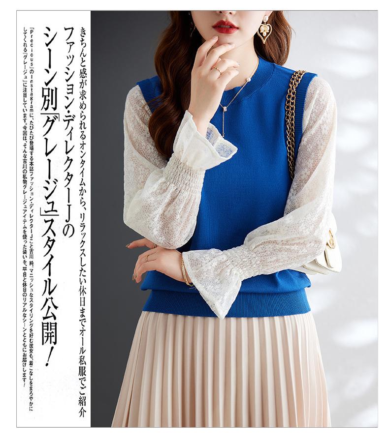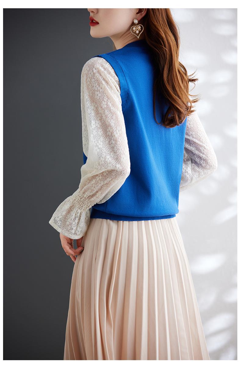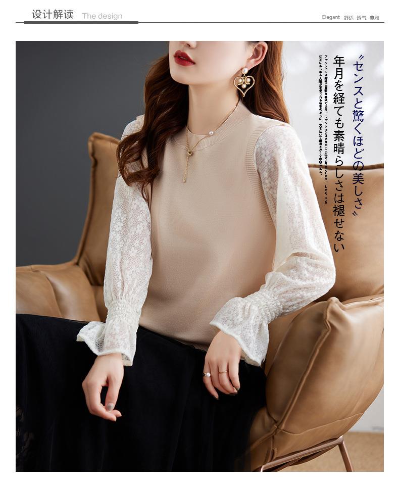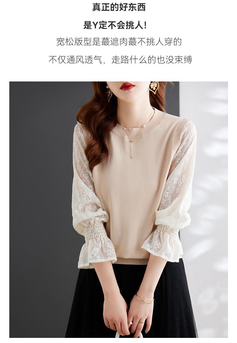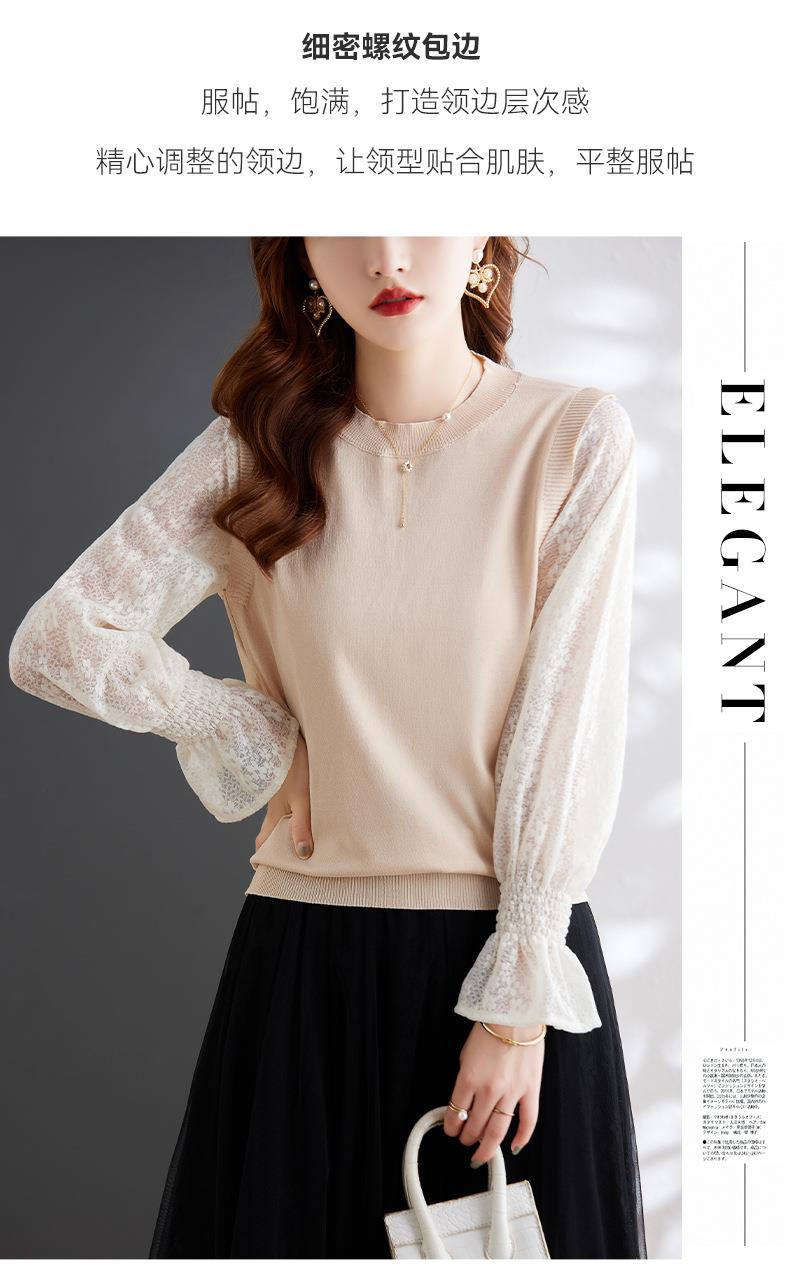 娜璐多 2023秋季新款设计感时尚气质蕾丝长袖拼接撞色针织衫上衣女温柔风