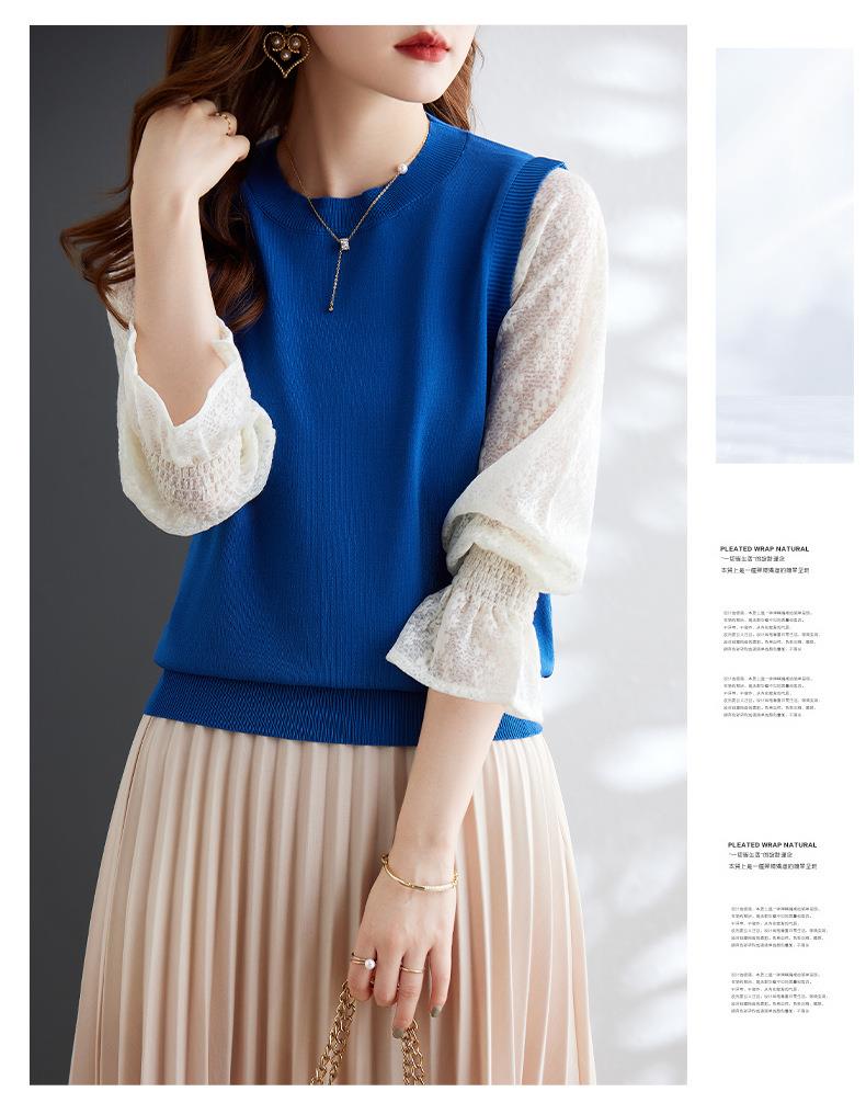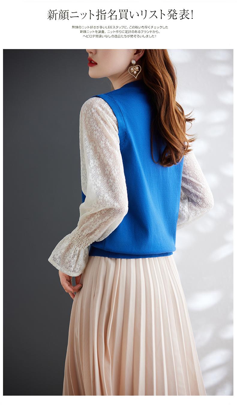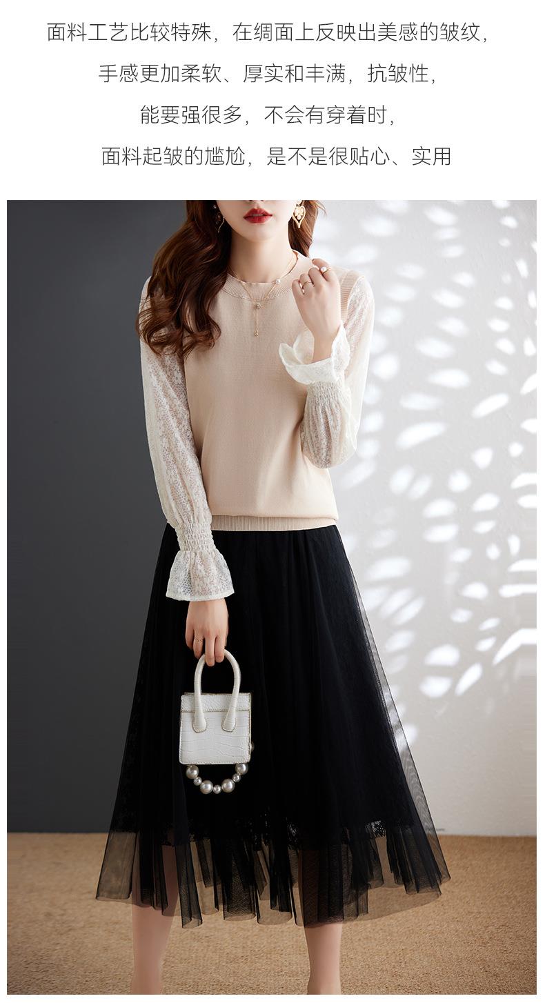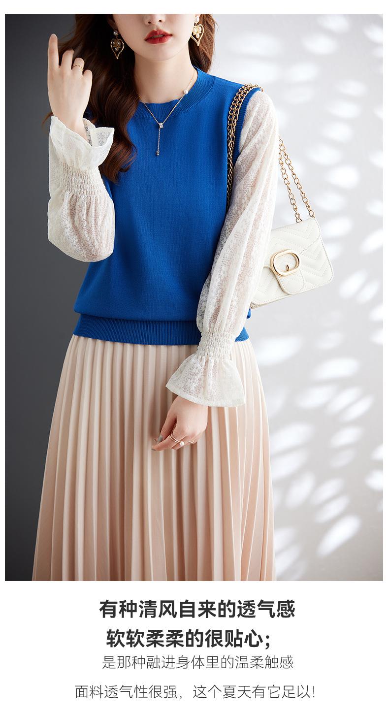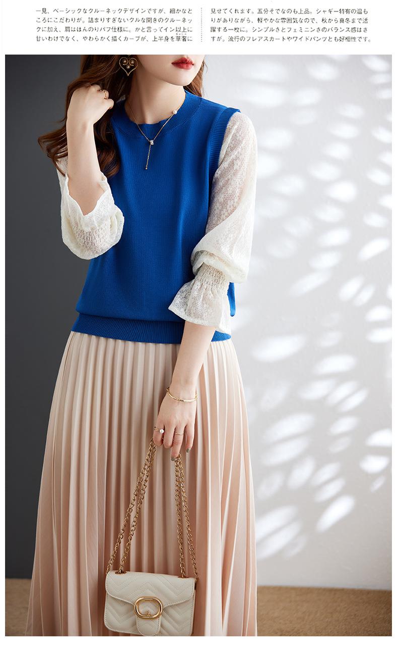 娜璐多 2023秋季新款设计感时尚气质蕾丝长袖拼接撞色针织衫上衣女温柔风