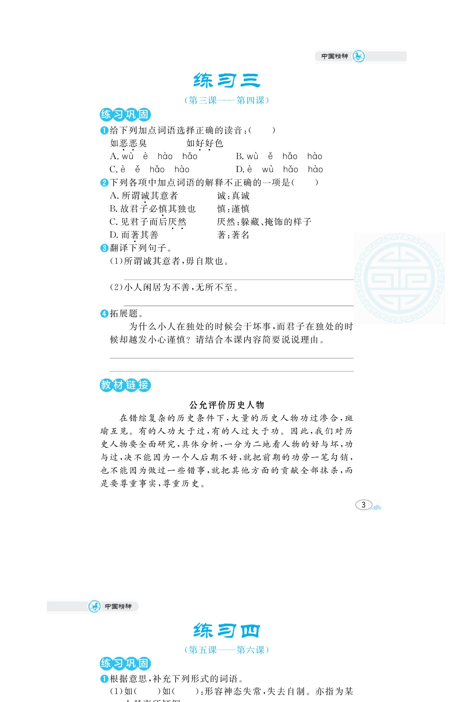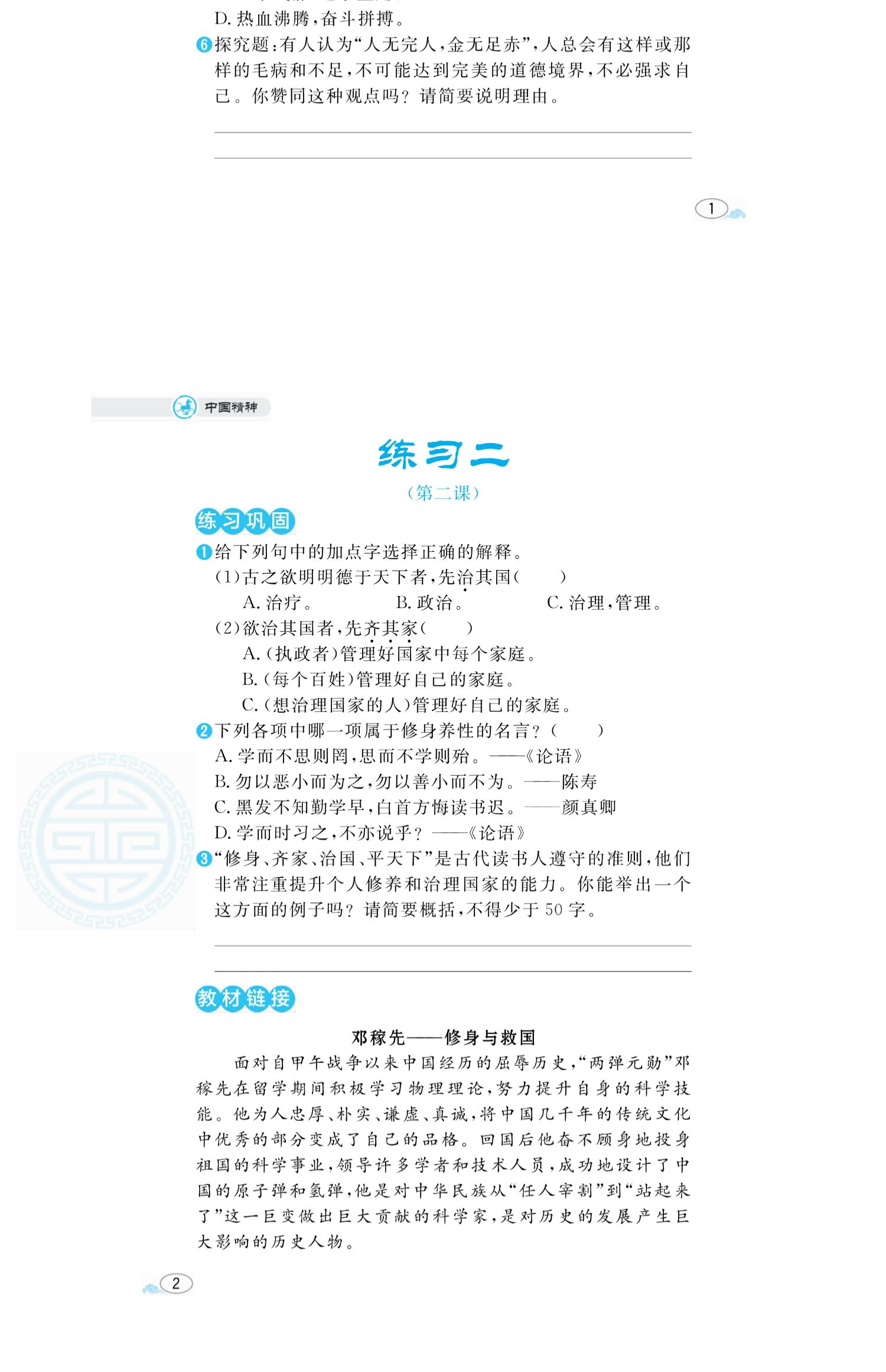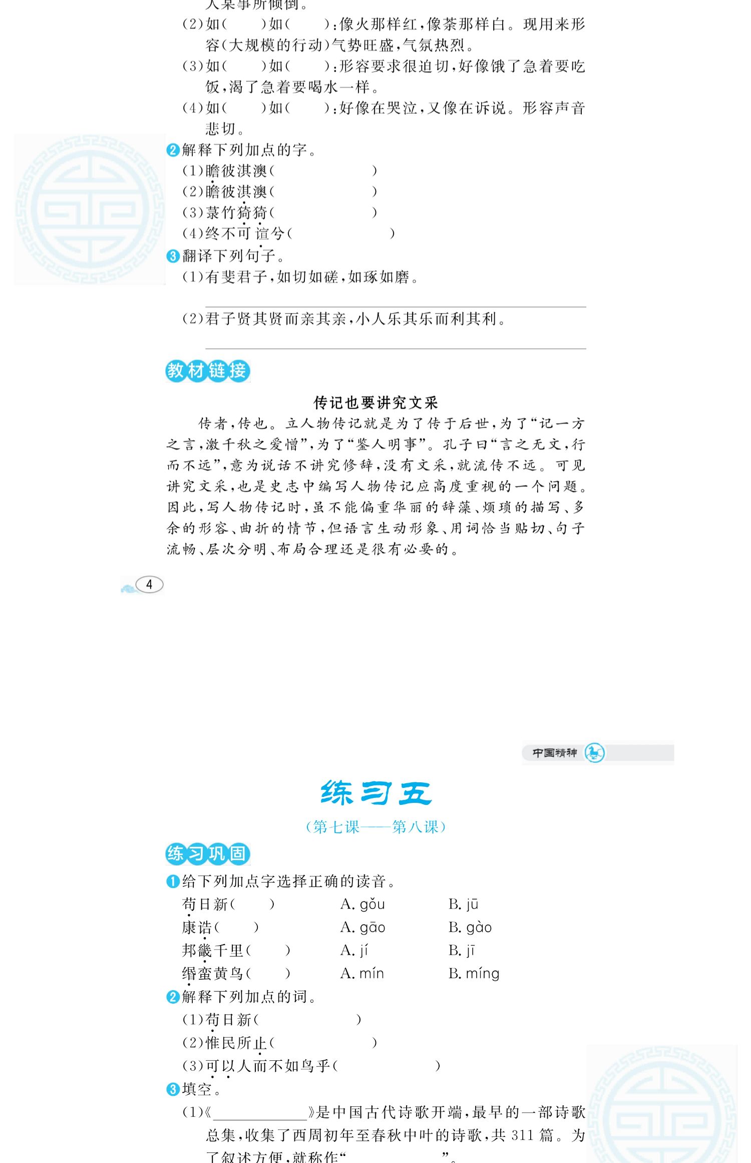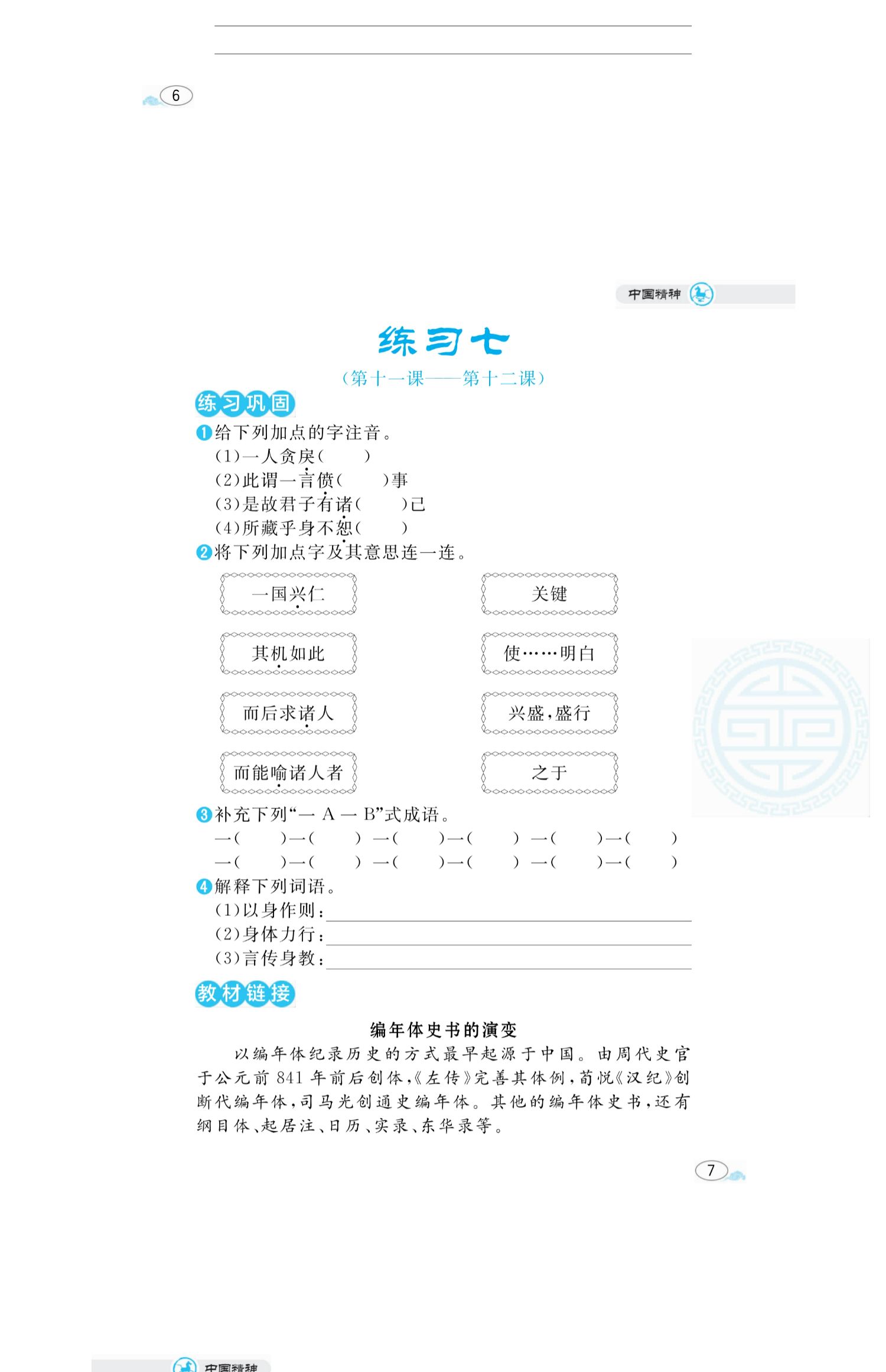 中国精神 七年级下册 7年级下册fb中华优秀传统文化教育读本
