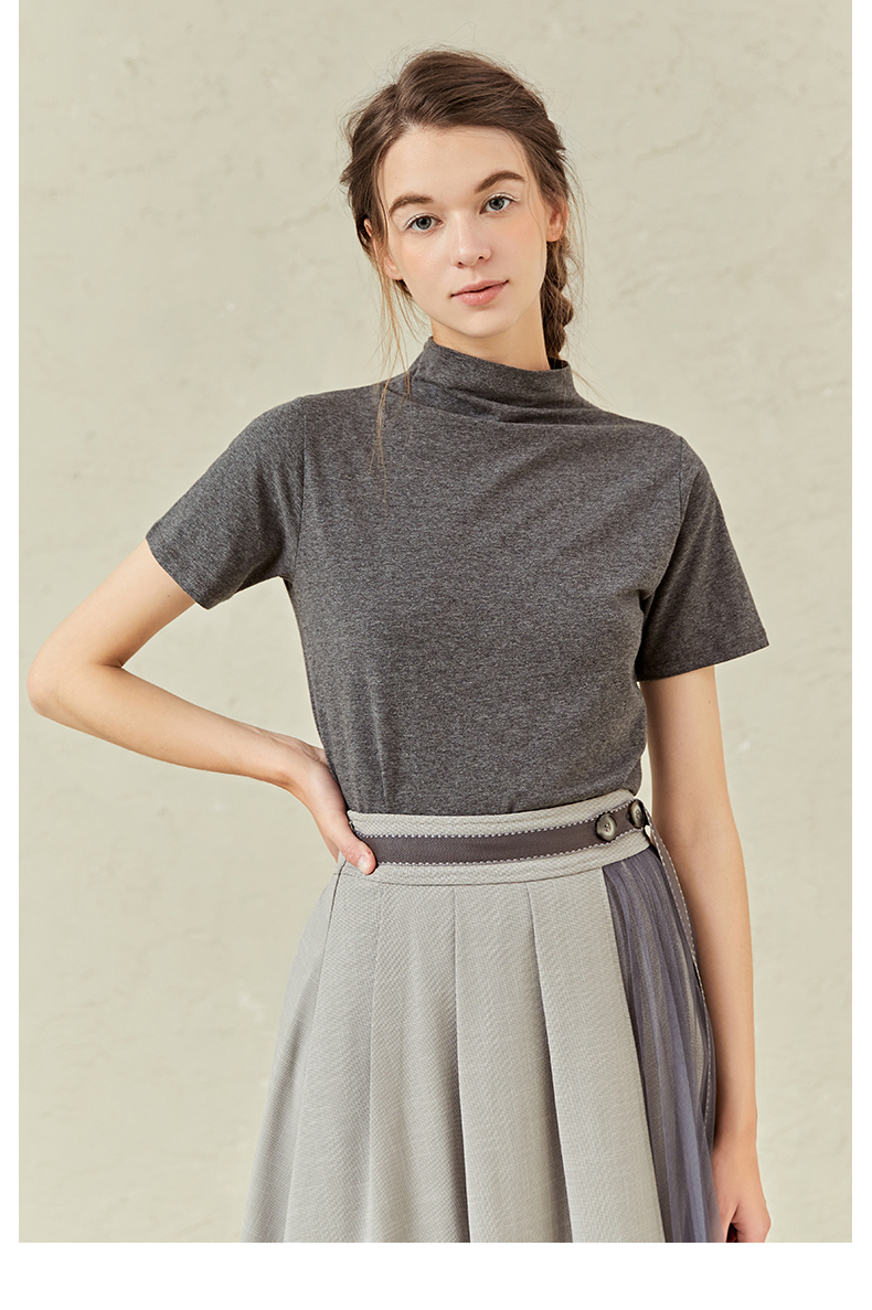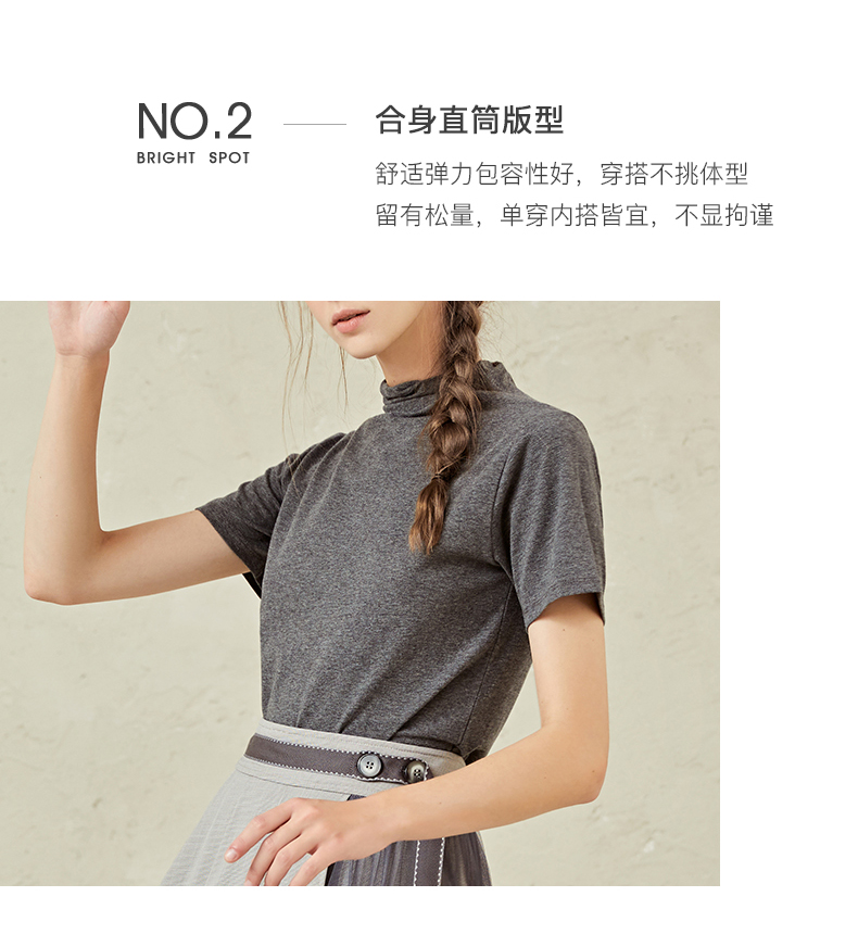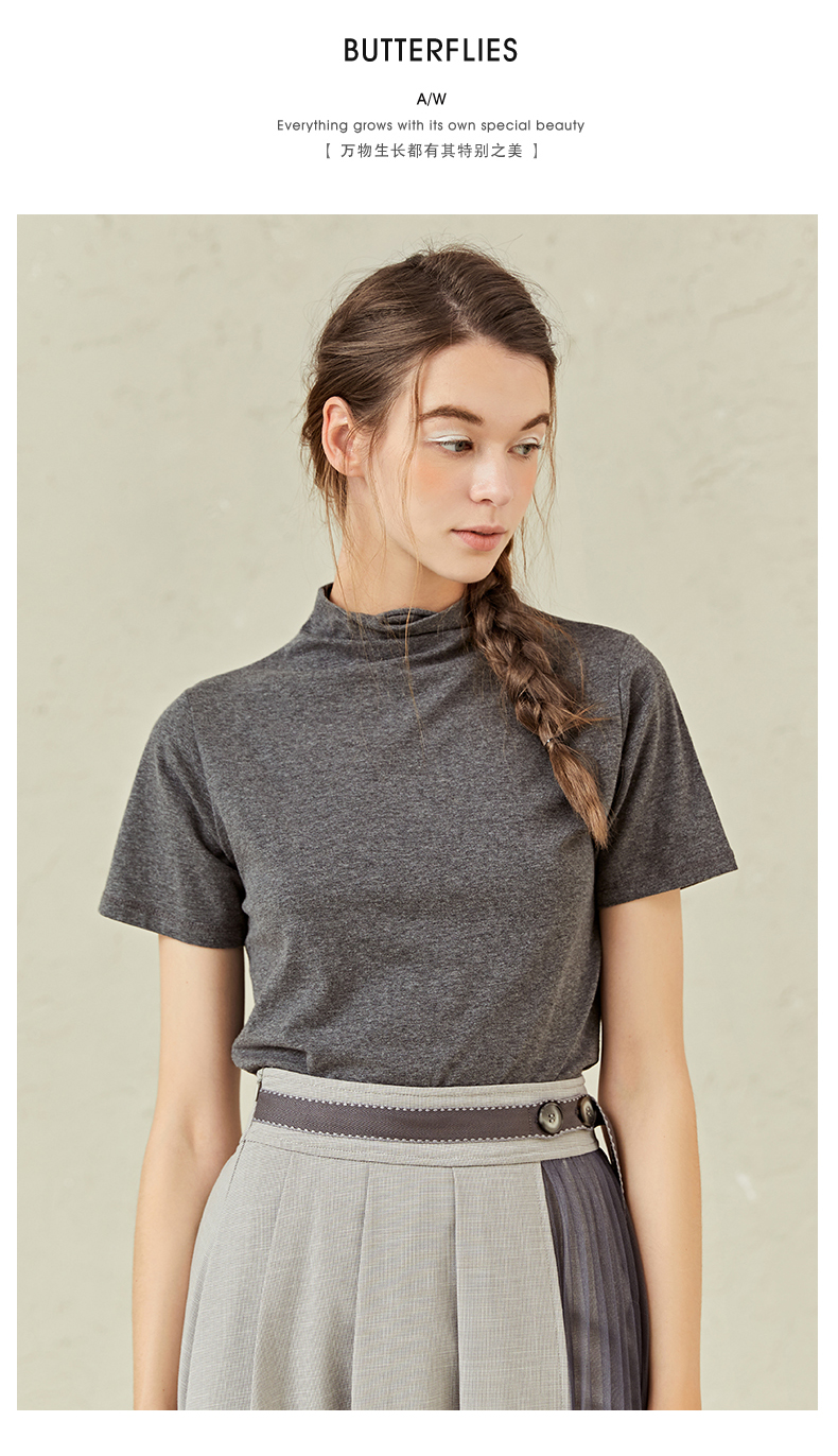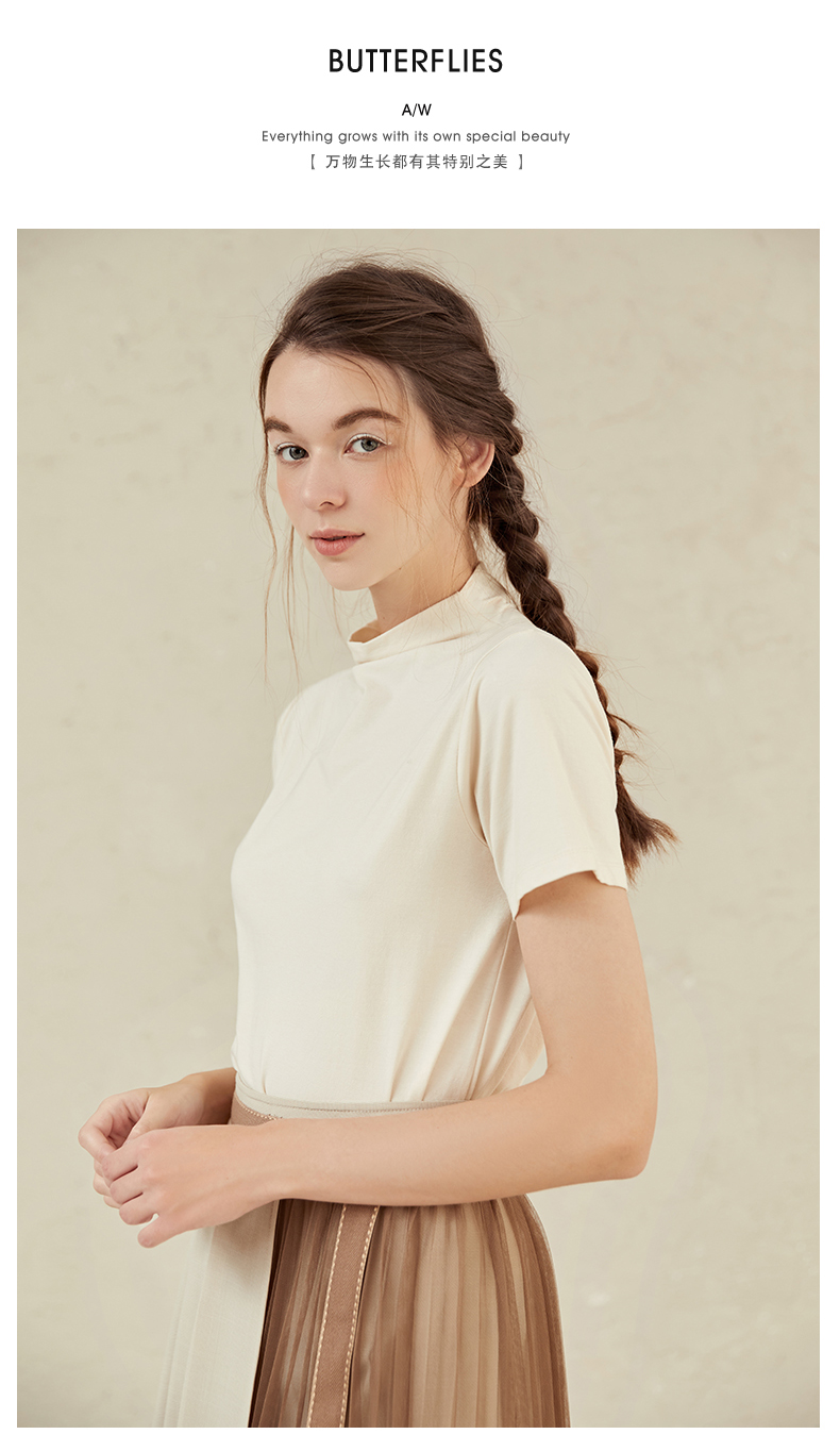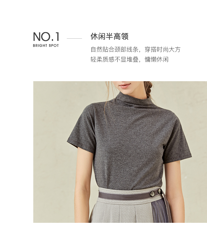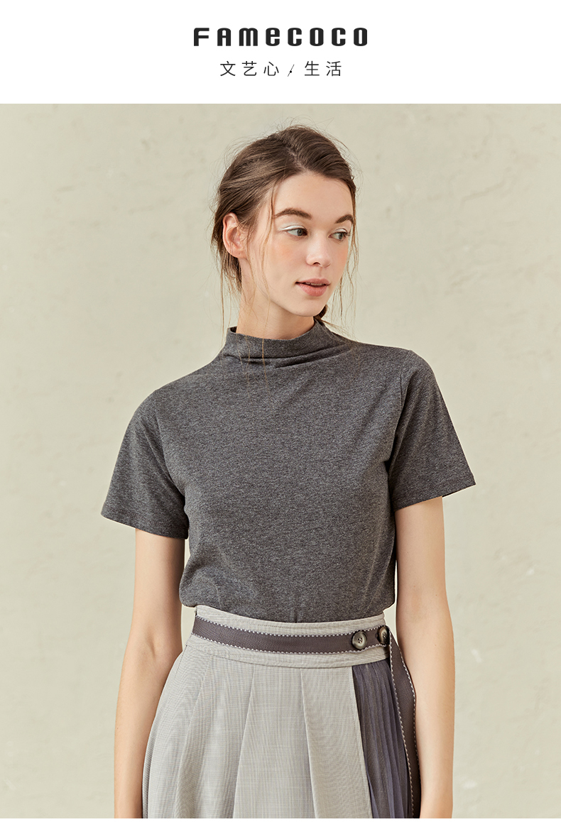 famecoco范可儿半高领打底衫女春内搭短袖t恤F221BB005