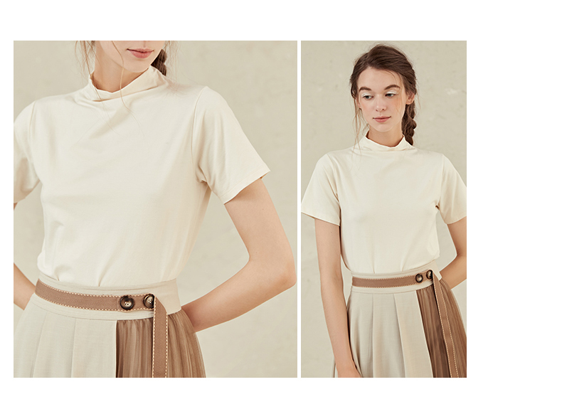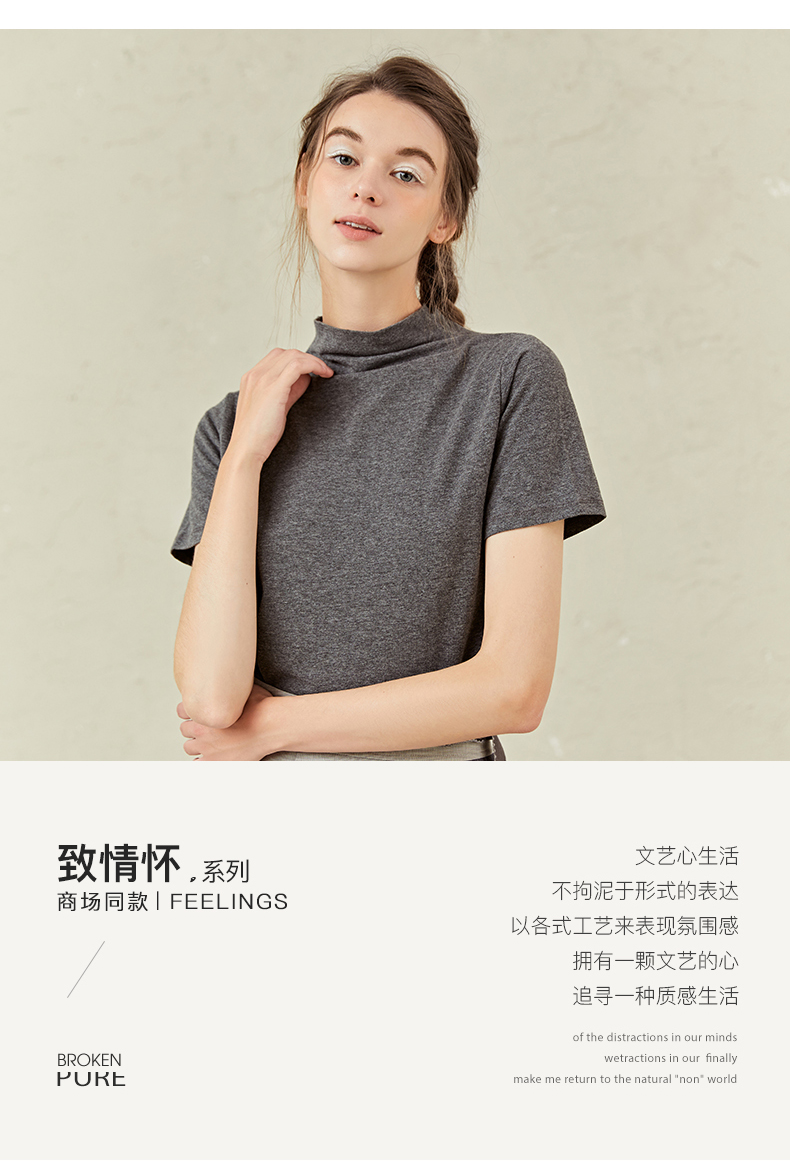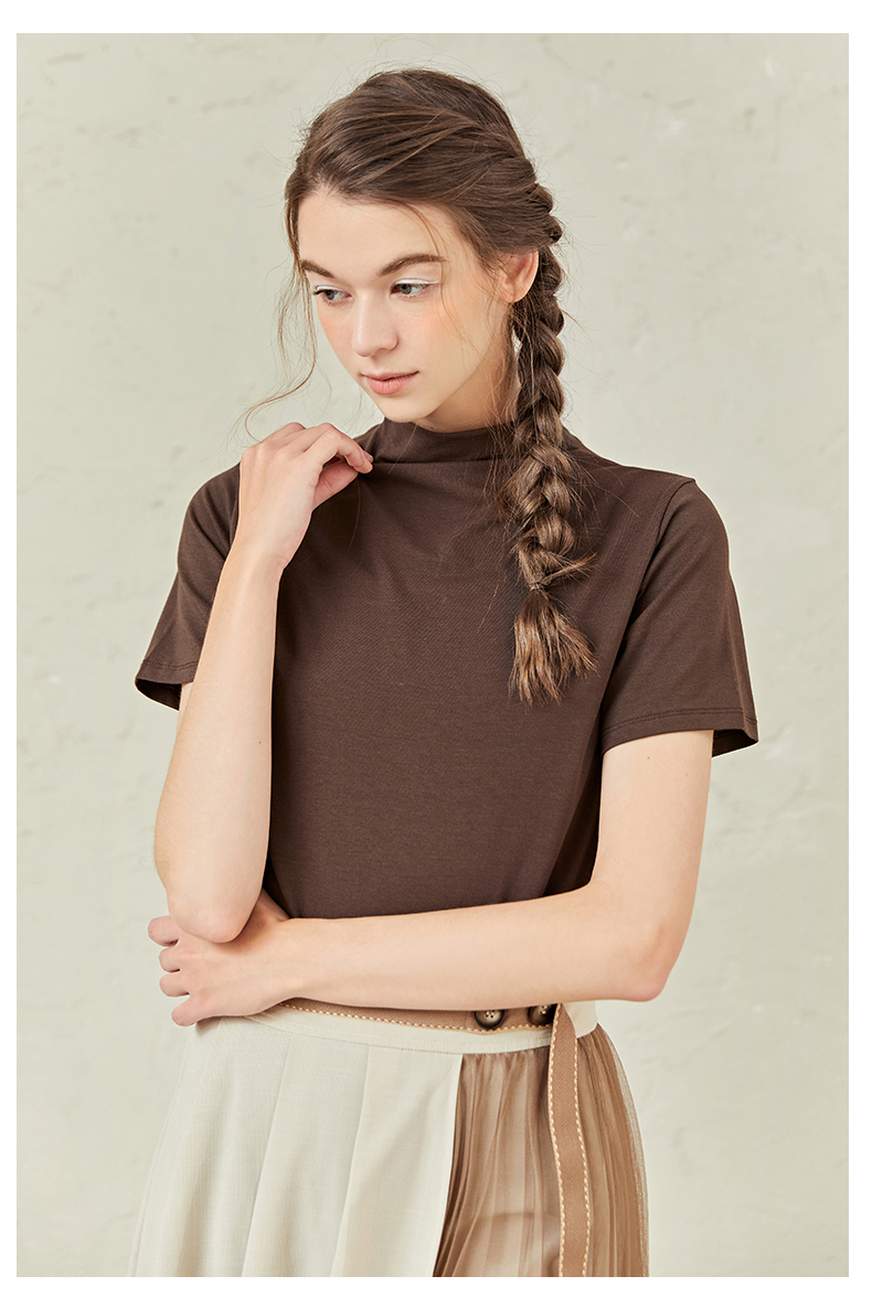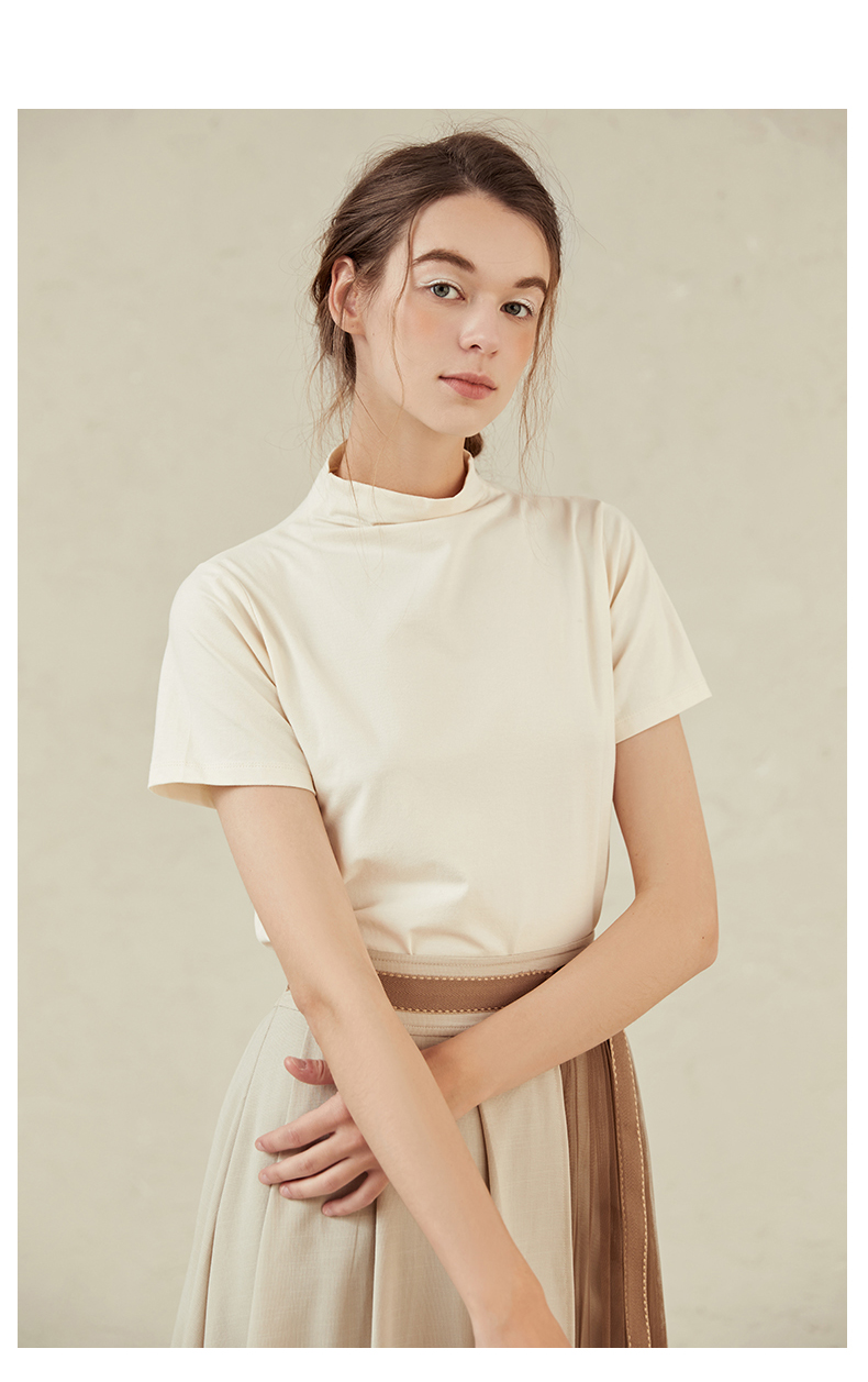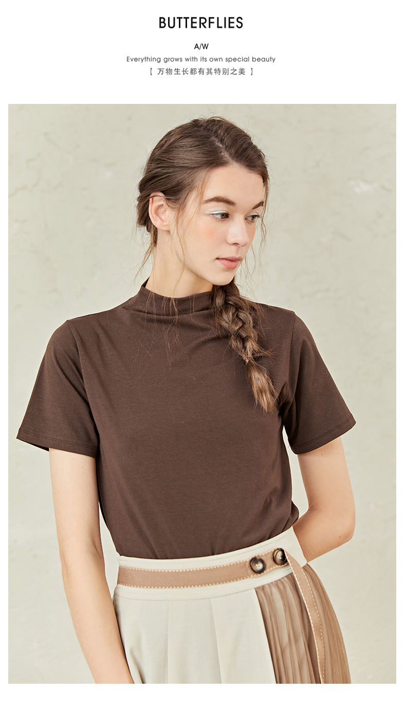 famecoco范可儿半高领打底衫女春内搭短袖t恤F221BB005