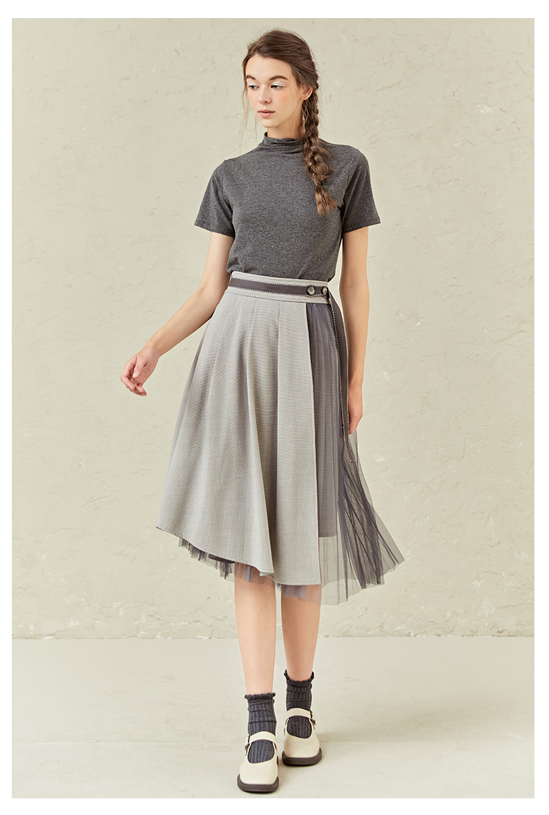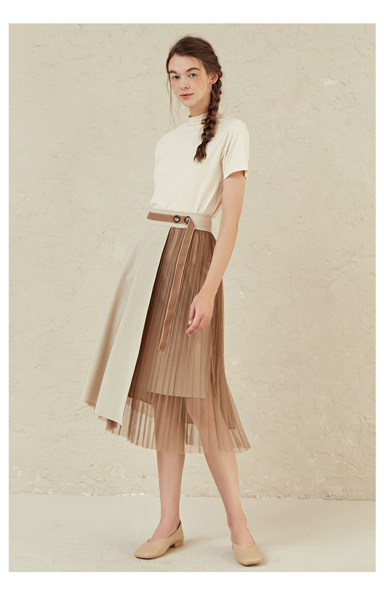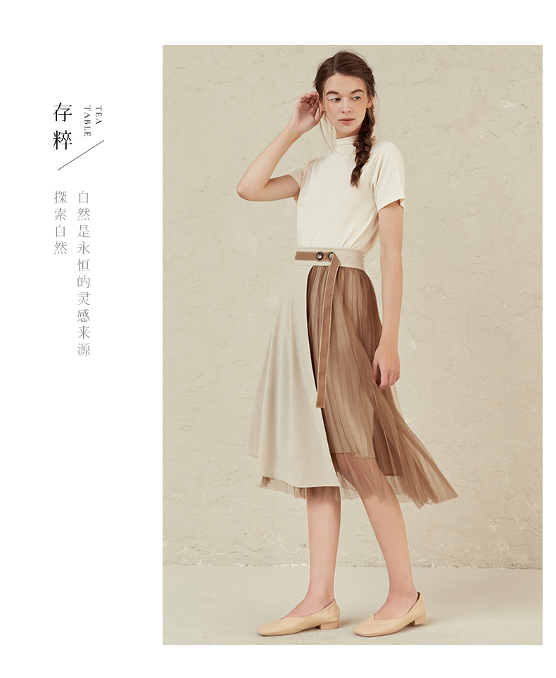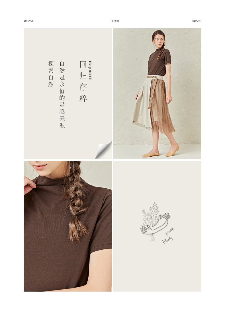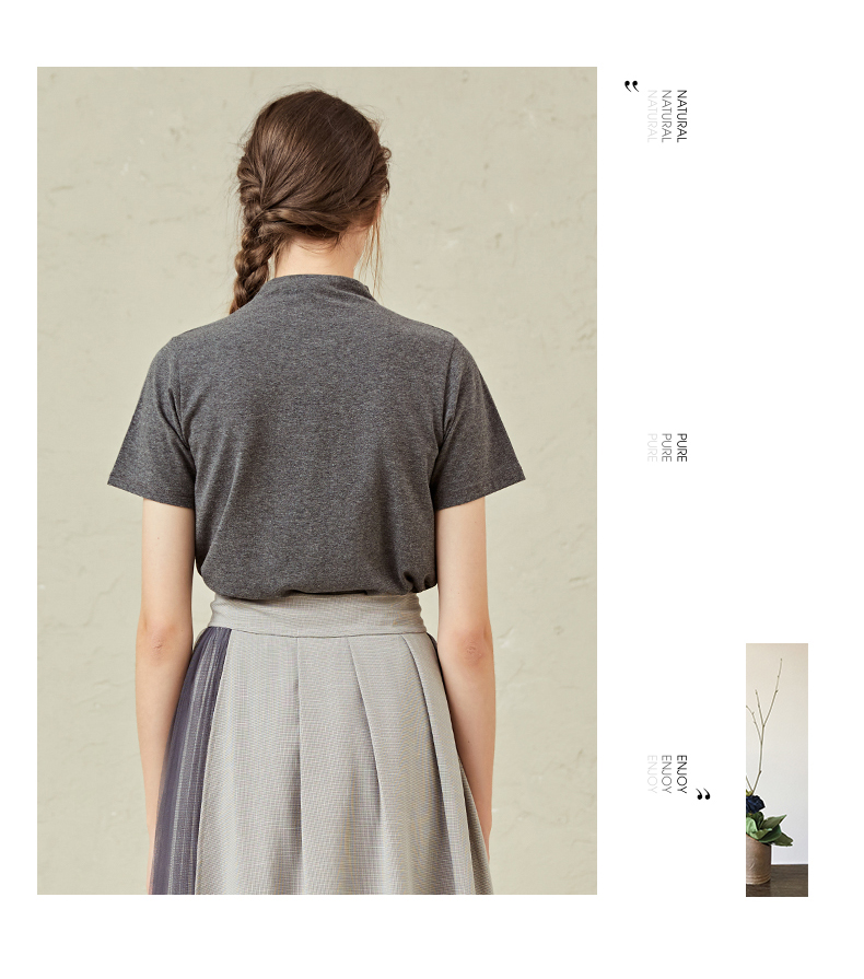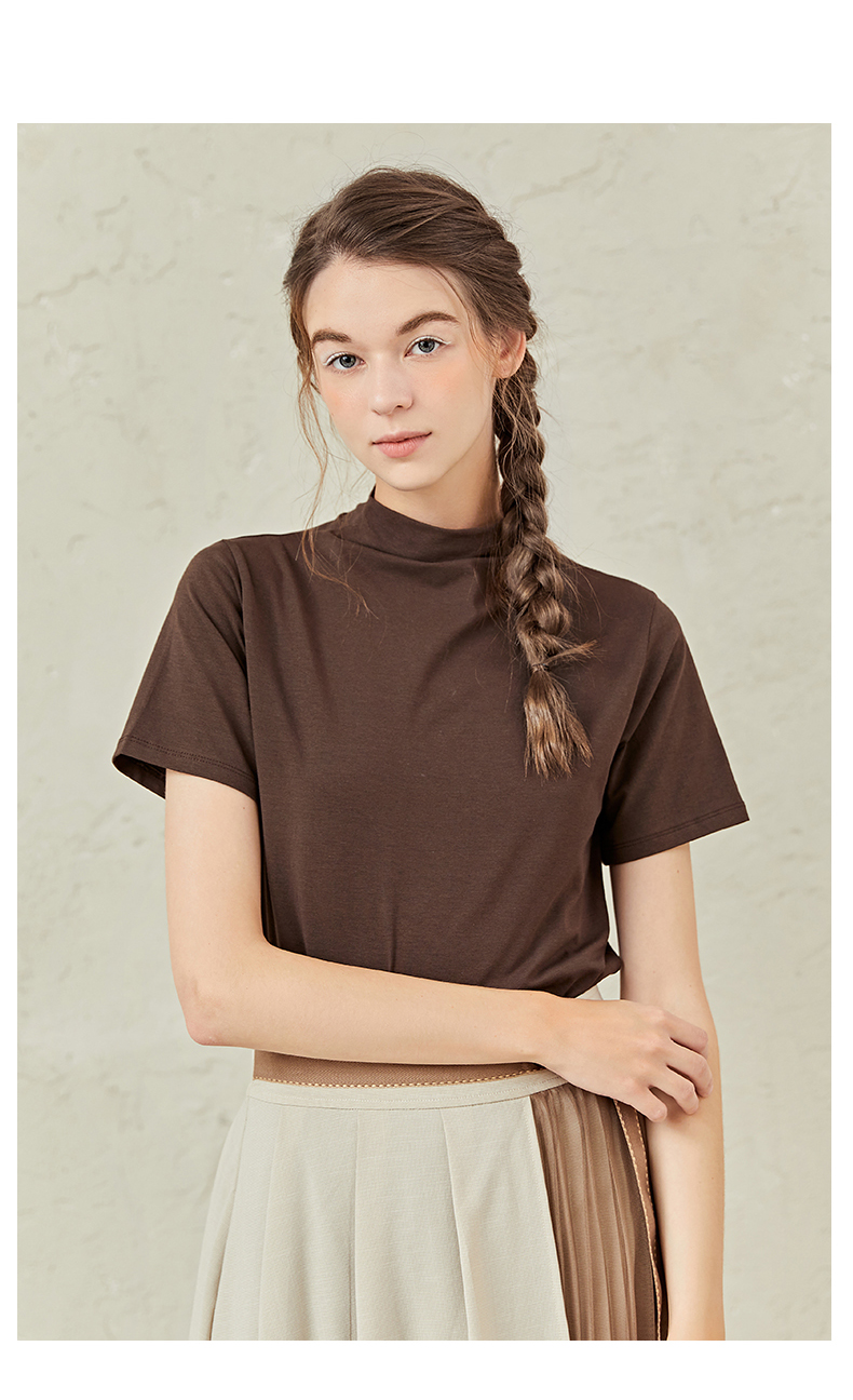 famecoco范可儿半高领打底衫女春内搭短袖t恤F221BB005