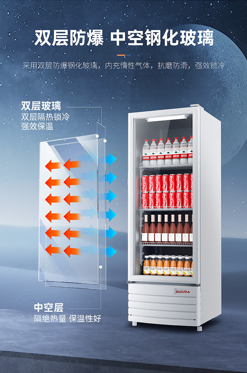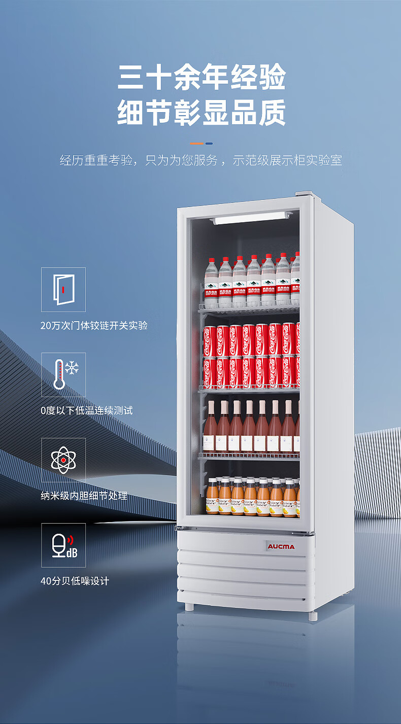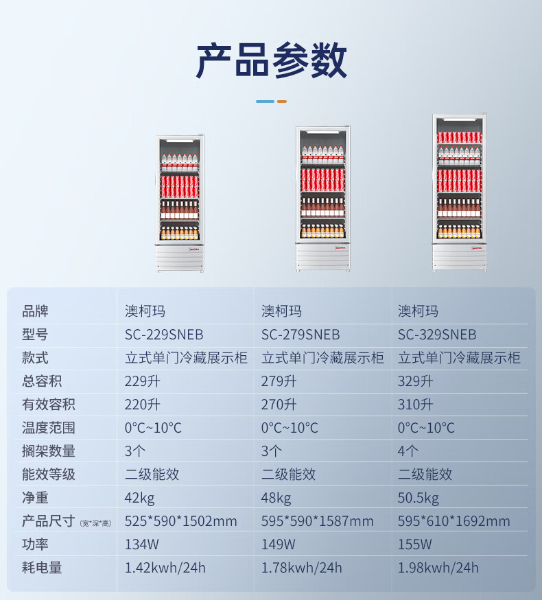 澳柯玛 229升 展示柜 冷藏保鲜柜 单门商用冰箱 饮料啤酒柜 立式冰柜冰吧 鲜花水果冷藏柜 SC-229SNEB