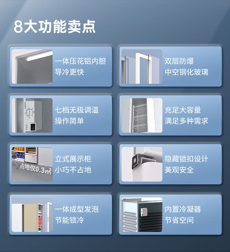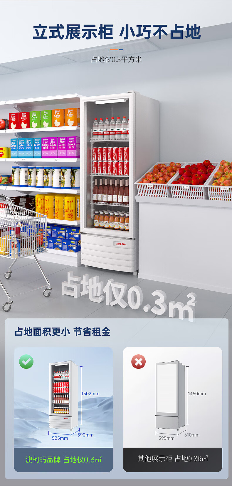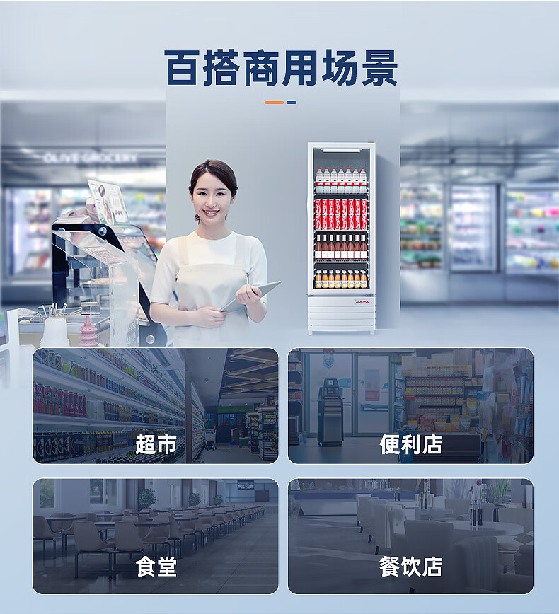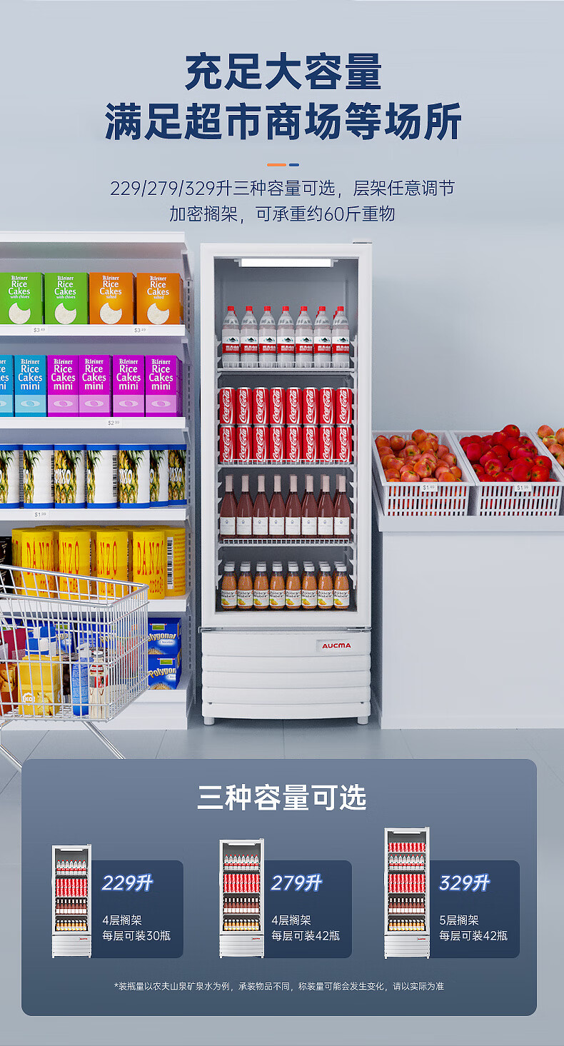 澳柯玛 229升 展示柜 冷藏保鲜柜 单门商用冰箱 饮料啤酒柜 立式冰柜冰吧 鲜花水果冷藏柜 SC-229SNEB