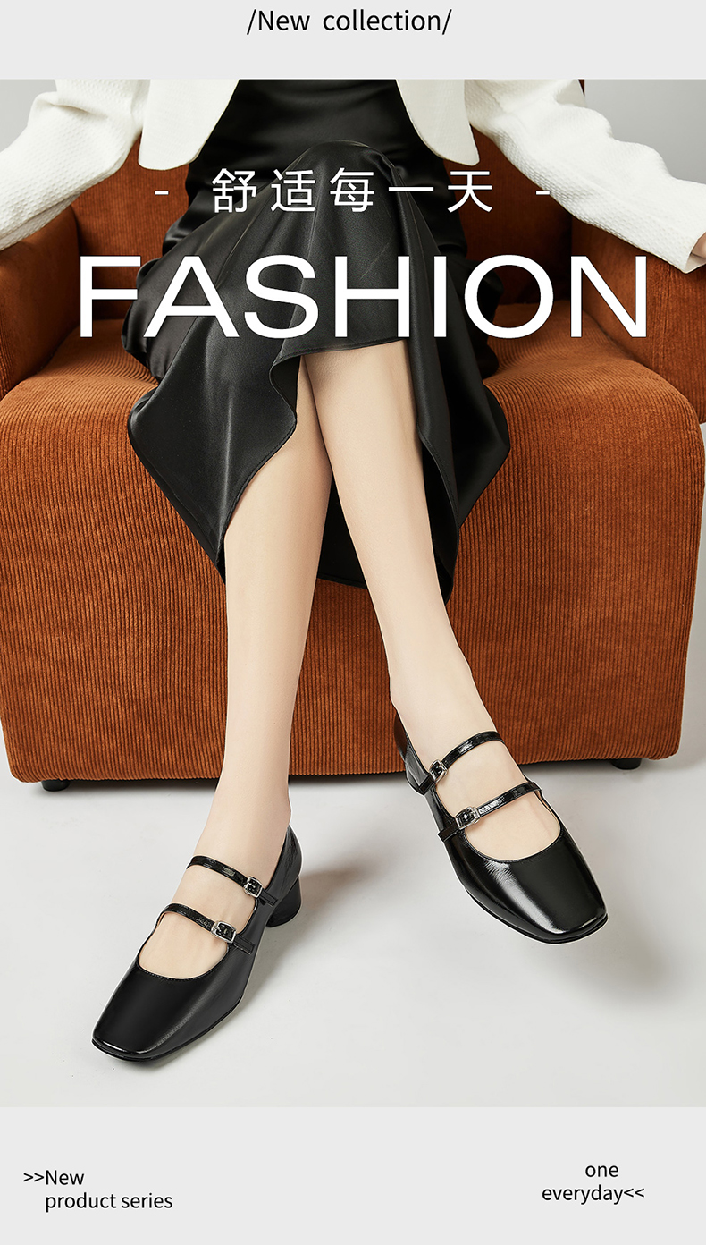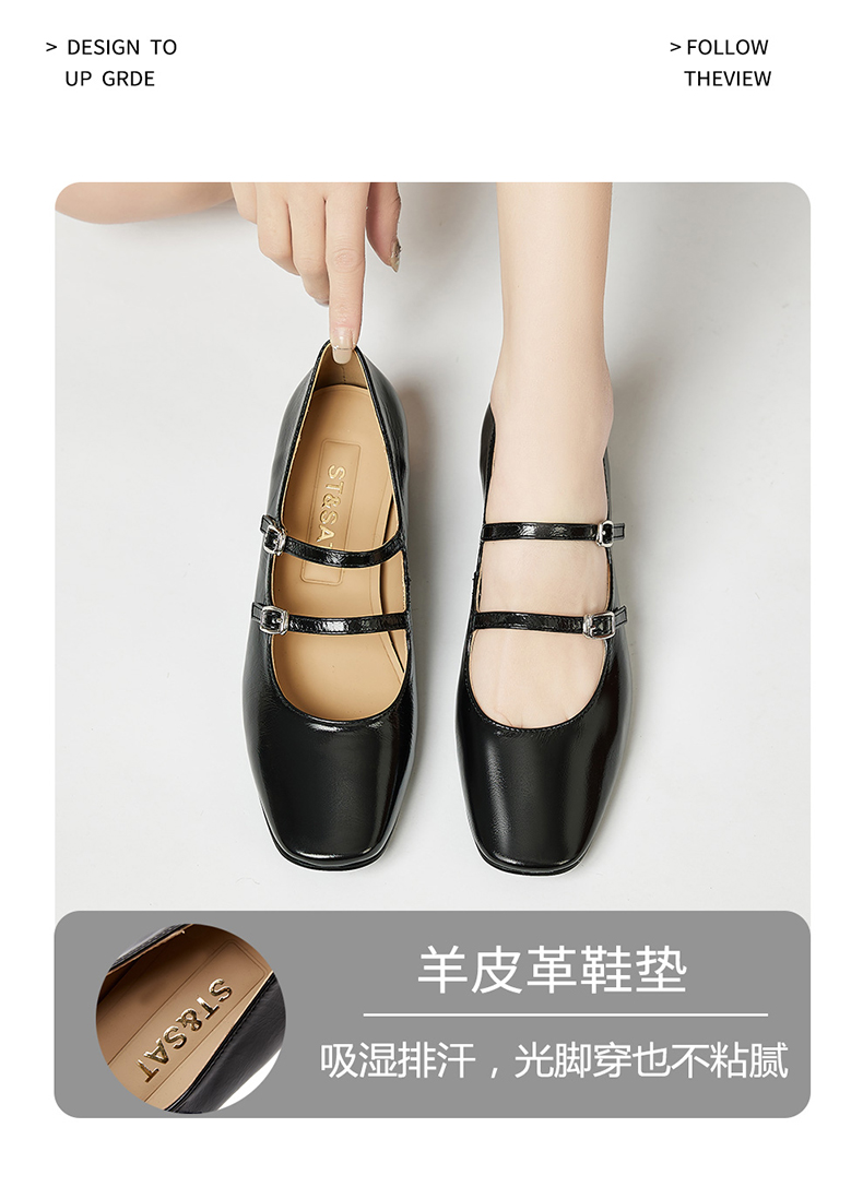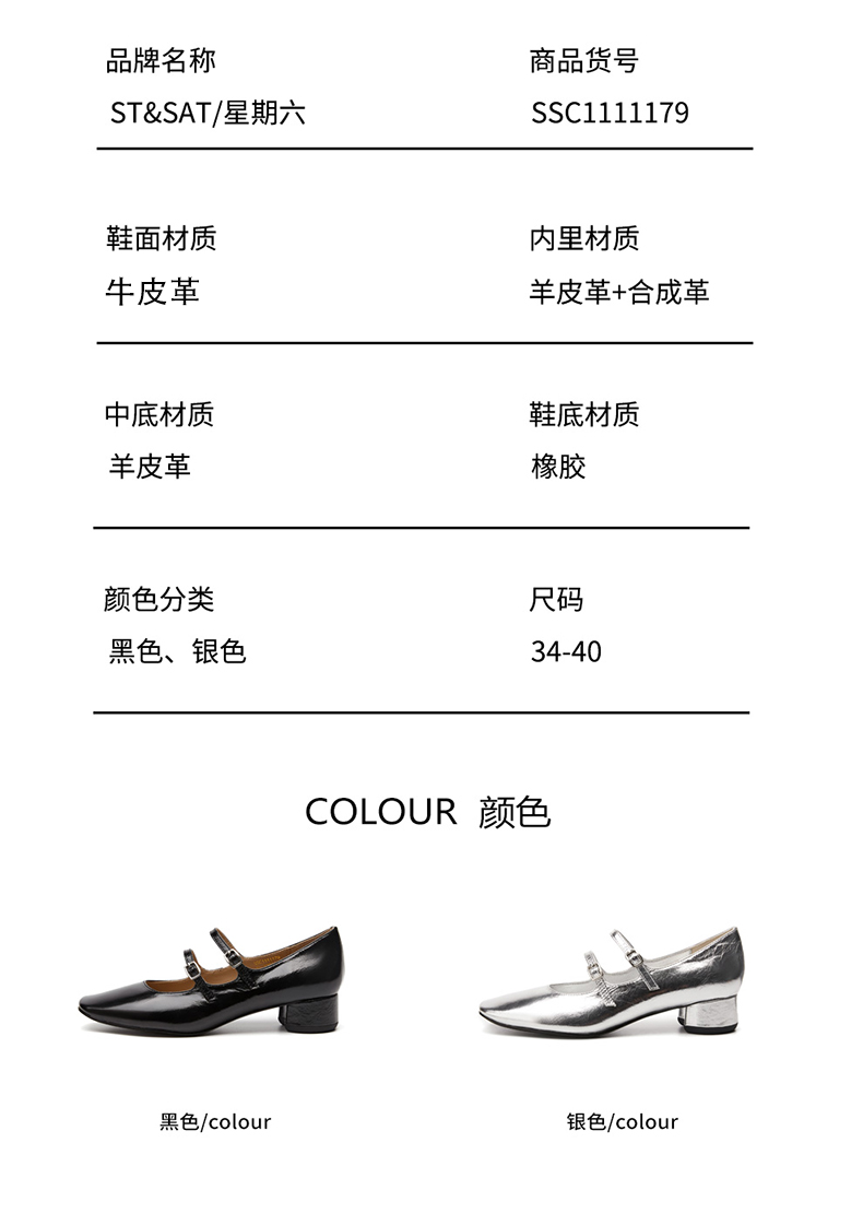 星期六时髦方头双条带粗跟玛丽珍SSC1111179