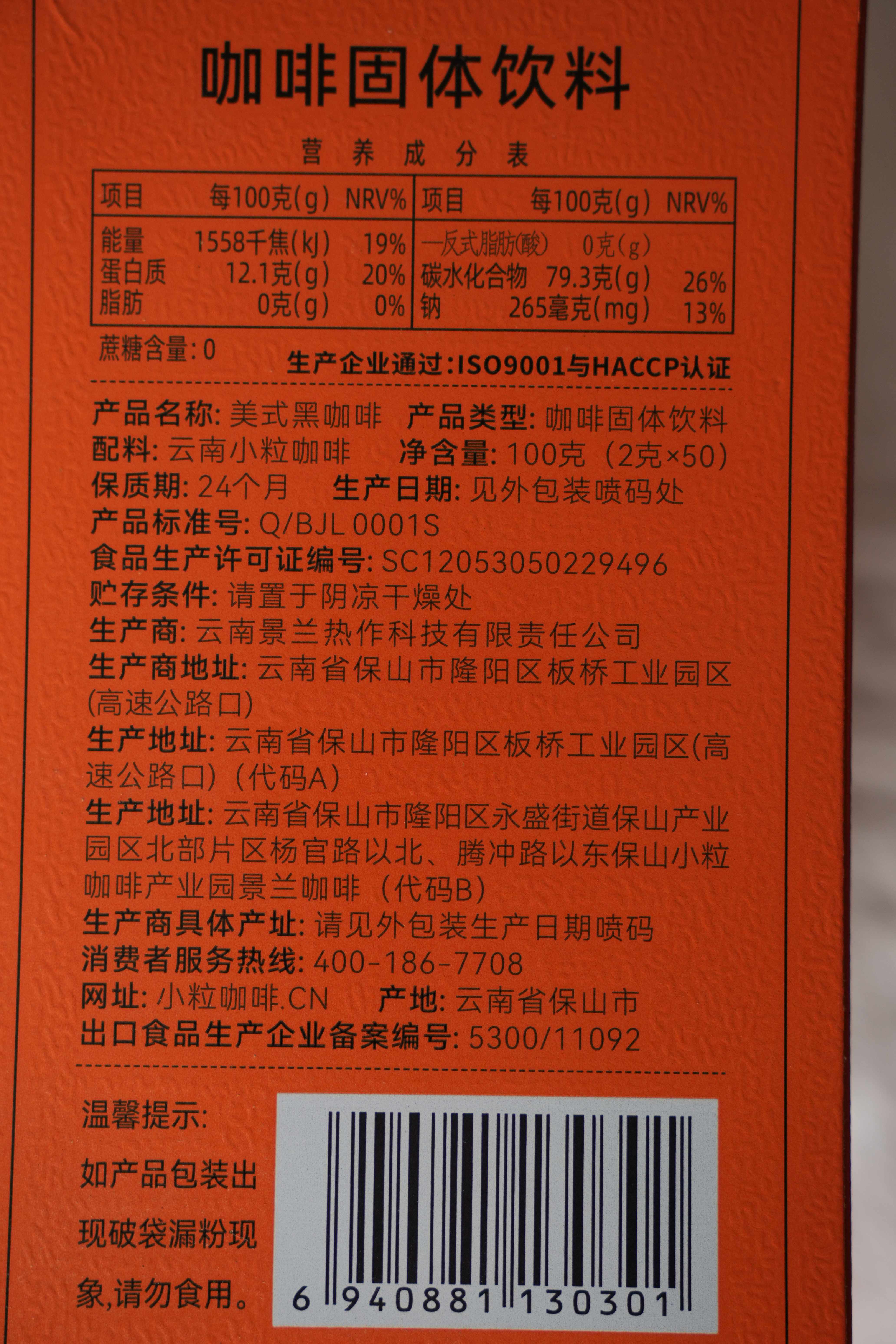 醇浓美式黑咖啡98%加强版2g/条,50条/盒