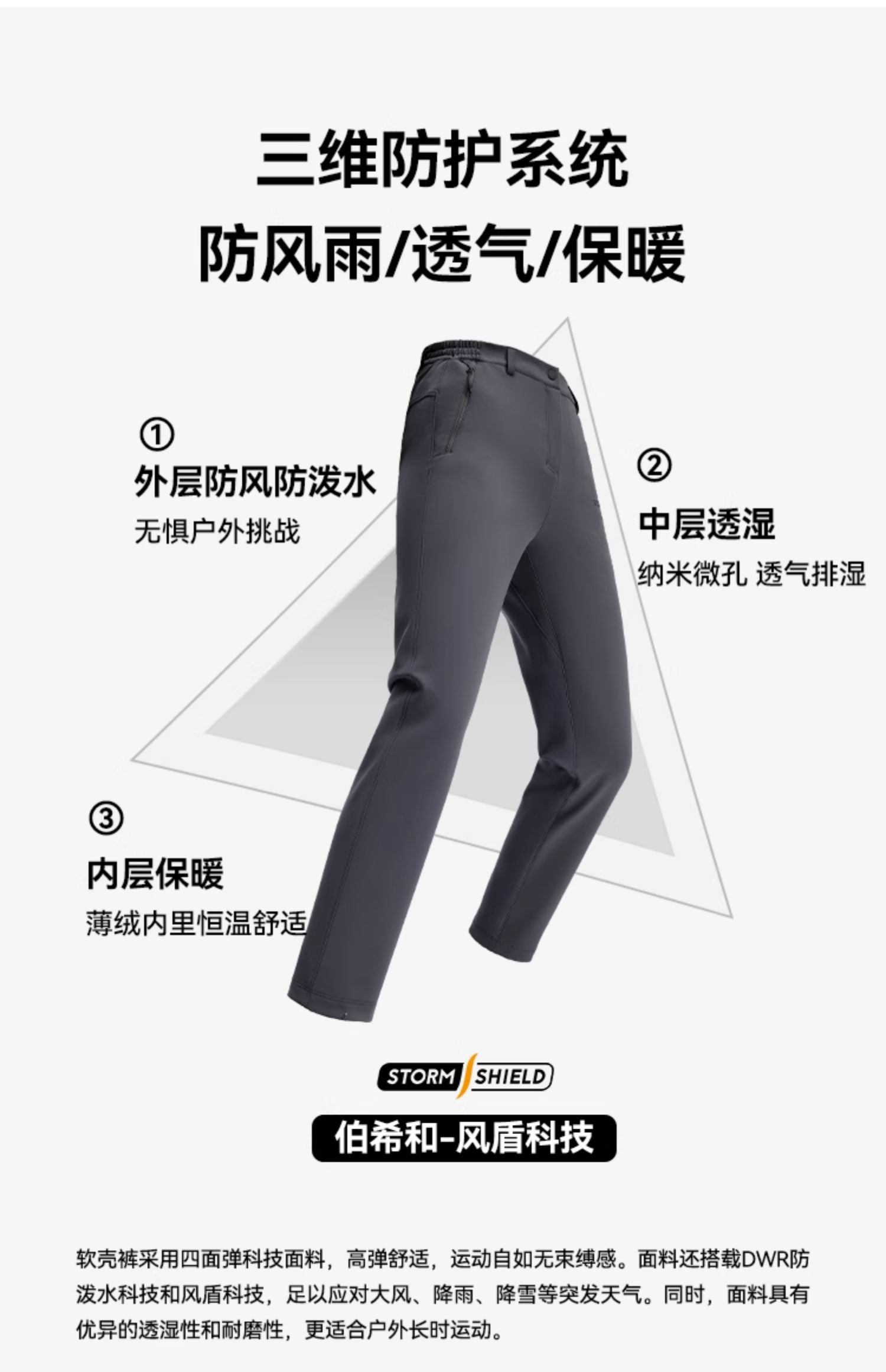伯希和户外软壳裤女新款运动外裤防风透气徒步登山裤修身休闲长裤