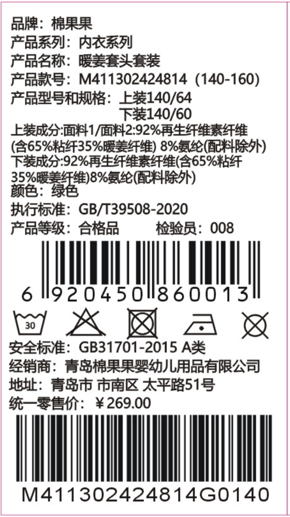 棉果果专柜同款冬季新品男童中大童大码暖姜套头套装M411302424814