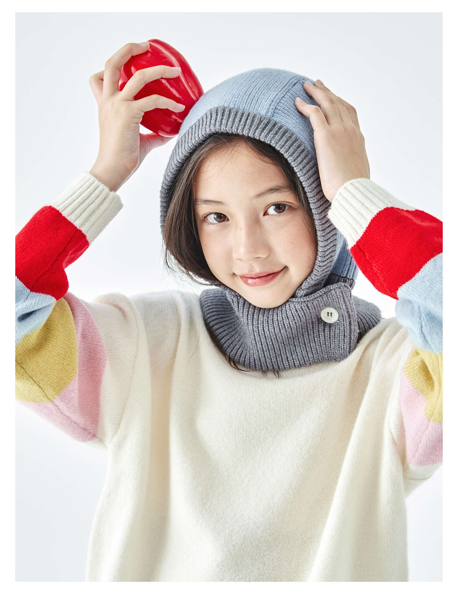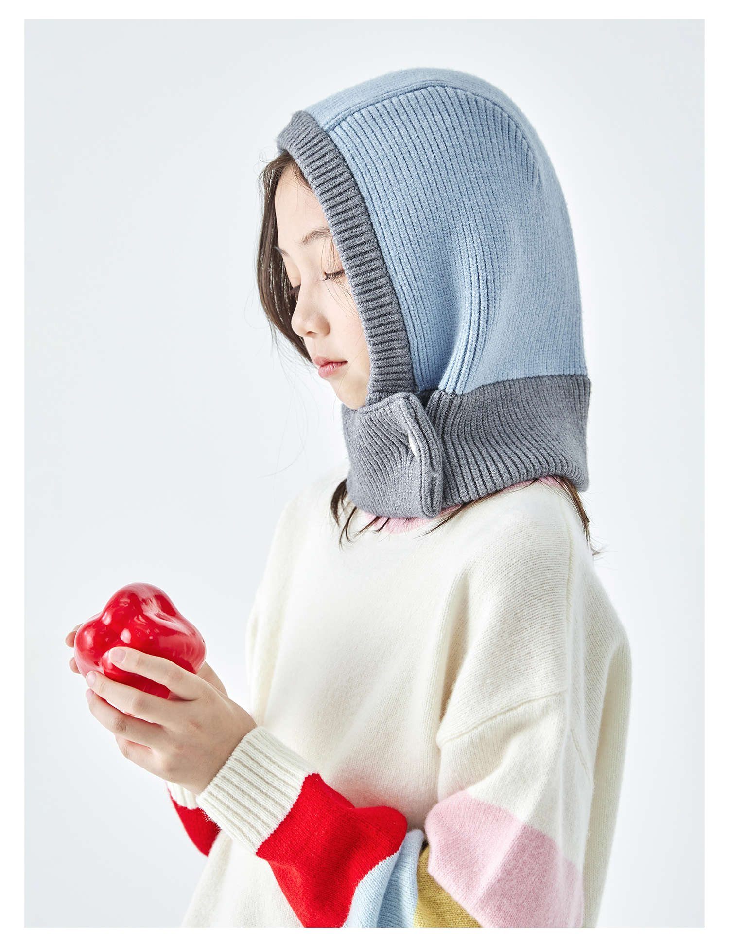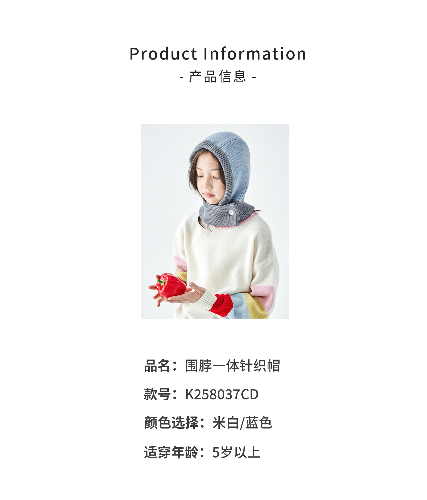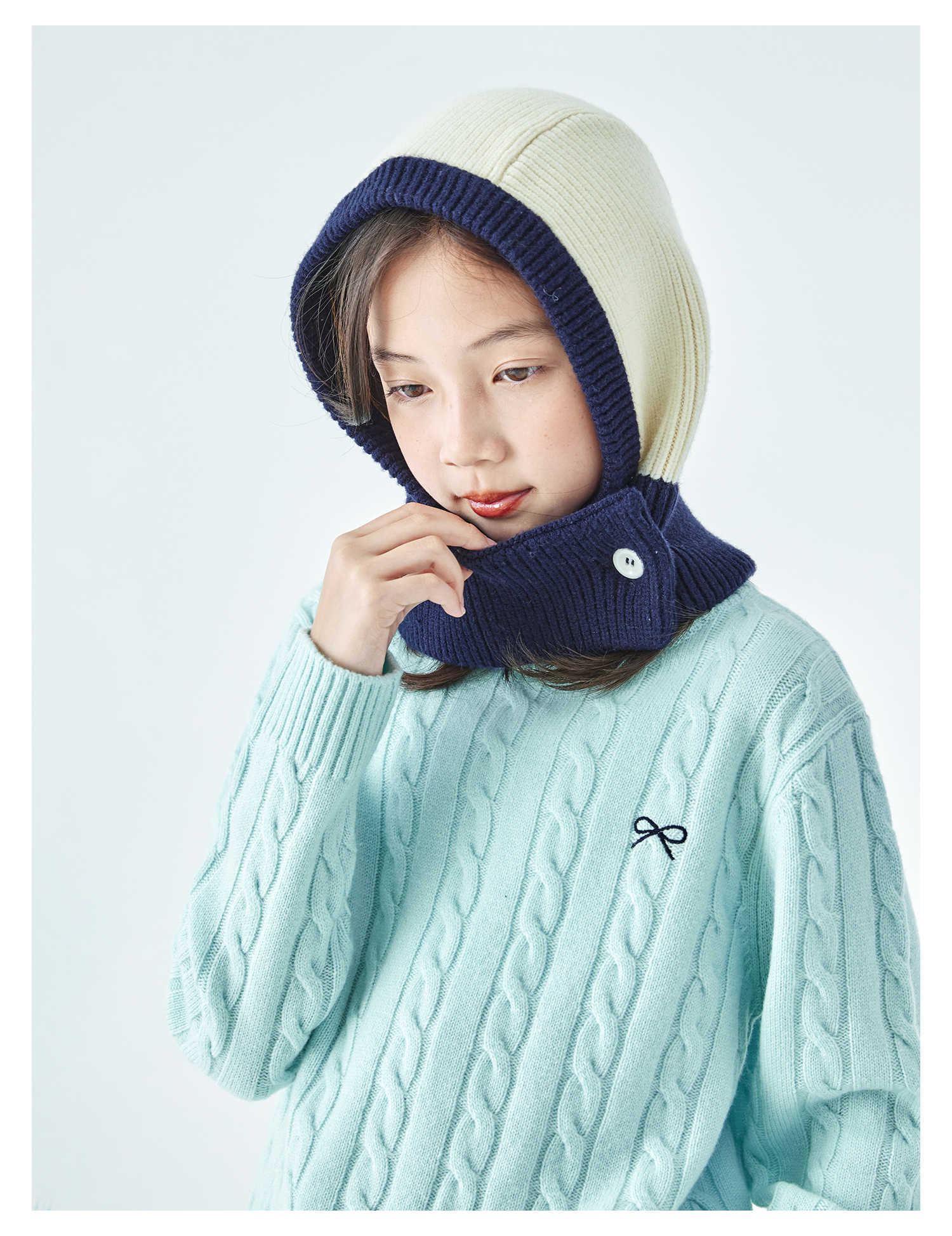 棵初2025年秋冬季新款亲子中大女童围脖一体针织帽亲肤柔软高弹帽