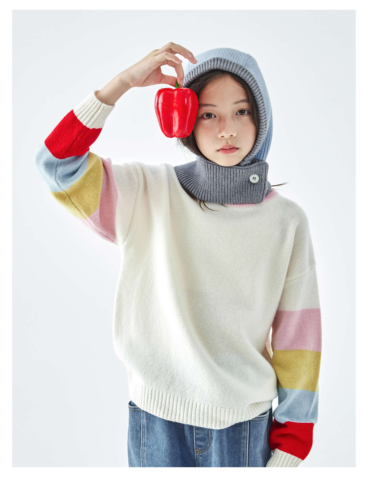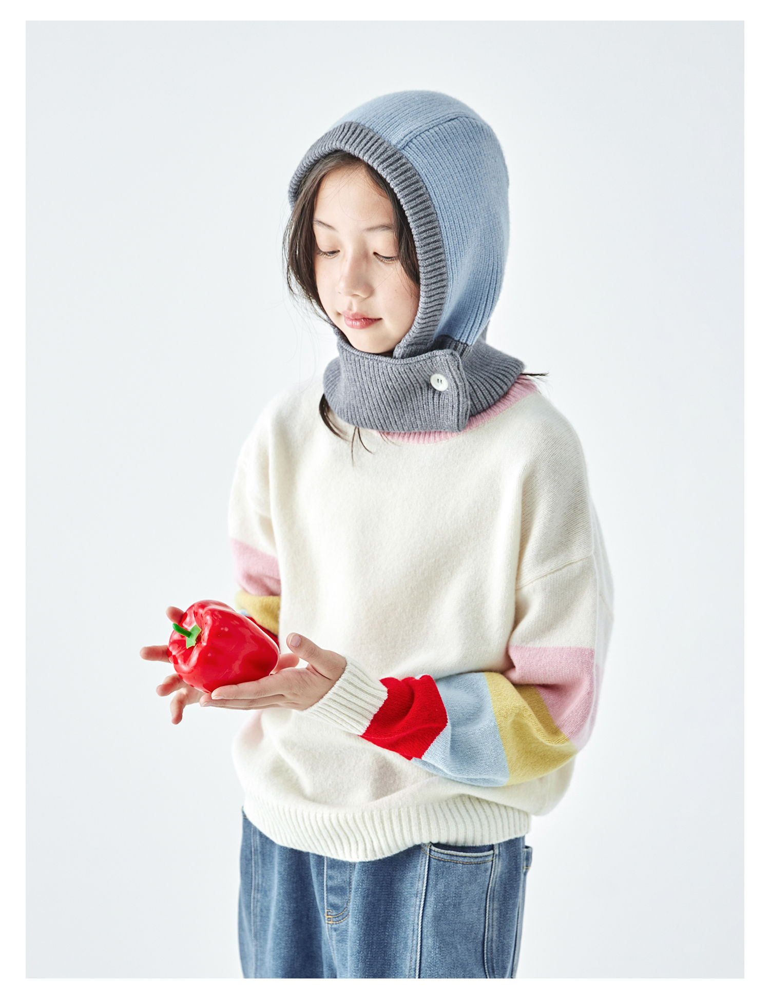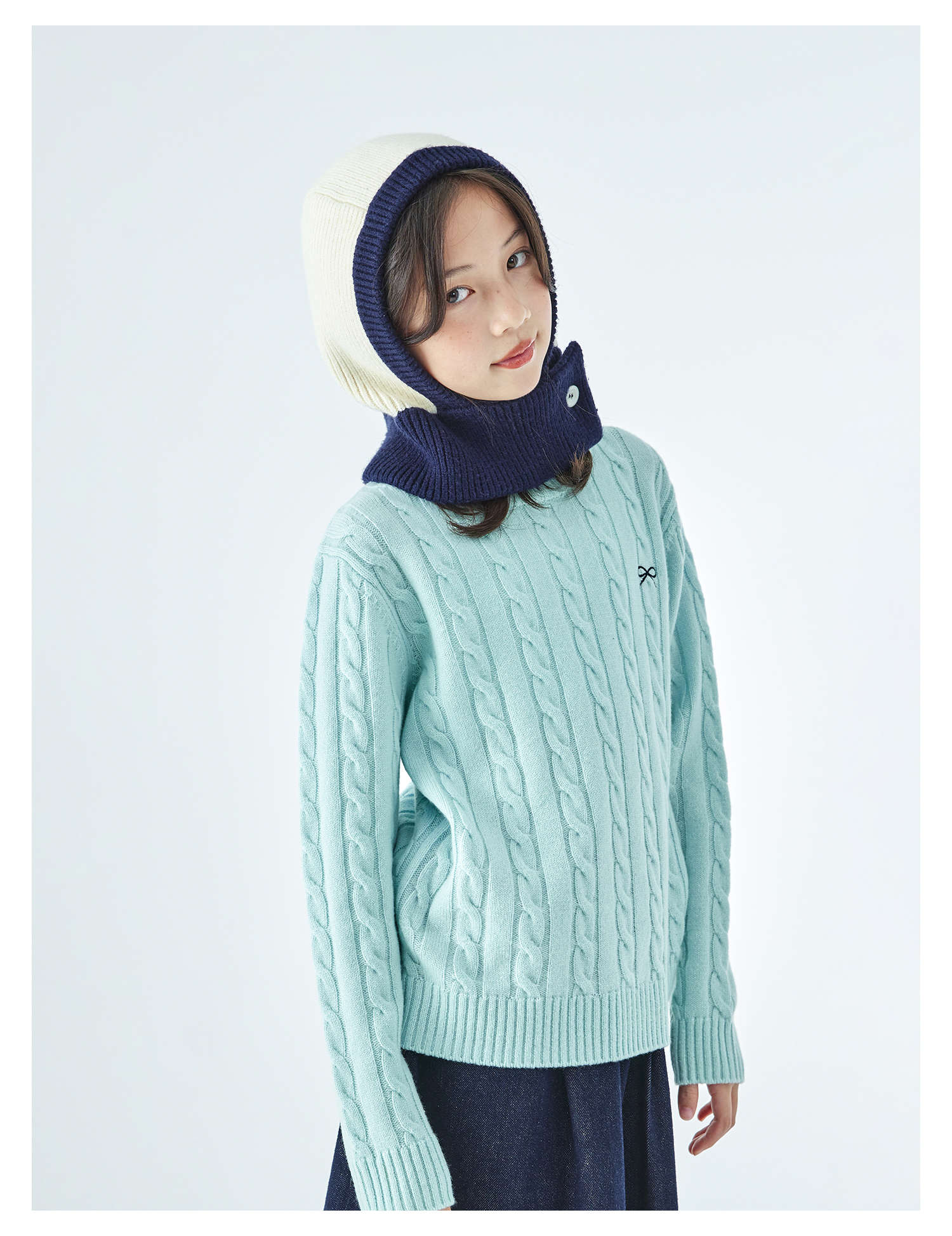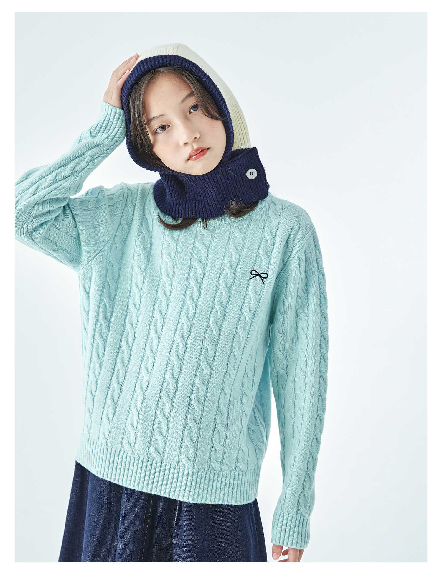 棵初2025年秋冬季新款亲子中大女童围脖一体针织帽亲肤柔软高弹帽