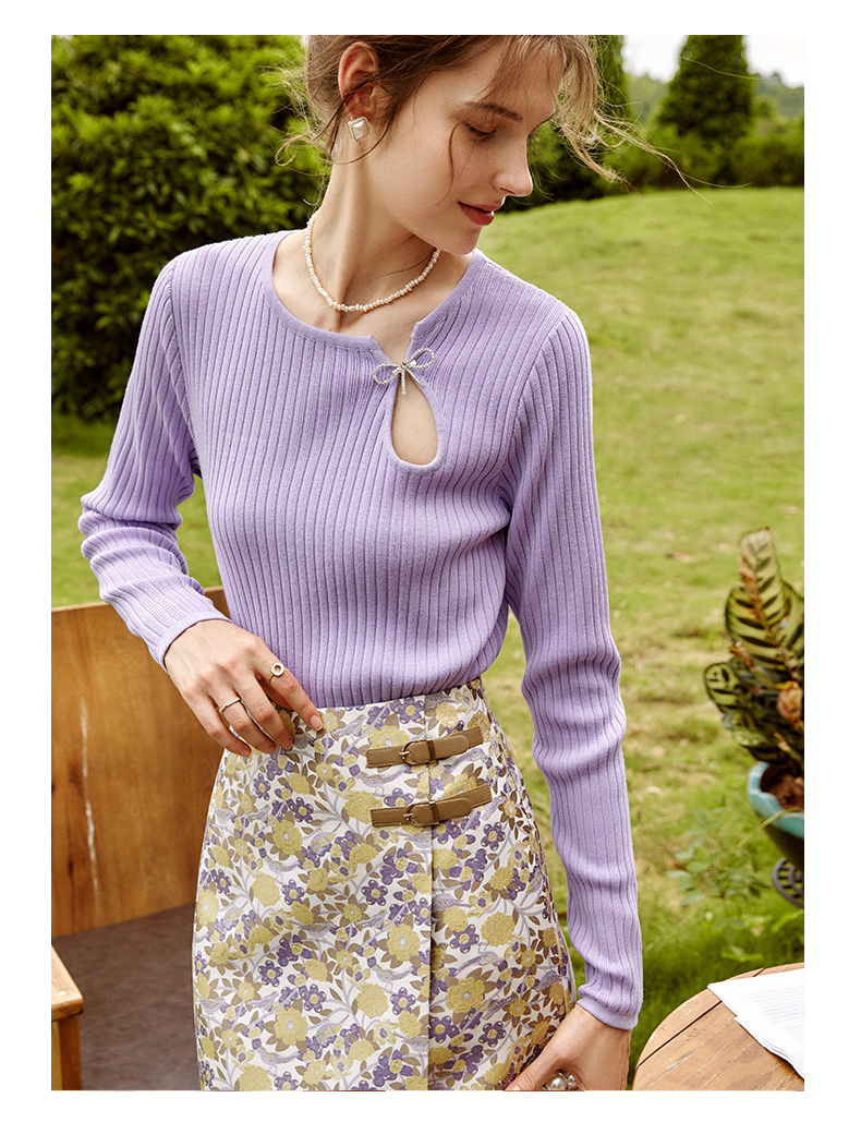欧芮儿短袖针织t恤女冰丝薄款条纹新款2021圆领休闲套头上衣