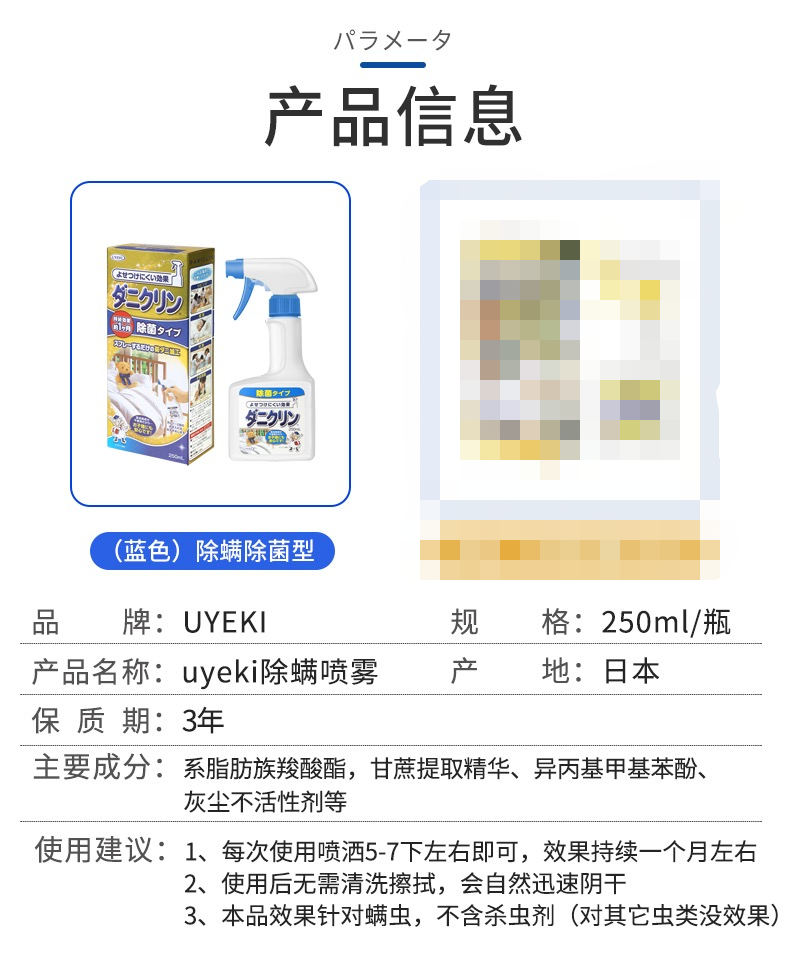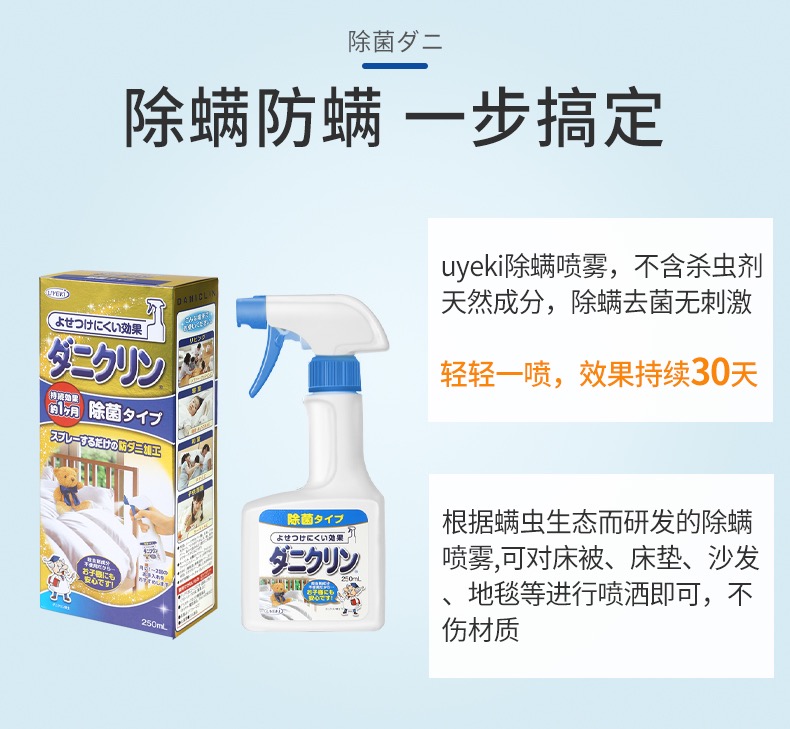 日本UYEKI除螨喷雾250ml 威奇家用去除螨虫喷雾剂床上被褥除菌杀菌神器免洗