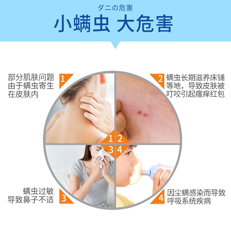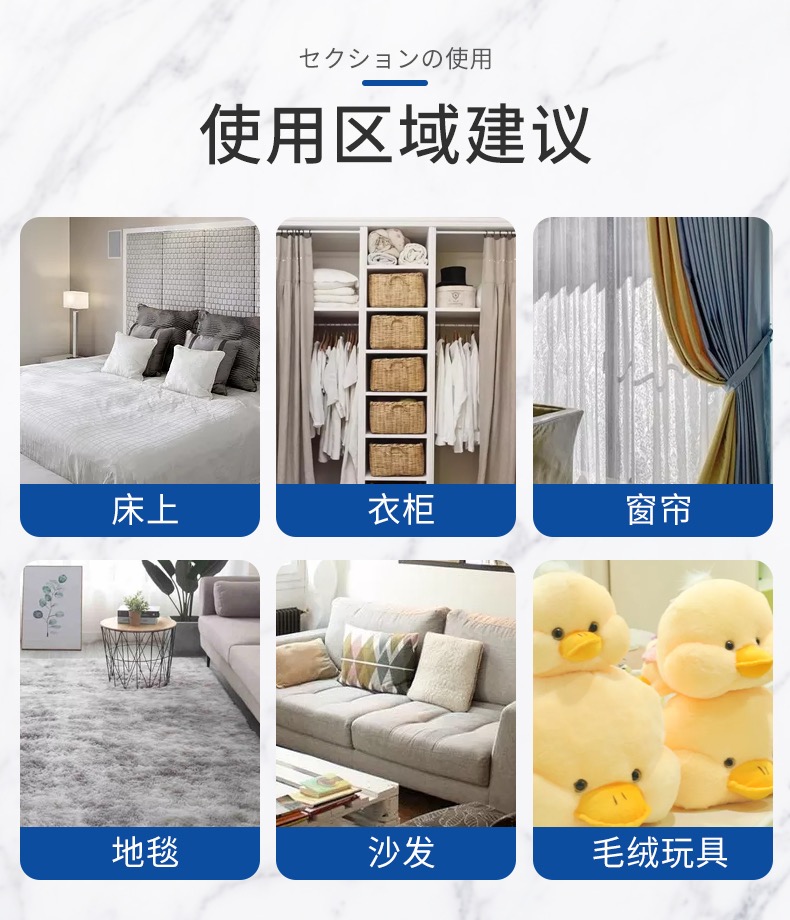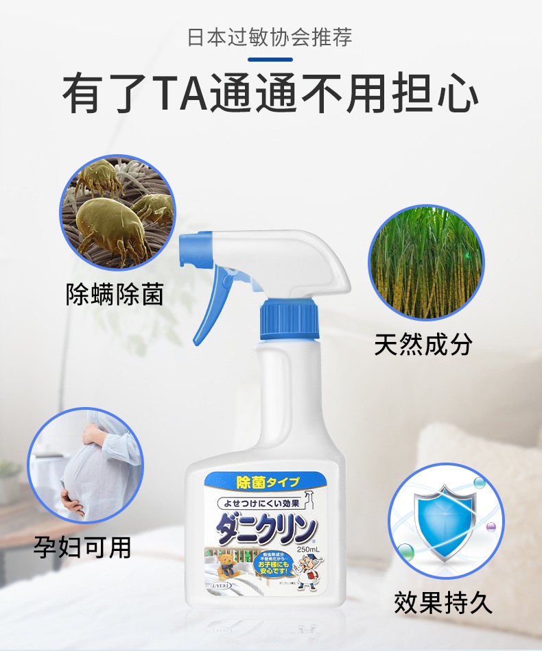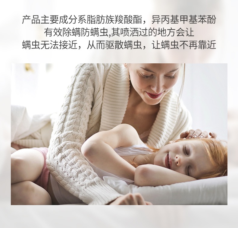 平时会喷在床垫枕芯被芯沙发衣橱等容易滋生螨虫的地方。