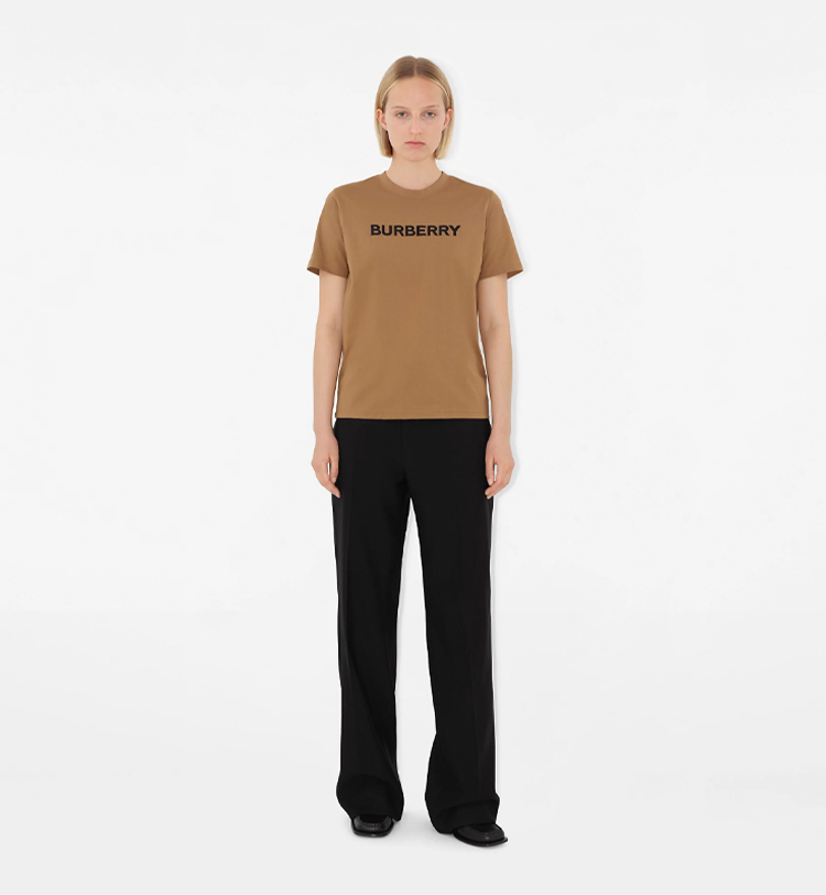 BURBERRY 巴宝莉 女士字母徽标印花棉质圆领短袖T恤 驼色 8080427 B4901