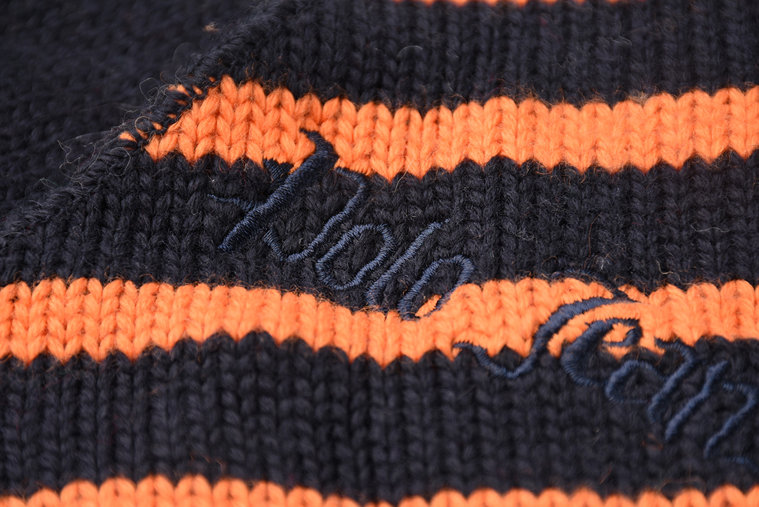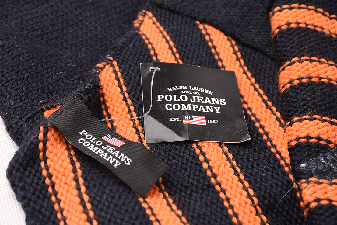美式休闲围巾。粗毛线条纹拼接针织。面料含30%羊毛保暖舒适。部分无洗标或剪标,随机发送。建议干洗或用羊毛制品洗涤剂!尺寸:长约145CM,宽约22CM