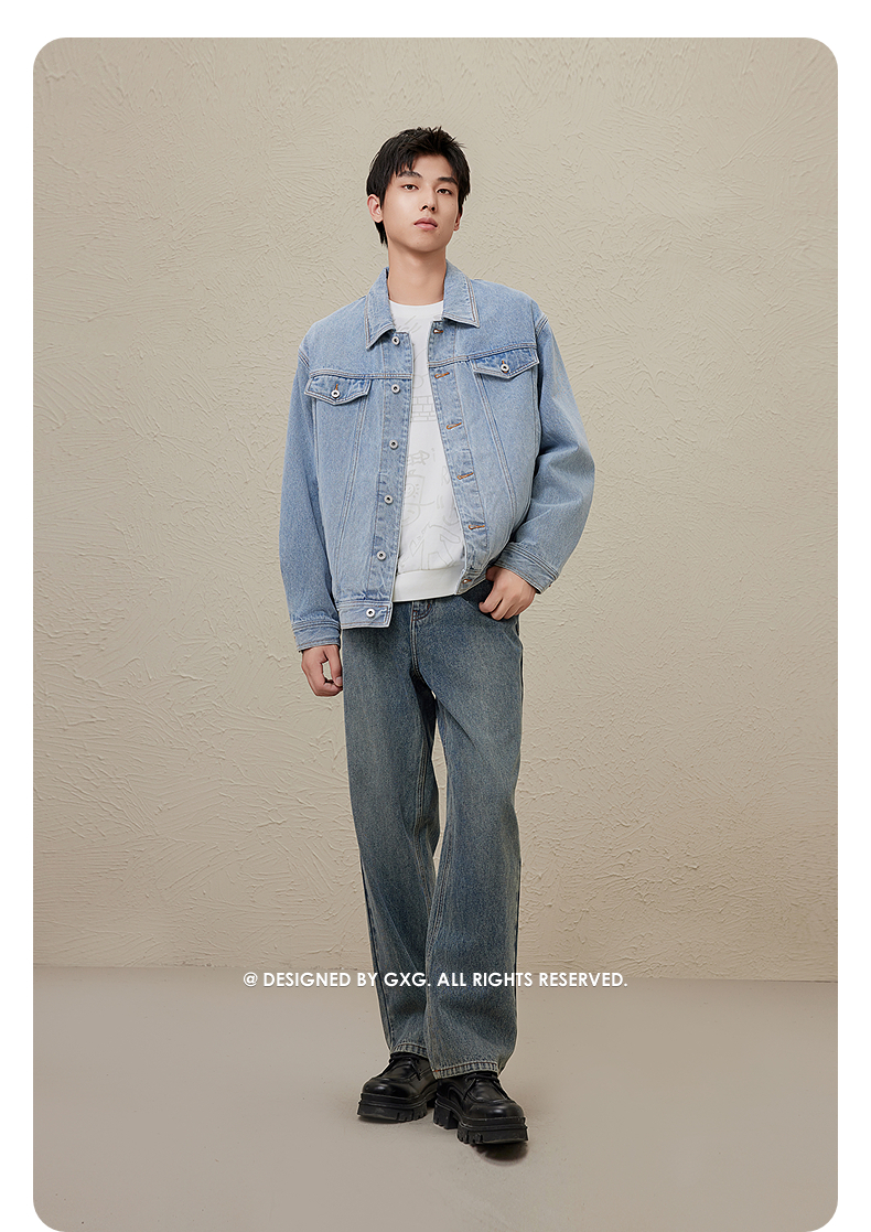 GXG男装 2024年秋季热卖GXG牛仔夹克男潮流宽松牛仔外套休闲夹克男