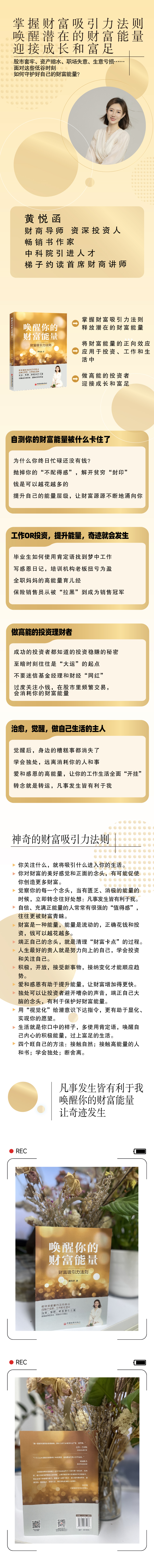 本书讲述了财富能量的正向效应,通过不同人生场景,如毕业生、培训机构老板、保险销售、打工族、宝妈、股民基民等,展示了财富能量的作用,帮助读者将其应用于工作和投资中,形成正确的财富观和健康的心态,不断积累正能量和正向情绪,收获物质财富、健康和爱,实现个人财富多元化增长,从而经营好自己的人生。 本书提供情绪安抚和精神动力及实操方法,例如积极,开放,接受新事物,在逆境中转念,接纳变化才能顺应趋势,让读者受到鼓励,建设强大的自我,产生正念正能量,来不断吸引和积累财富,迎接成长和富足。