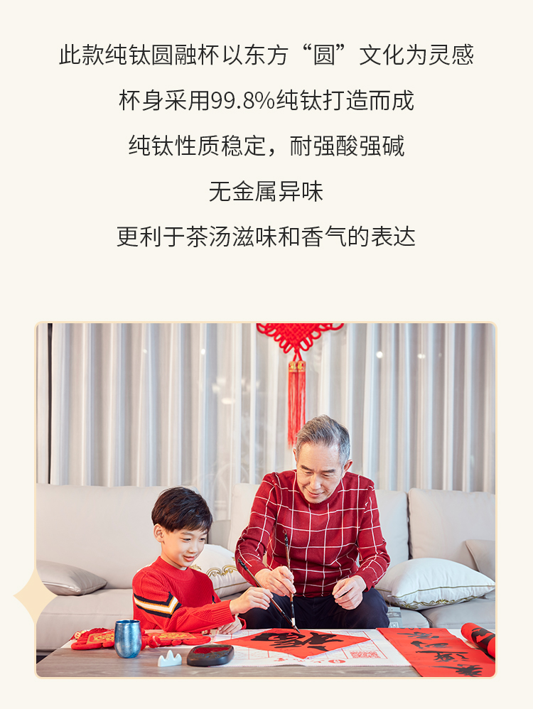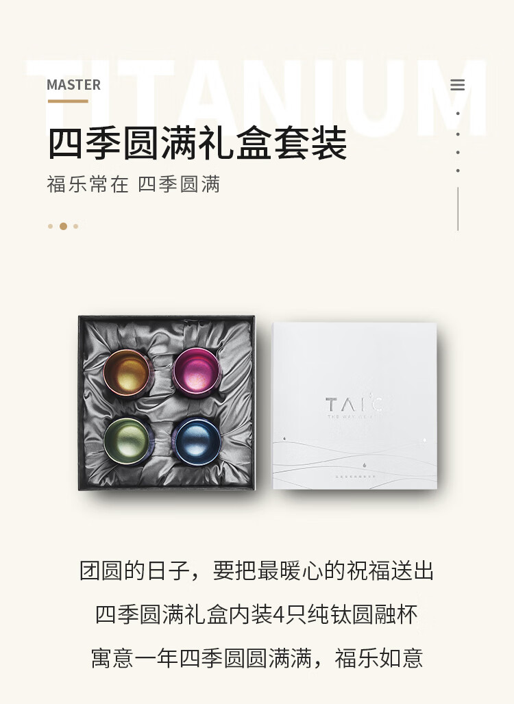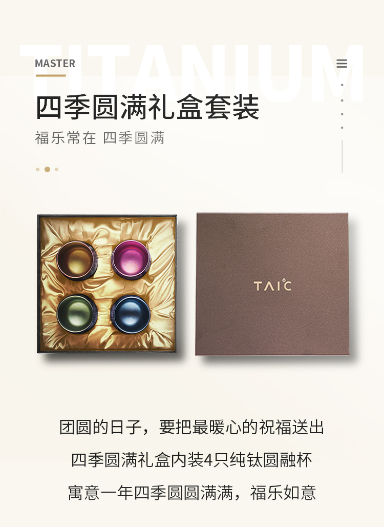 TAIC太可纯钛双层真空圆融杯4个套装定制刻字办公迷你小巧便携 四季圆满