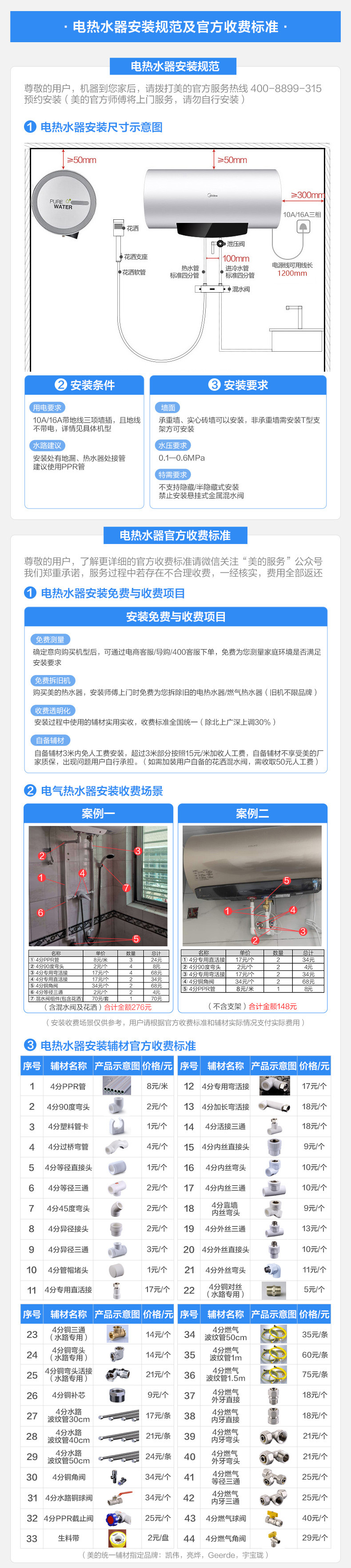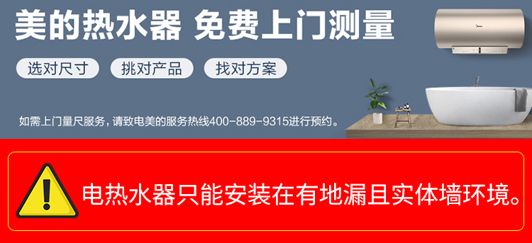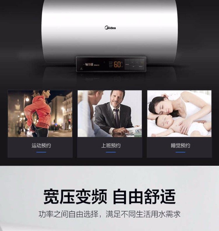 美的(Midea)电热水器F60-22DE5(HEY) 漏电断电 2200W变频速热 一级能效预约洗 一键节能60升