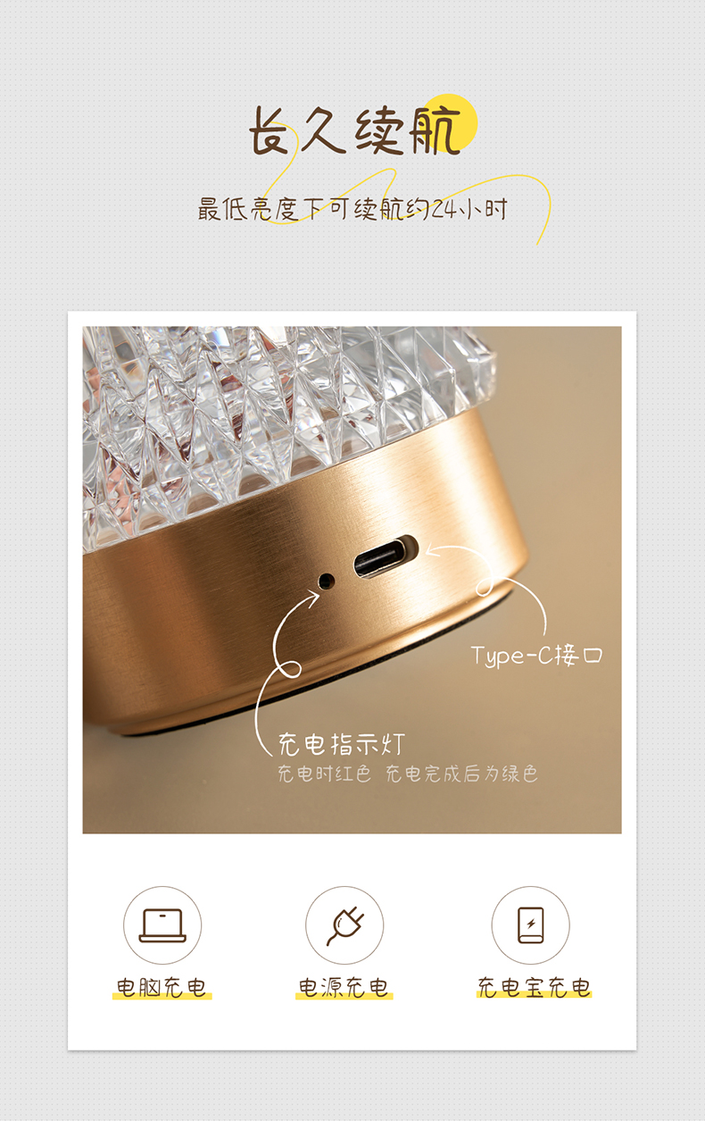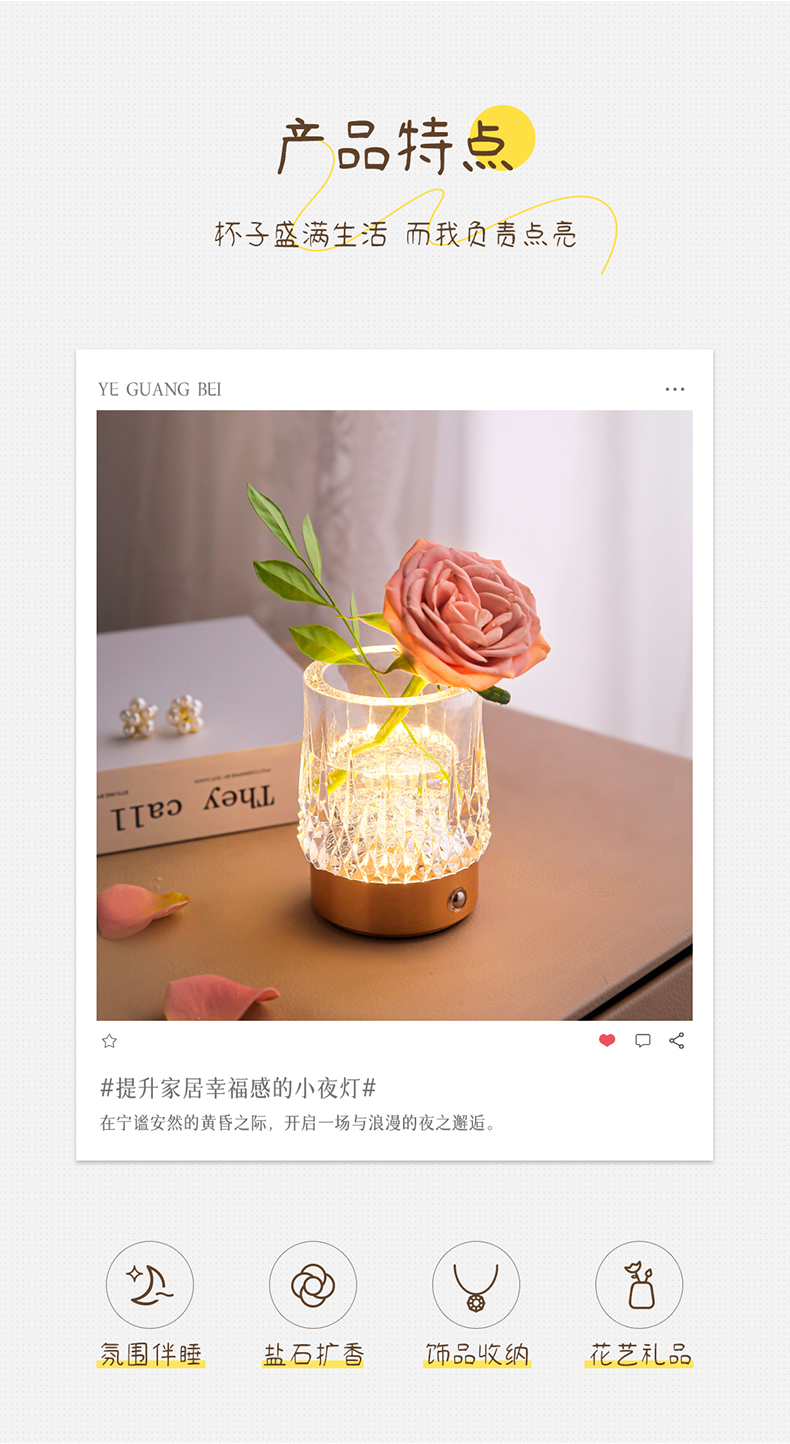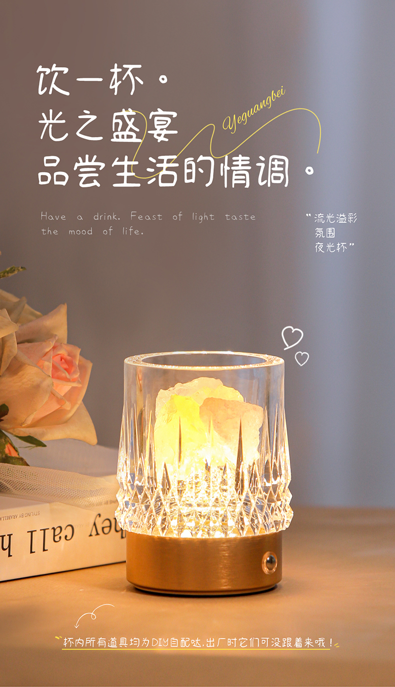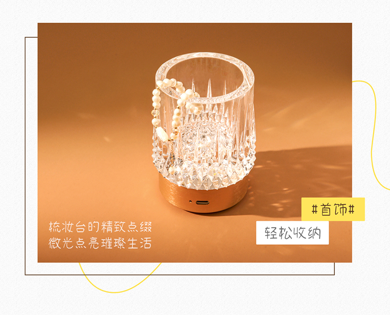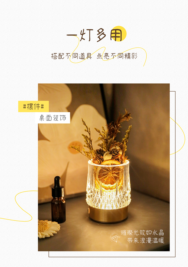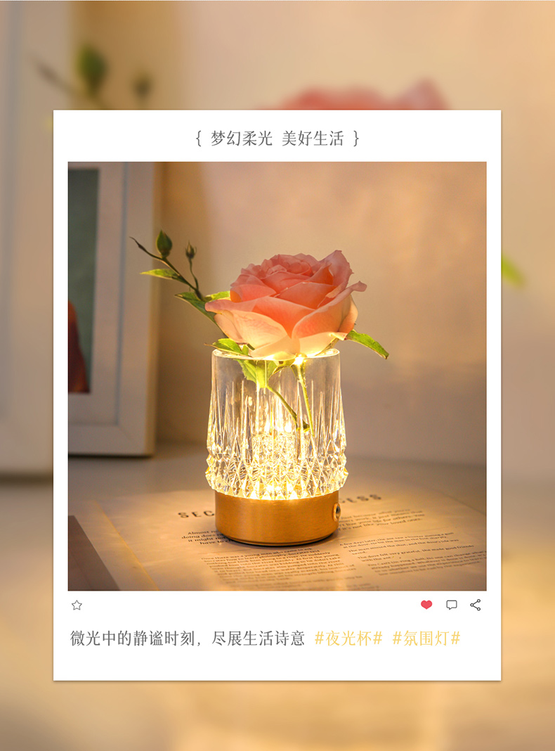 欧普(OPPLE)夜光杯·充电小夜灯收纳香薰水晶床头灯花瓶装饰摆件ins