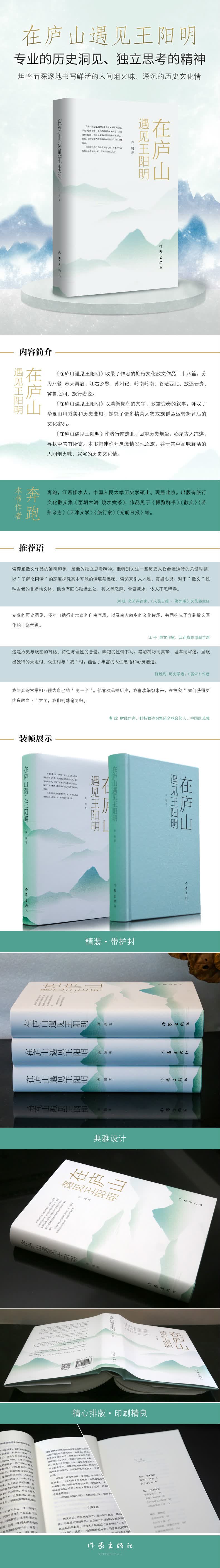 《在庐山遇见王阳明》以清新隽永的文字、多重变奏的叙事,咏叹了华夏山川秀美和历史变幻,探究了诸多精英人物或族群命运转折背后的文化密码。