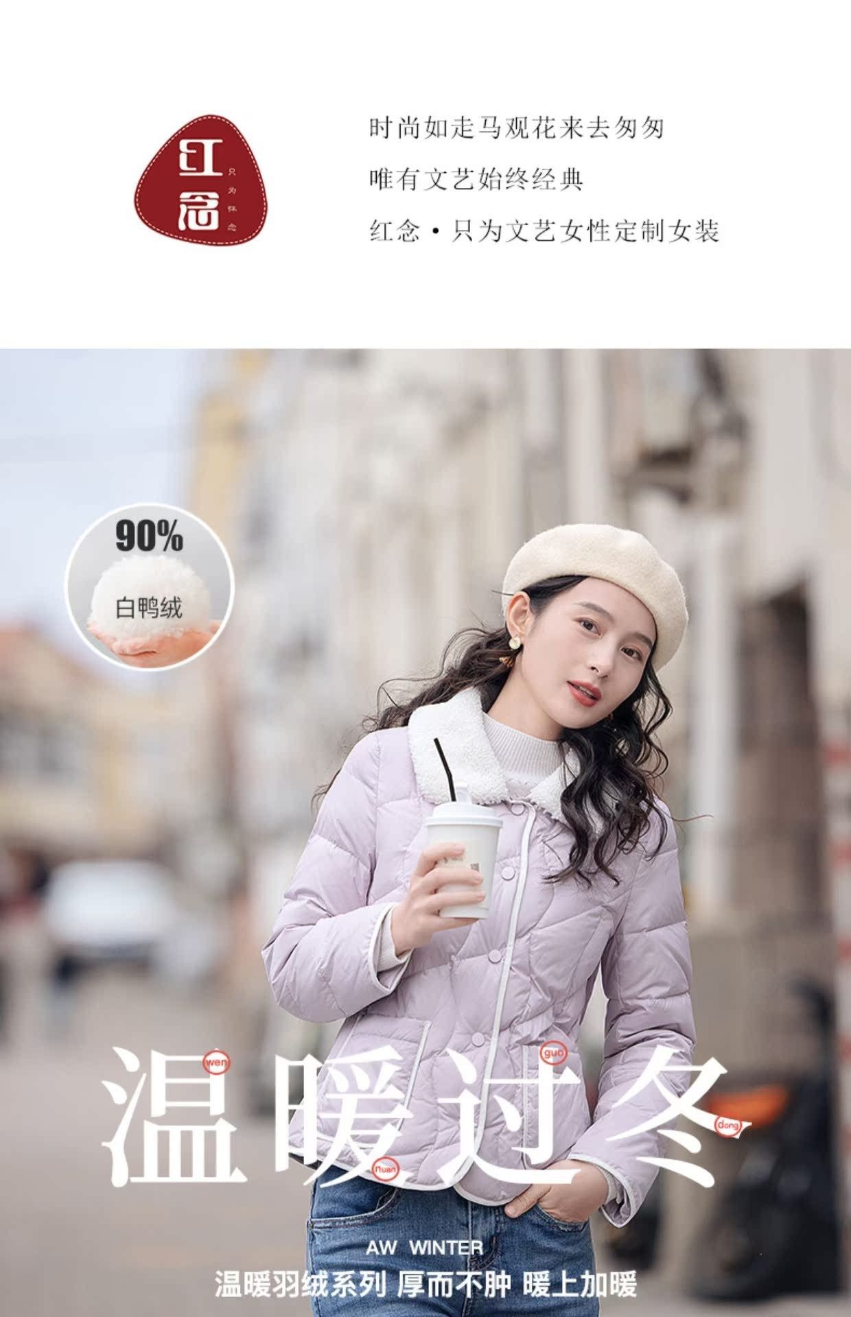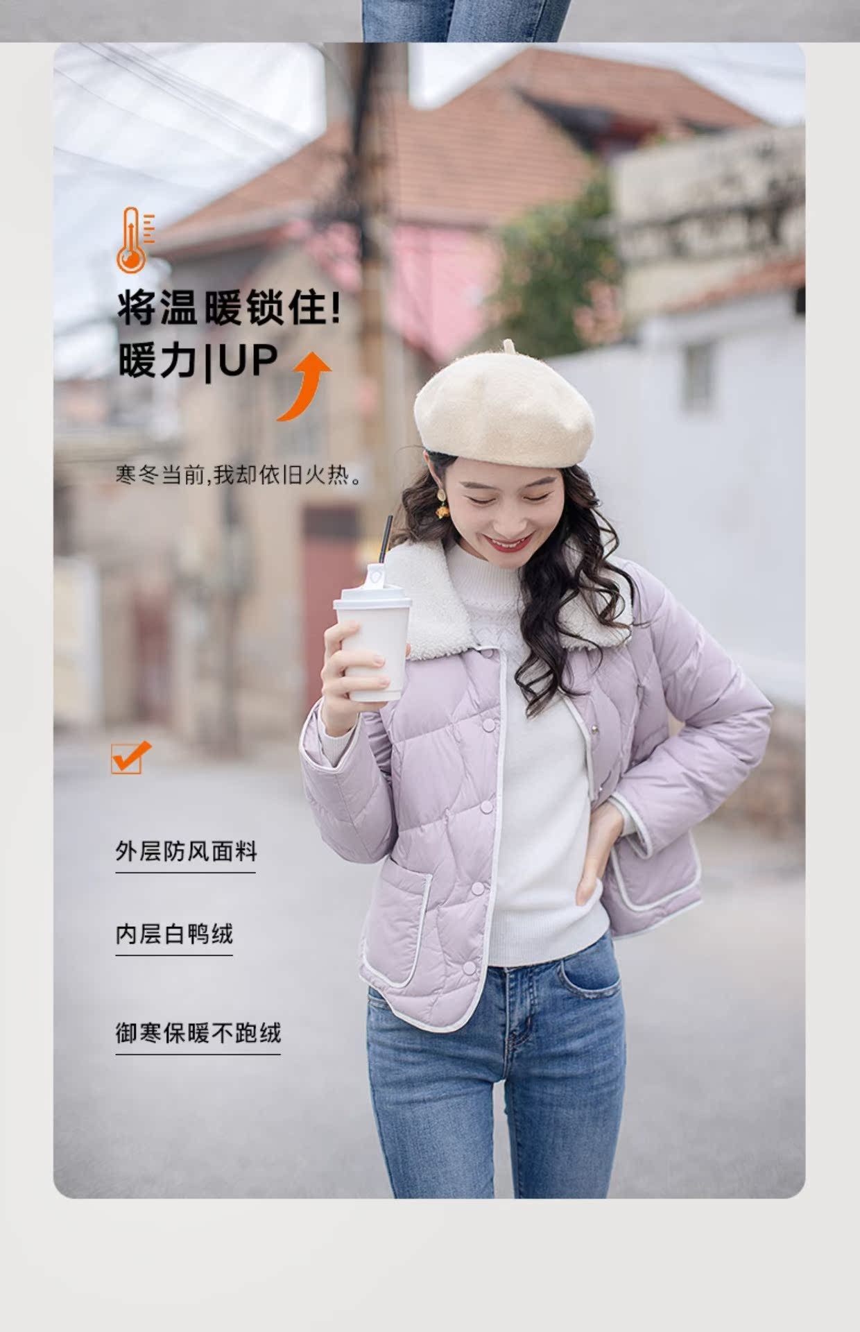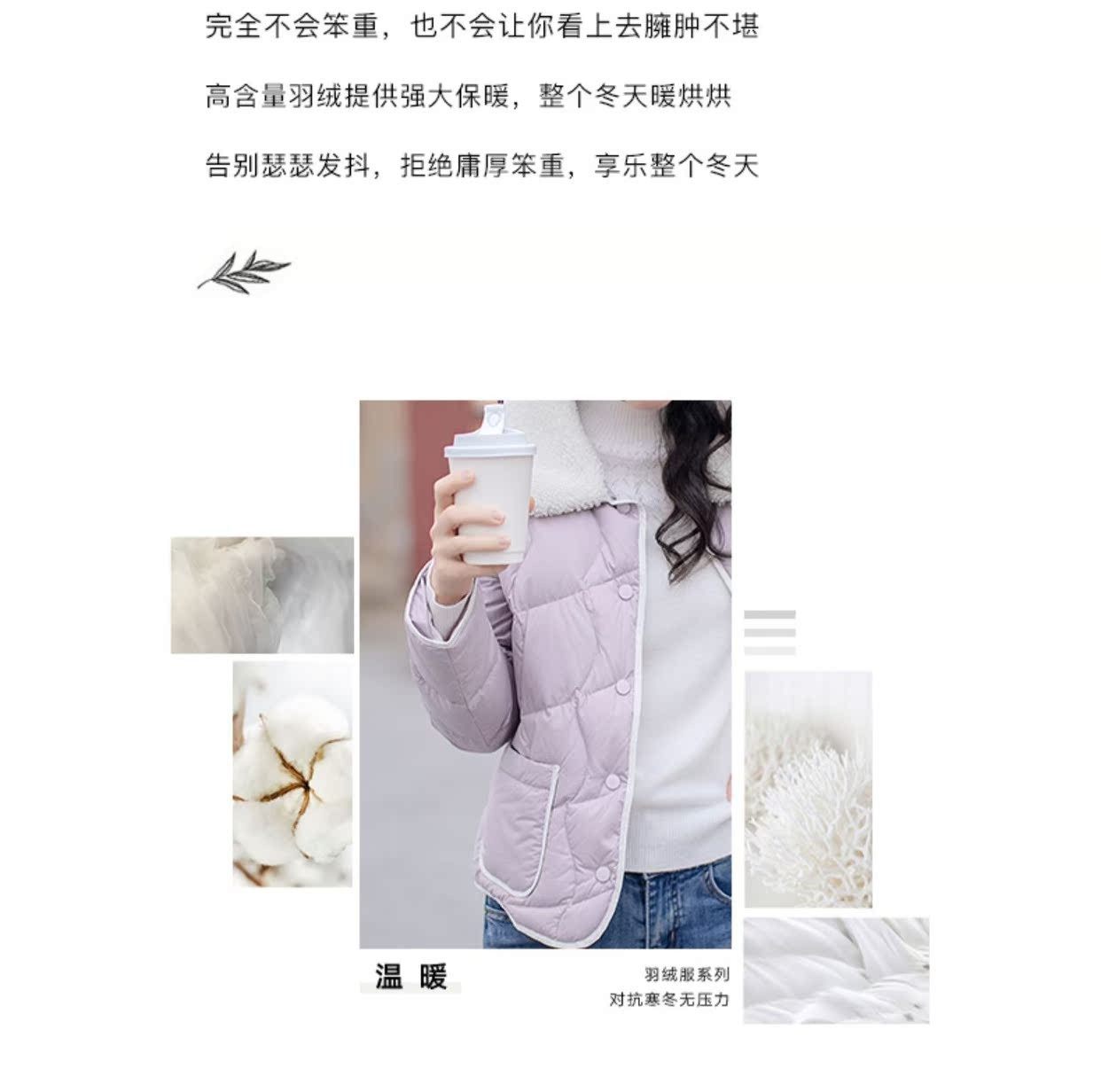 红念淡紫色翻领羽绒服女冬季短款小个子2025年新款白鸭绒冬装外套
