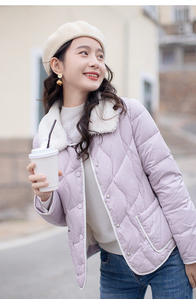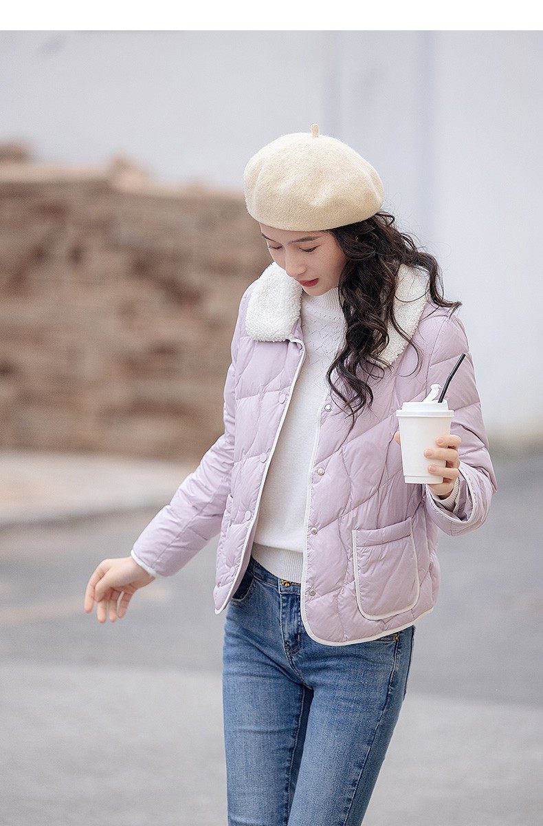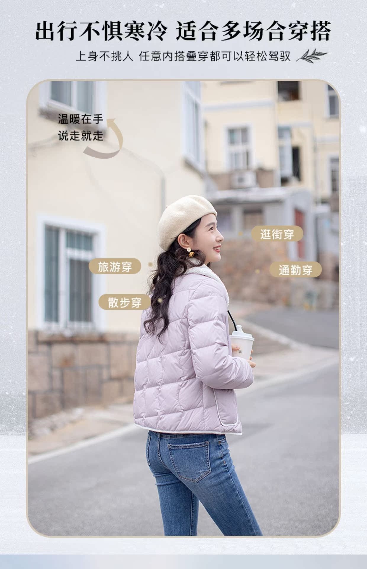 红念淡紫色翻领羽绒服女冬季短款小个子2025年新款白鸭绒冬装外套