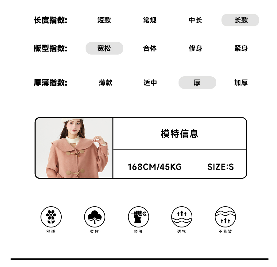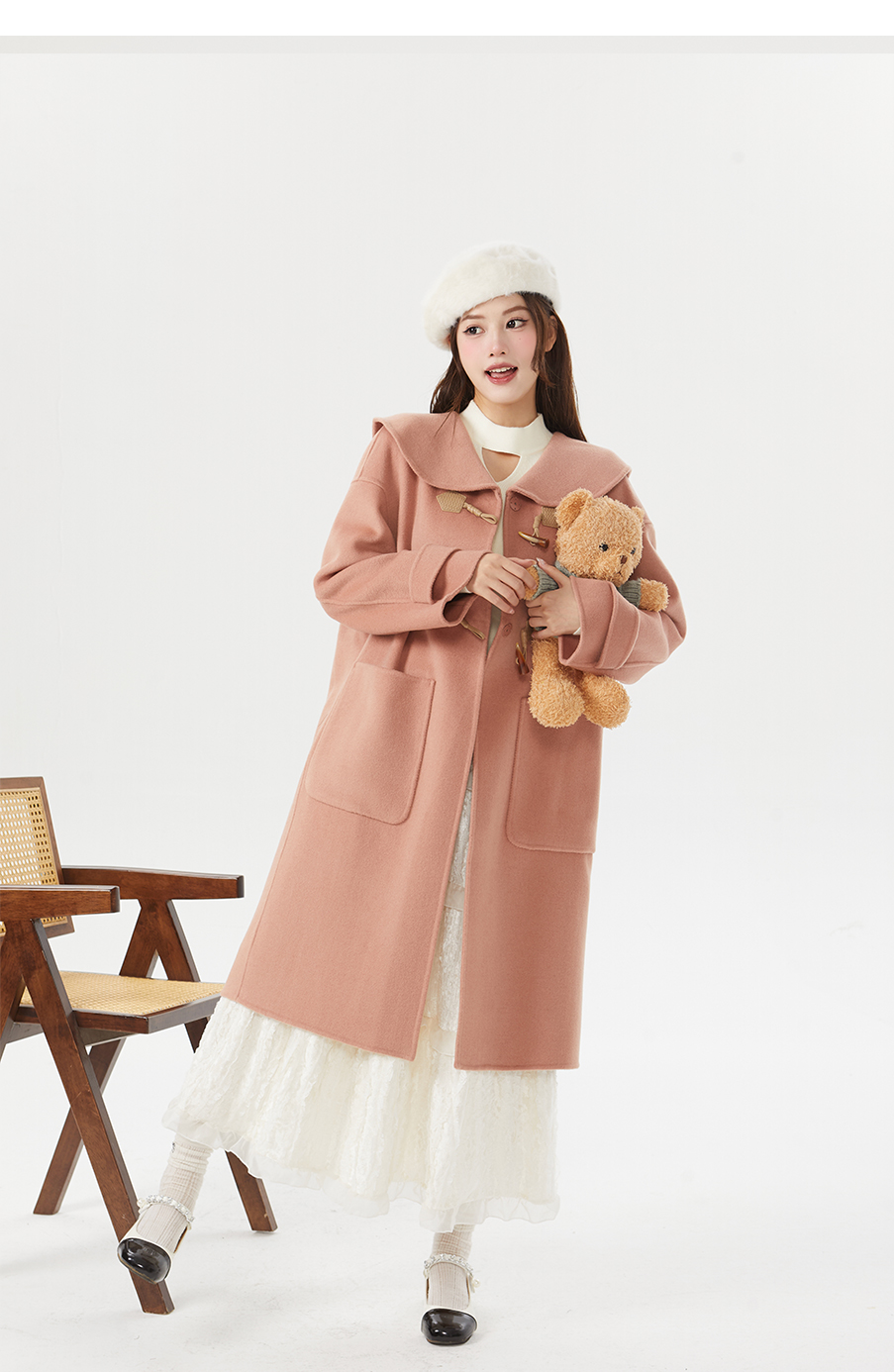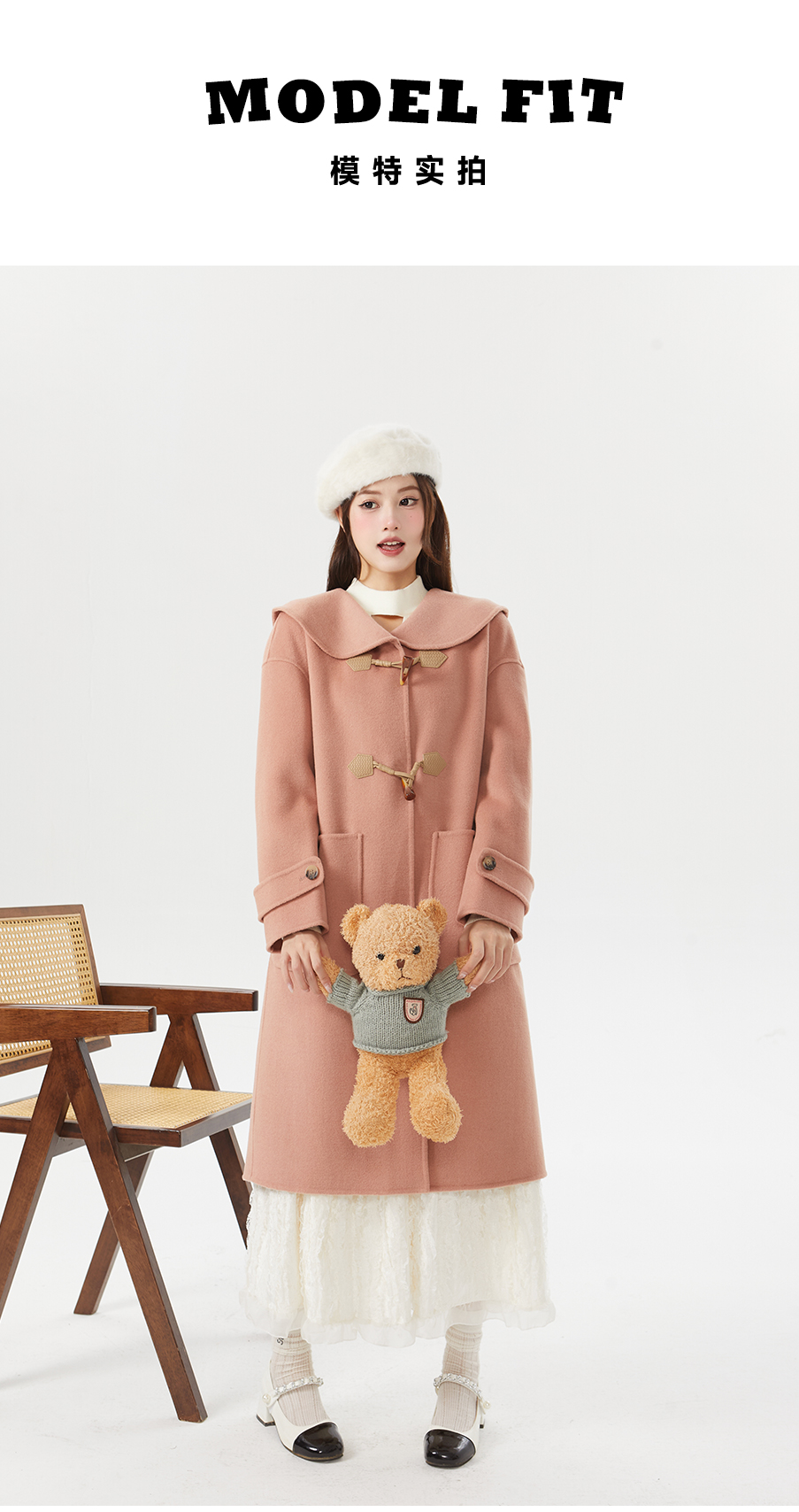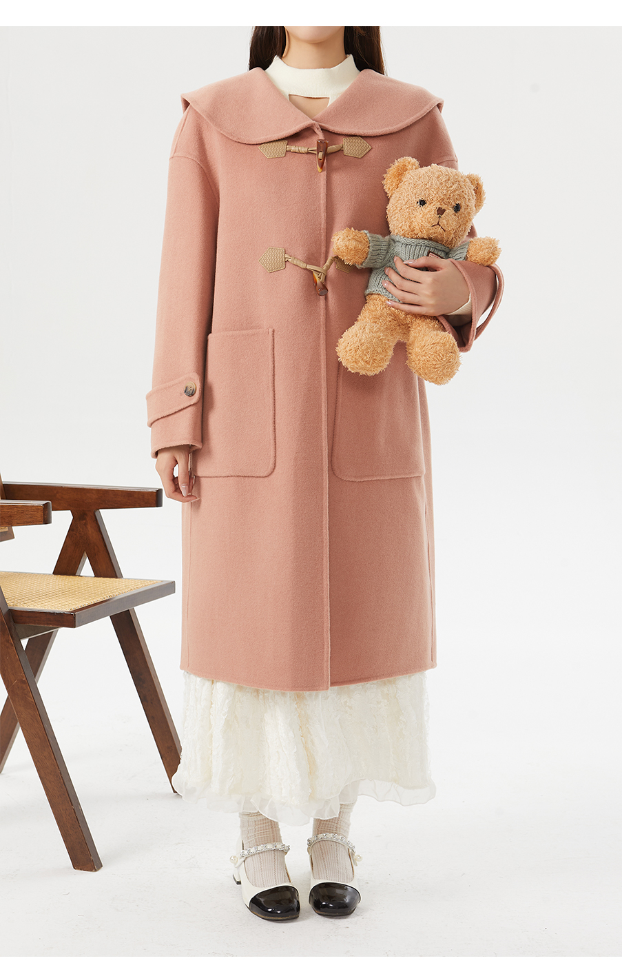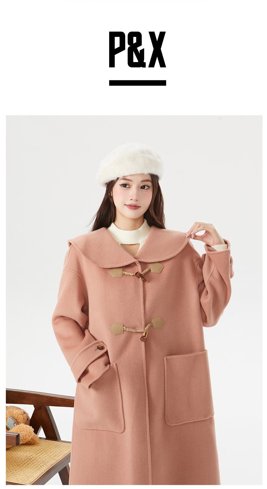 P&X设计师女装冬款气质毛呢时尚双面呢长款大衣 824421074 粉色