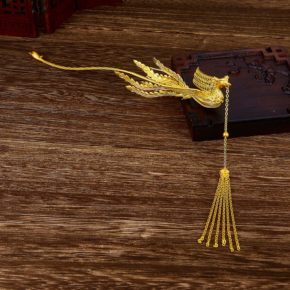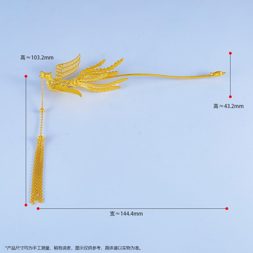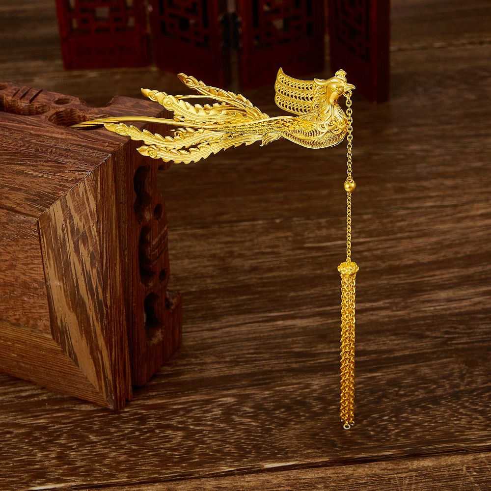 【限时克减150元】足金999 #婚庆 古法凤凰于飞流苏发簪凤簪婚嫁头饰金步摇凤钗(YGFTS00001-1)(预售产品下单后不退款不退货不换货不补差价)