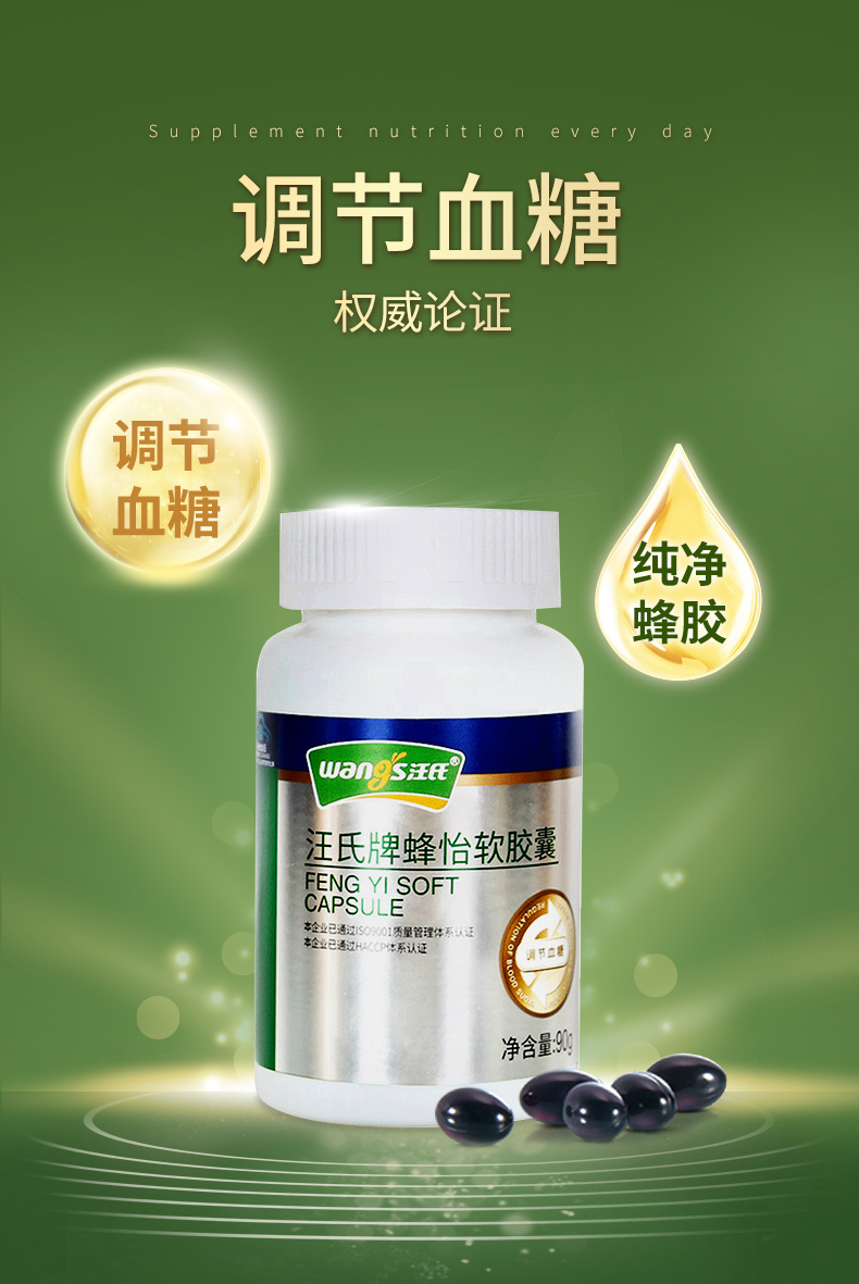 汪氏牌蜂怡软胶囊 500mg/粒*180粒调节血糖
