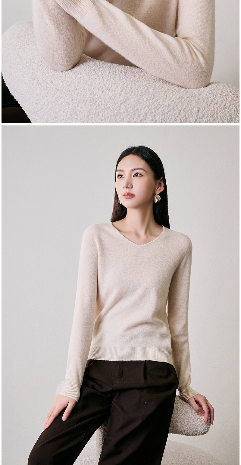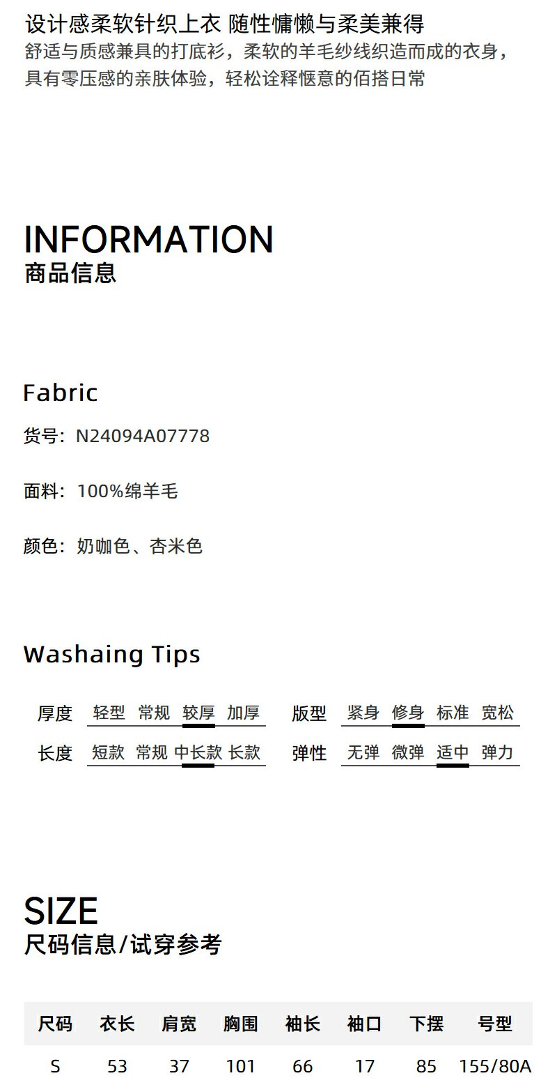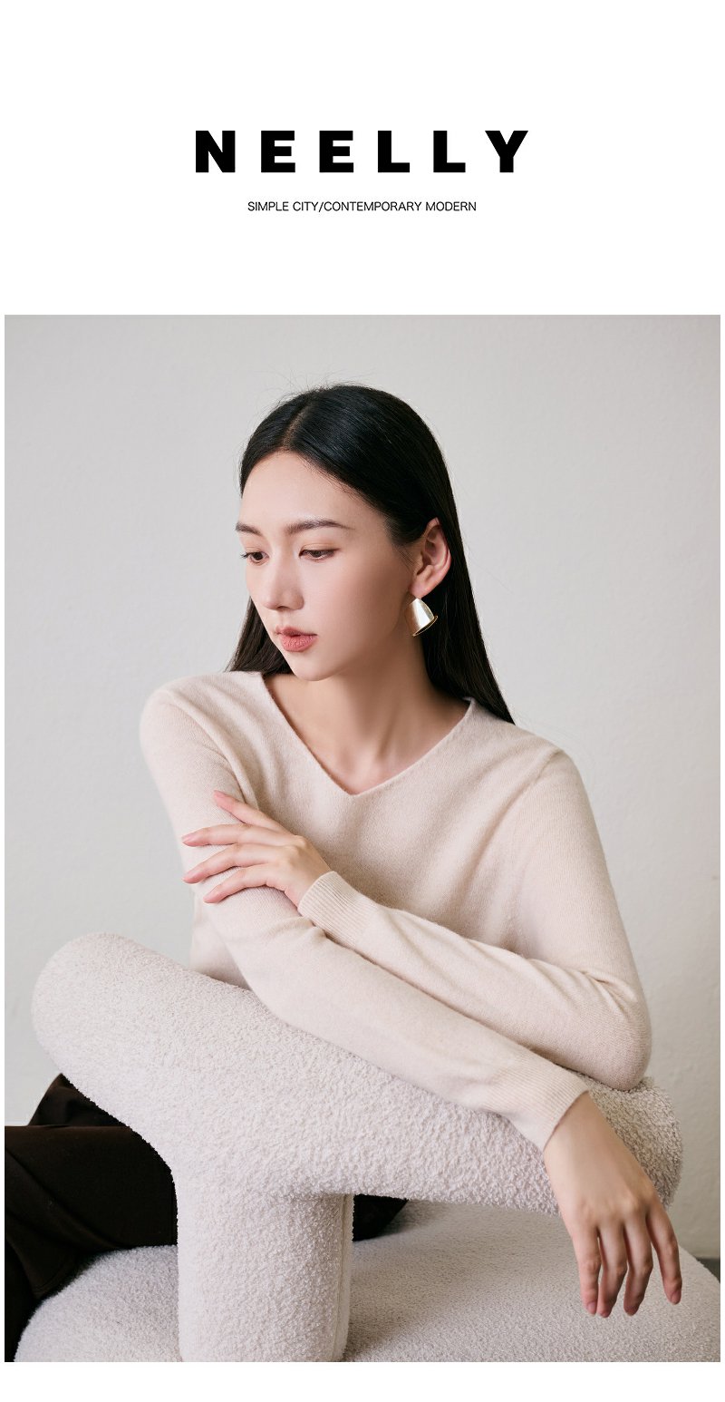 NEELLY纳俪商场同款冬季新款通勤100%绵羊毛V领打底针织衫毛衣女N24094A07778