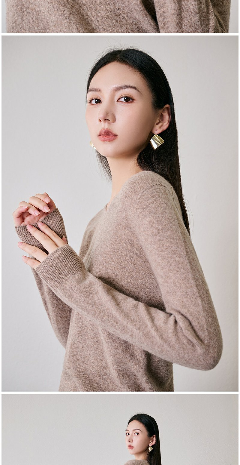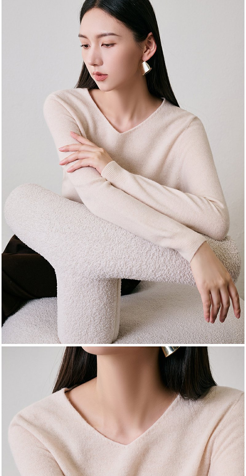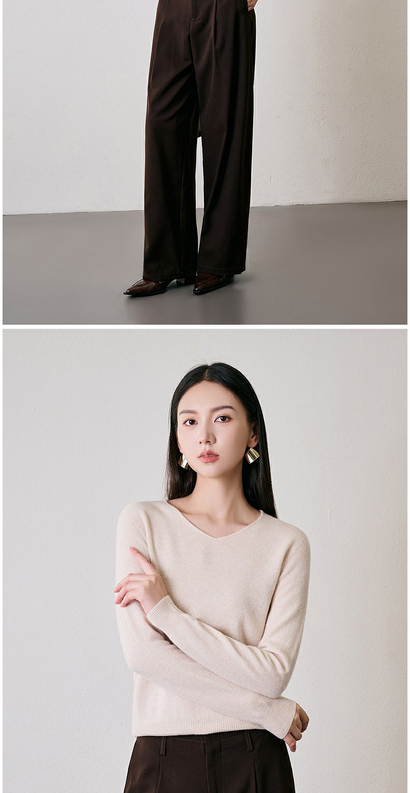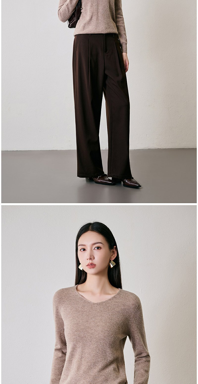 NEELLY纳俪商场同款冬季新款通勤100%绵羊毛V领打底针织衫毛衣女N24094A07778