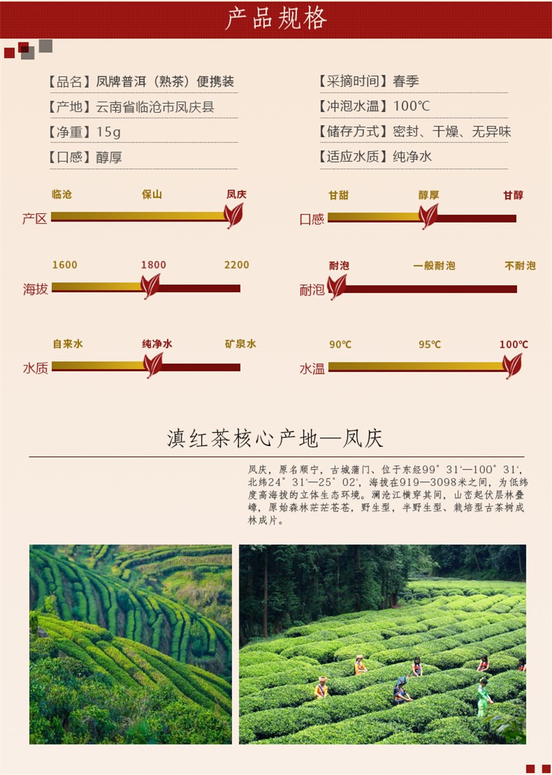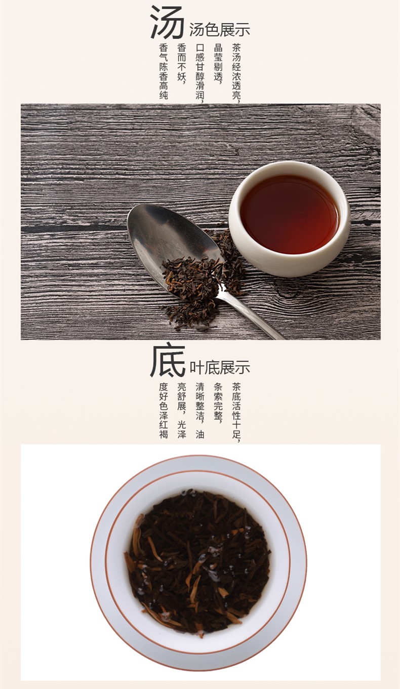 精选集团高海拔云南大叶种晒青茶为原料,应用渥堆发酵等传统普洱茶工艺精制加工而成。外形条索紧实,略显毫。内质汤色深红,滋味醇和,香气纯正,叶底褐红欠匀。