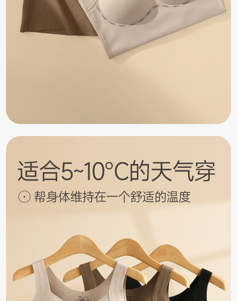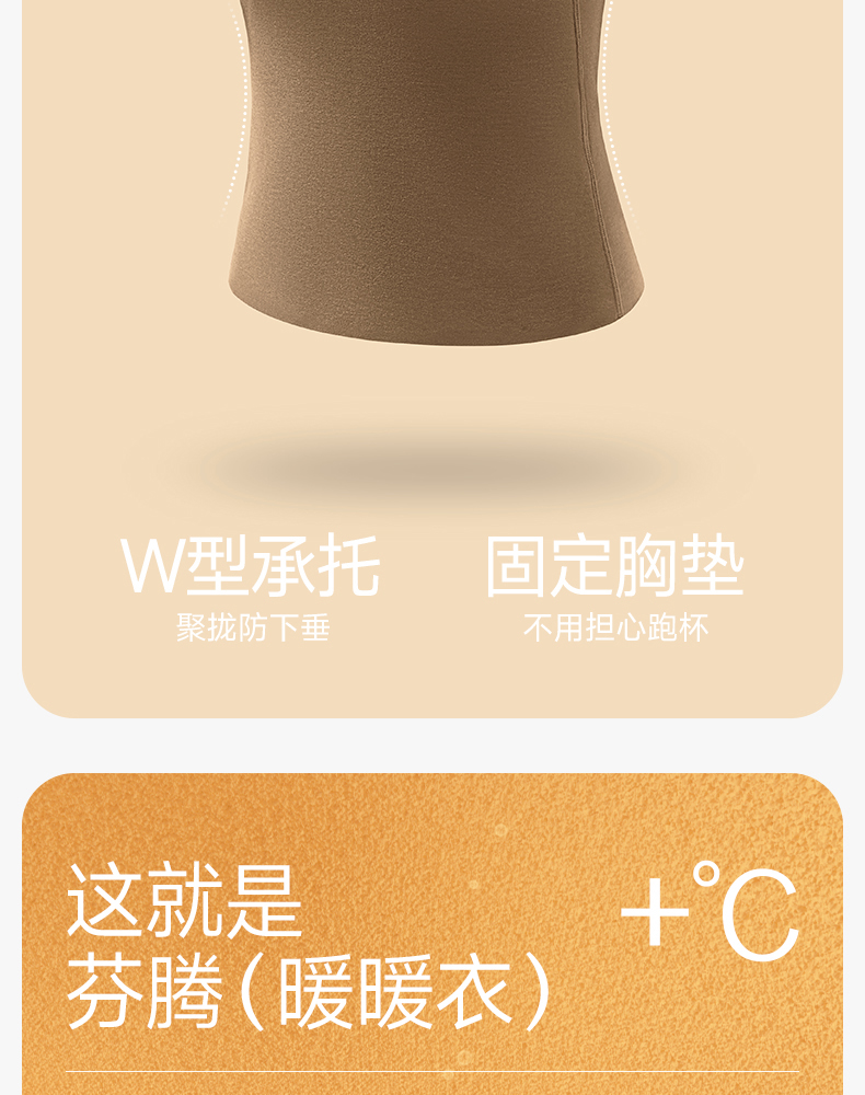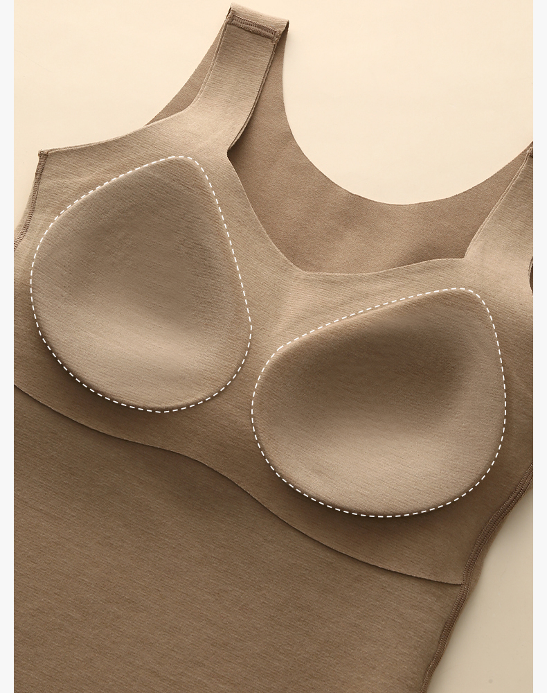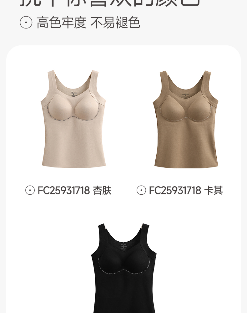 芬腾女士保暖背心秋冬季舒适纯色带胸垫内衣修身内搭打底衫上衣