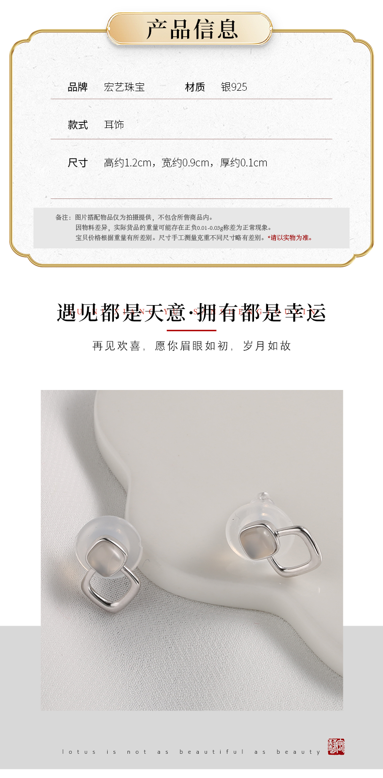 【宏艺珠宝】白月秋南·银s925耳饰