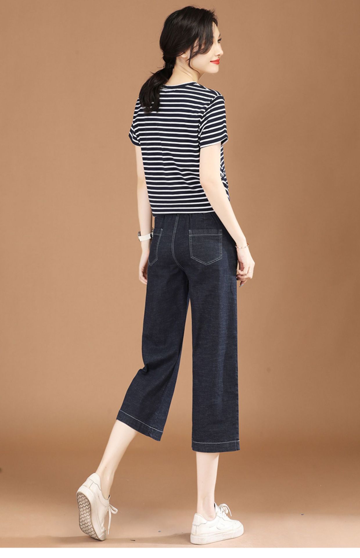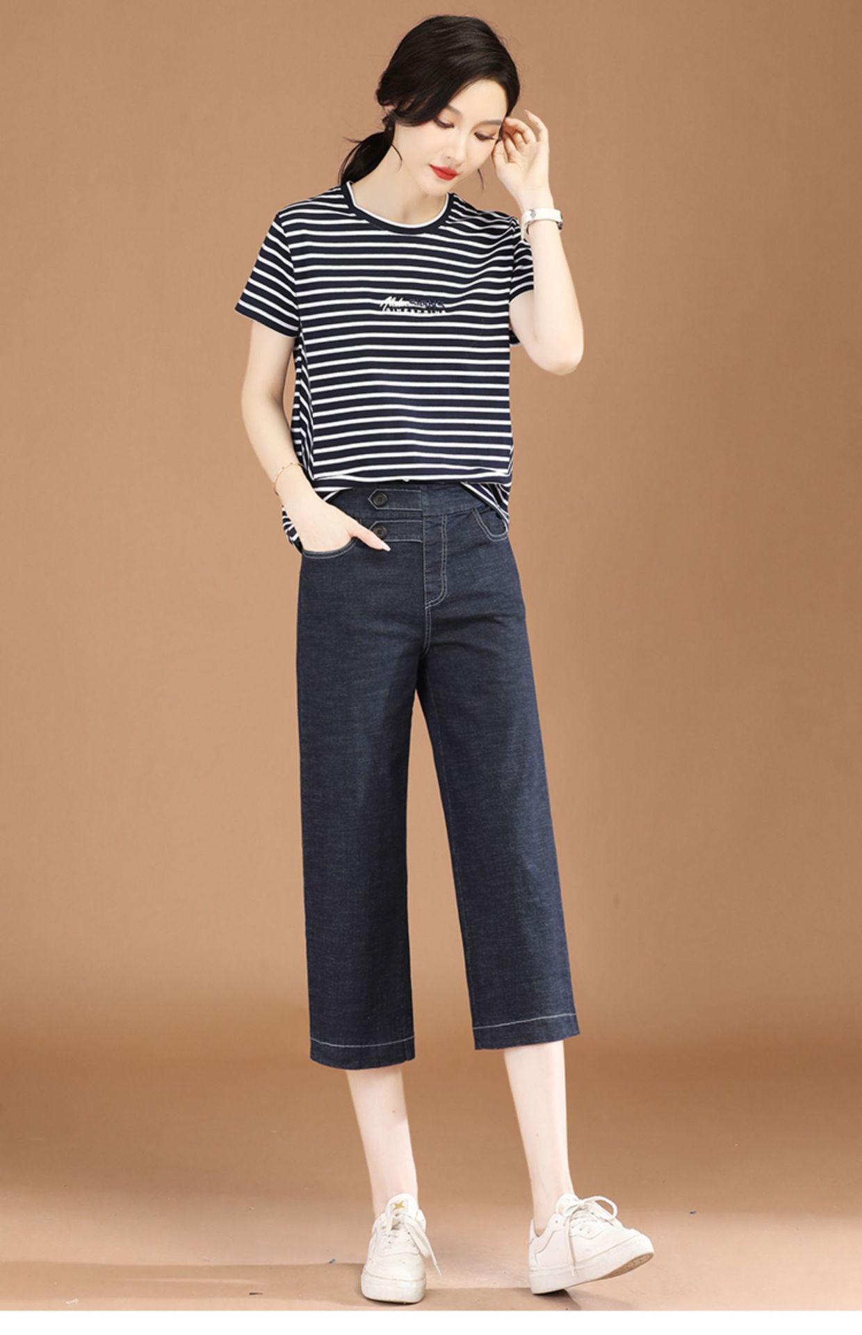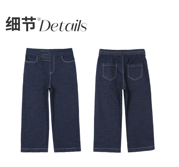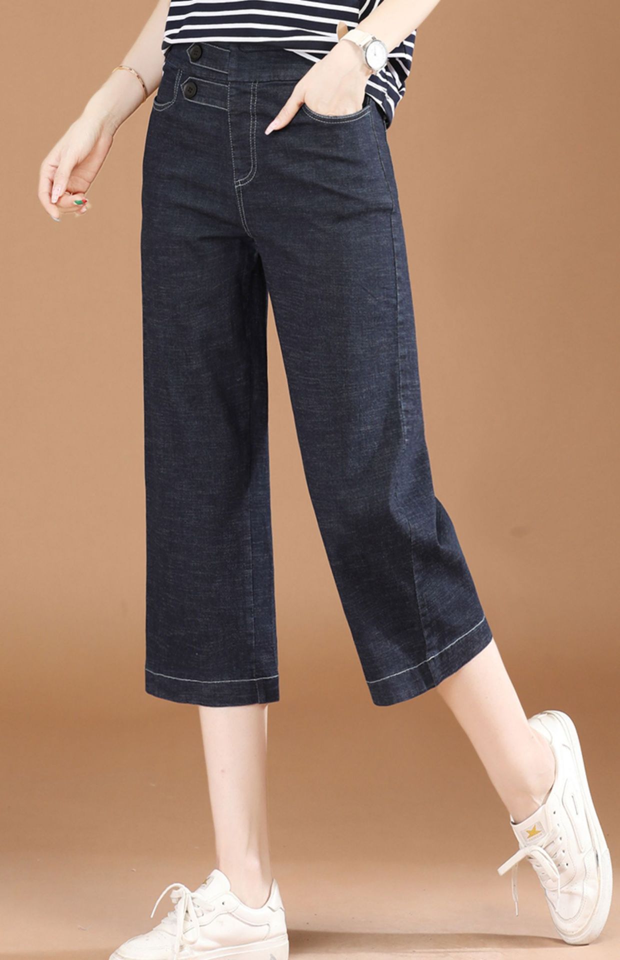 松紧高腰显瘦阔腿七分牛仔裤夏季新款牛仔裤 GYM-PT1089