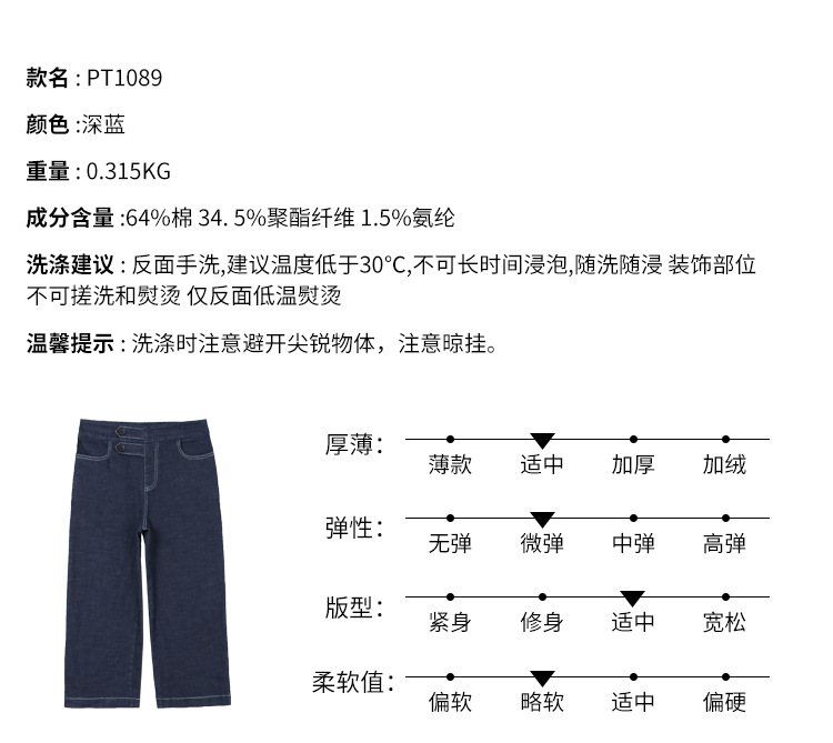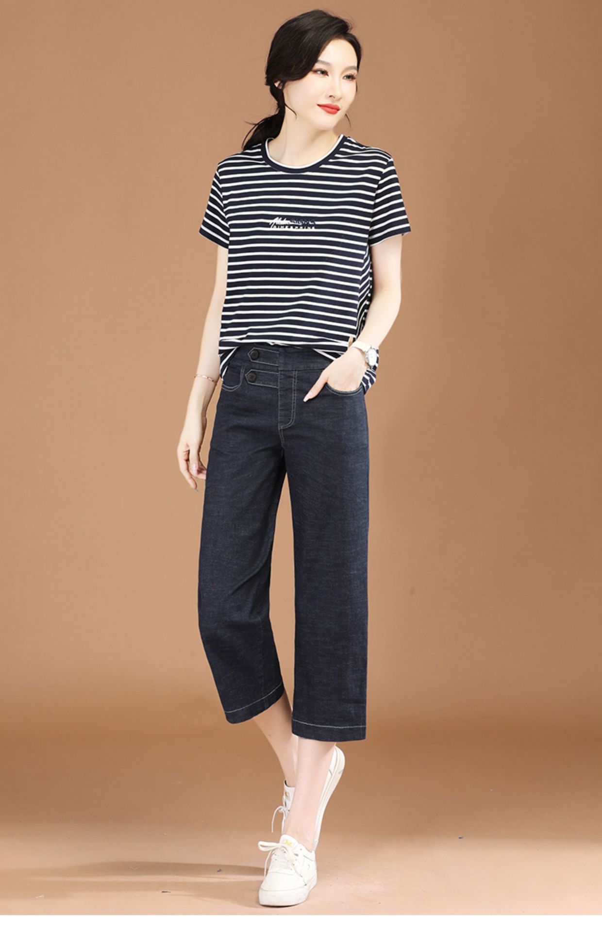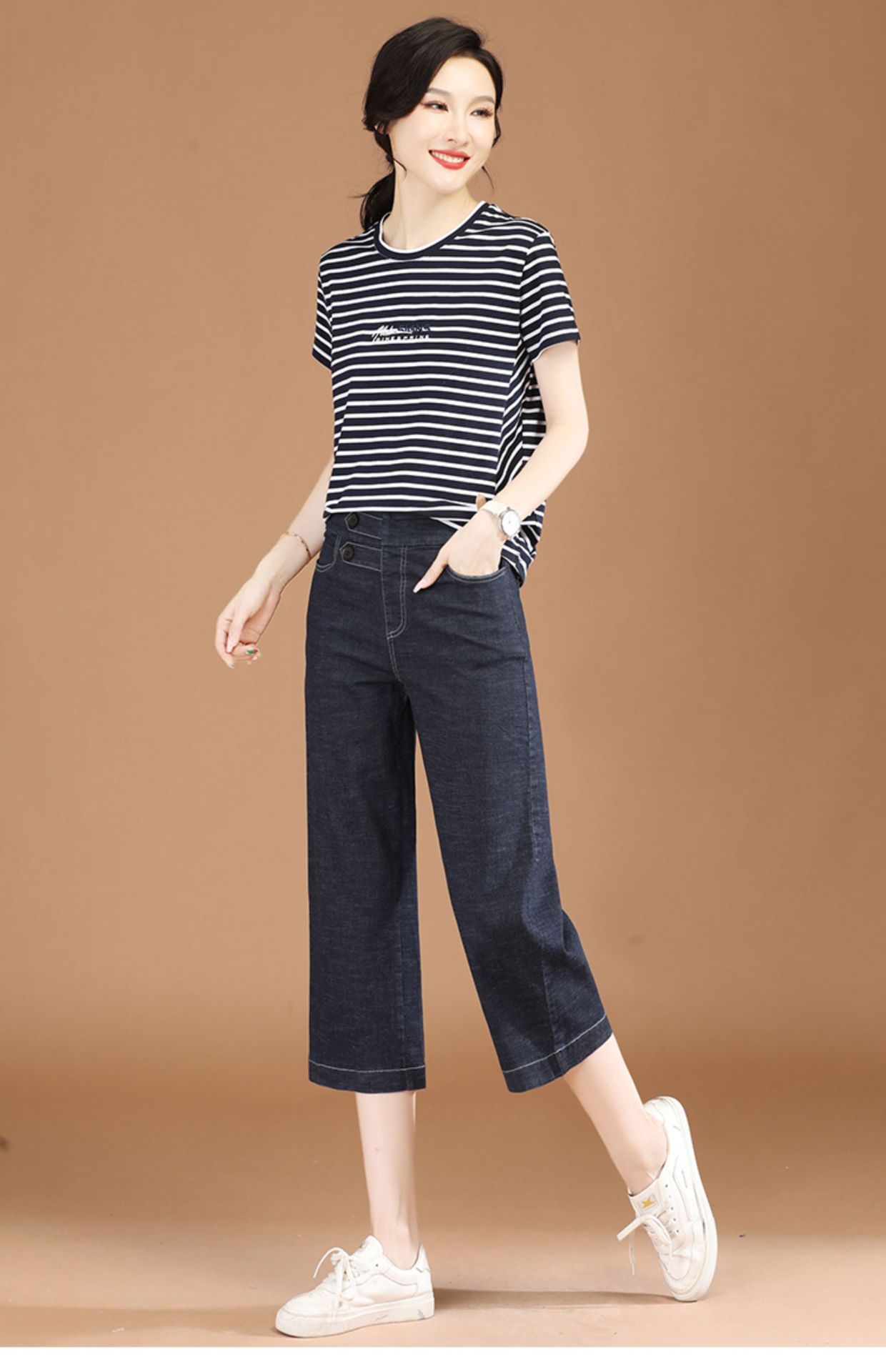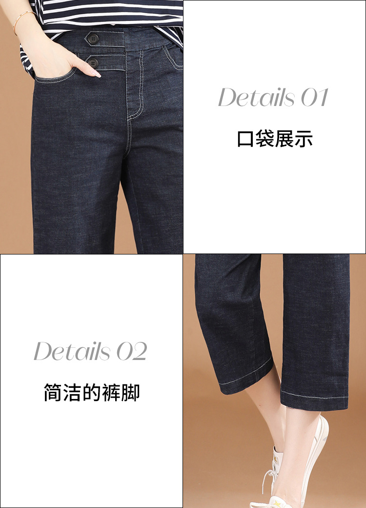 松紧高腰显瘦阔腿七分牛仔裤夏季新款牛仔裤 GYM-PT1089