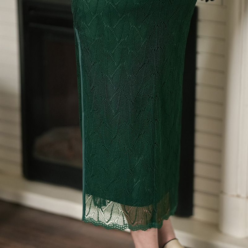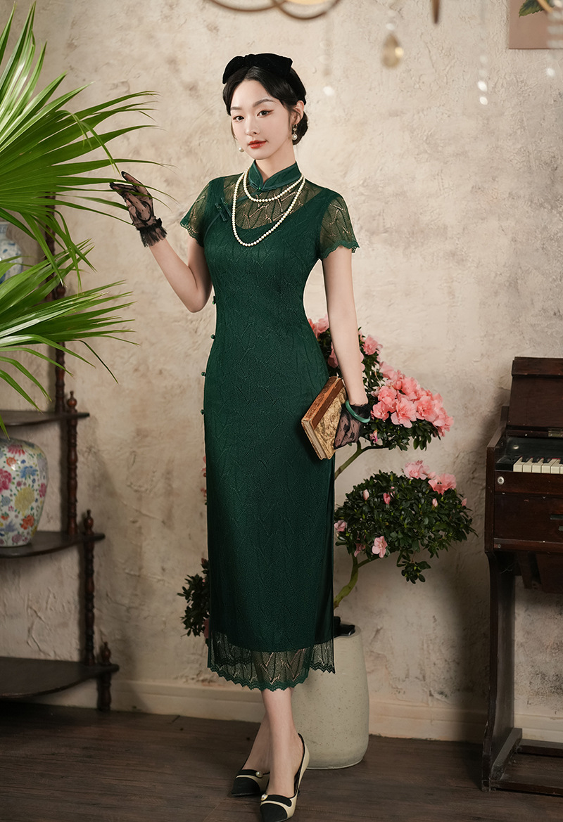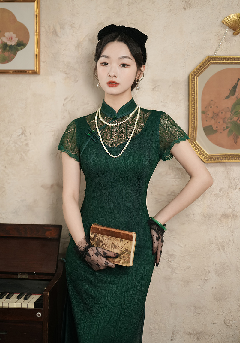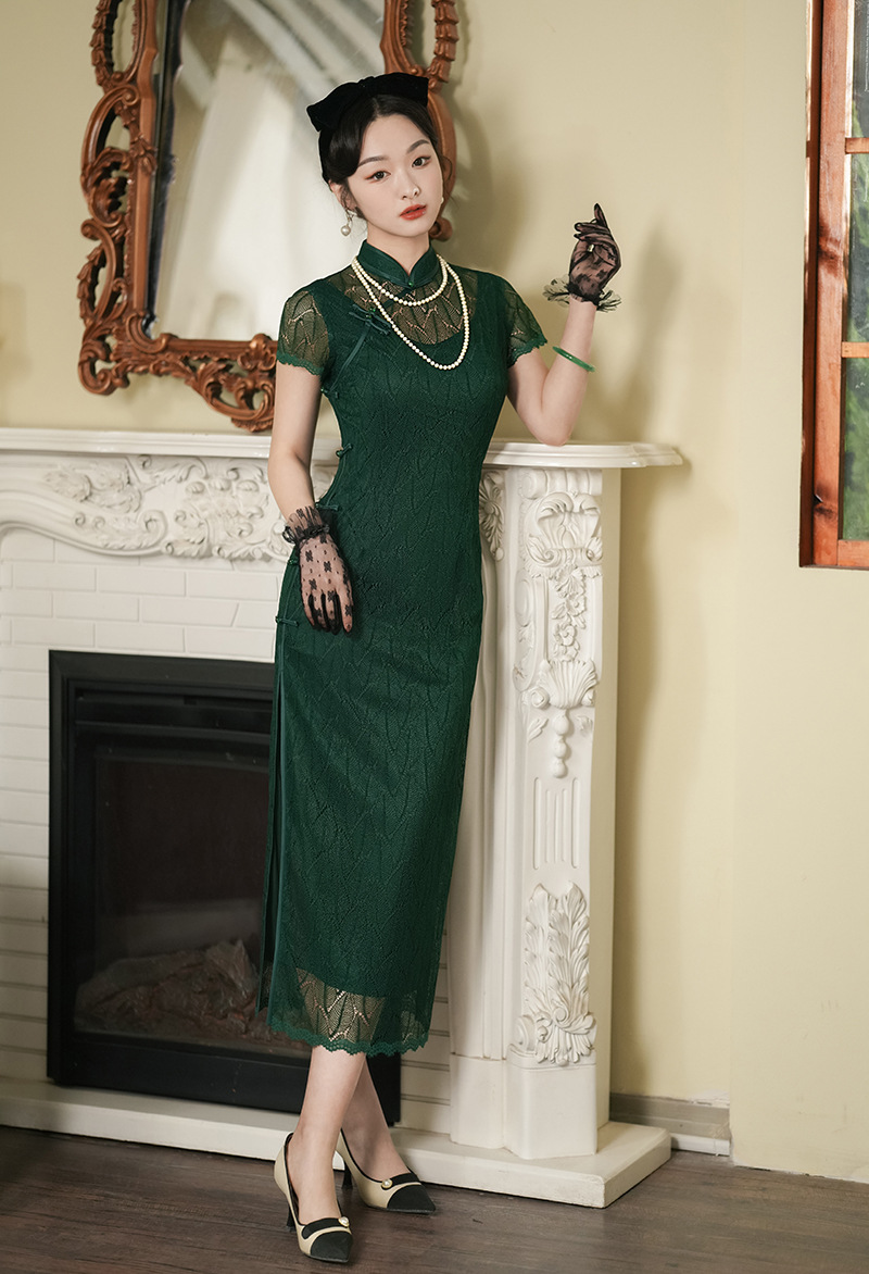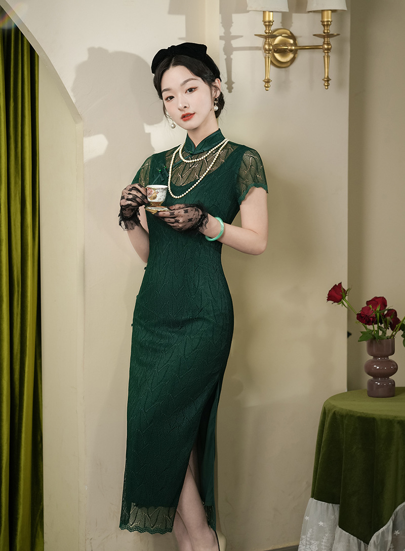 春夏新款,性感蕾丝小飞袖修身改良旗袍XL-24061