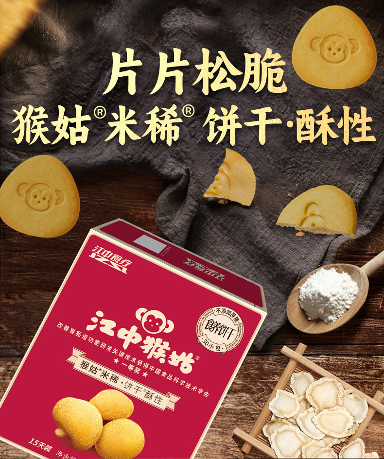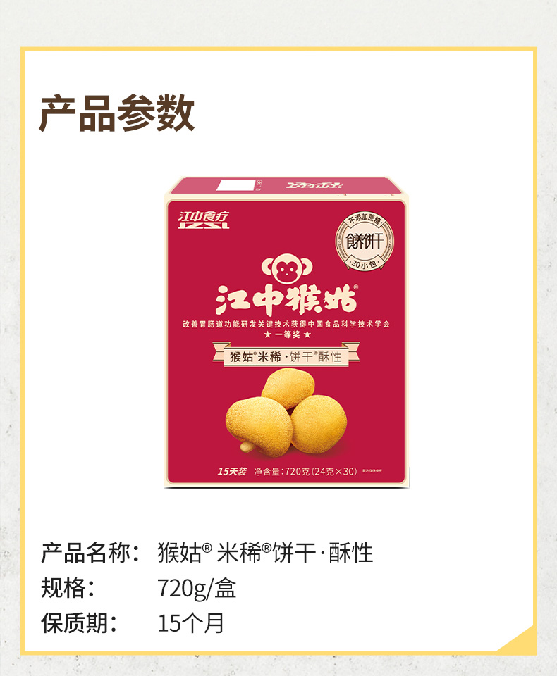 江中猴姑·米稀酥性饼干15天装 30包/720克/盒 不含蔗糖 2025年9月生产/保质期12个月 饼干易碎 介意慎拍